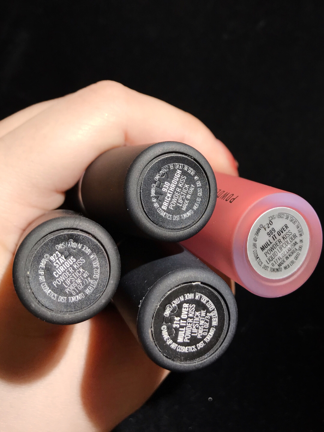 Mac尤雾弹系列的温柔色都好戳我! 把陆陆续续购入的整个小合集 930 BRICK THROUGH转运豆沙 比较新的一个色!肉桂豆沙,偏灰粉 923 STAY CURIOUS糖渍樱花 软嫩粉樱花,约会色走起 314 MULL IT OVER白桃奶茶 橘调浅杏粉,我涂秃了一整支你敢信! 989 MULL IT OVER白桃奶盖 柔雾唇釉,杏仁烤奶,比314棕一丢丢