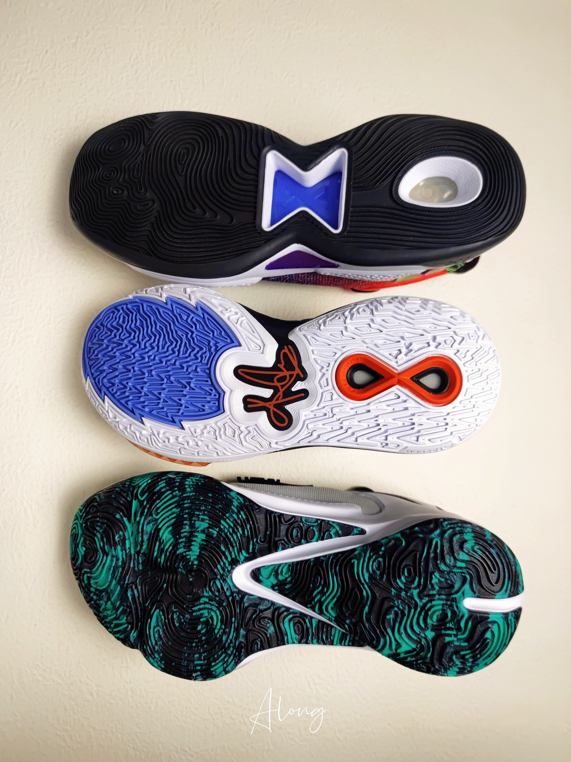 今天给大家带来了三双明星签名鞋,分别是欧文8,PG5还有字母哥的freak 3,三双鞋除了都是明星签名鞋之外,还一有一个共同点就是口碑都比较一般,可以说是难兄难弟,今天我们就来看看这三双鞋是否真的非常差? 首先先来简单看下三款鞋子的外观,个人觉得颜值上都不算拉垮的,除了欧文8,其他两款现在可以选择的配色也不少。 材质上三款鞋都是采用了透气网面,强度上欧文8会比较差一些。中后段的强度也较弱。三款鞋都...