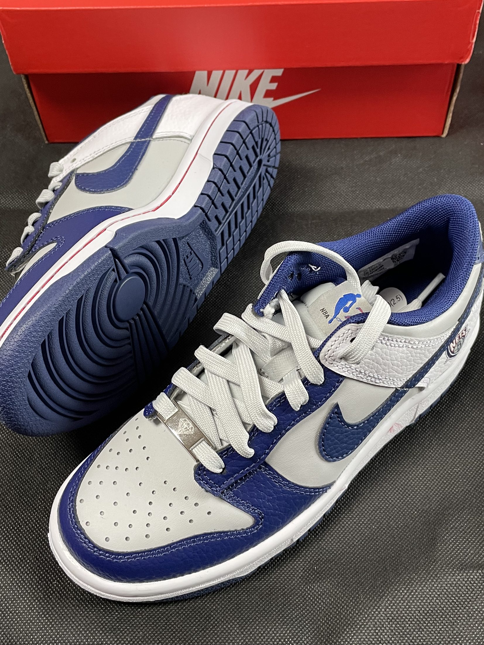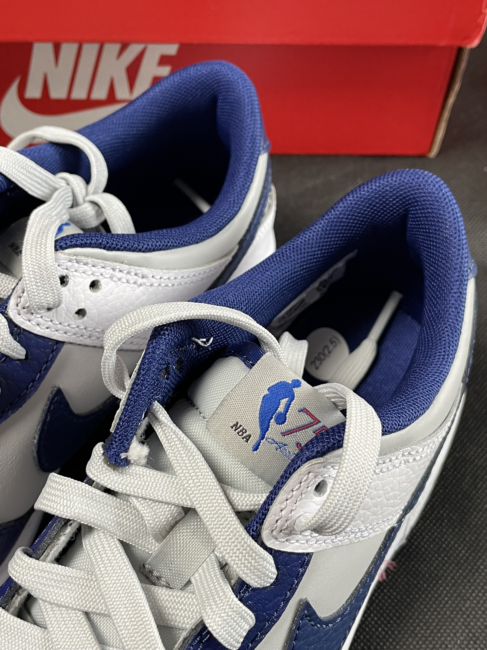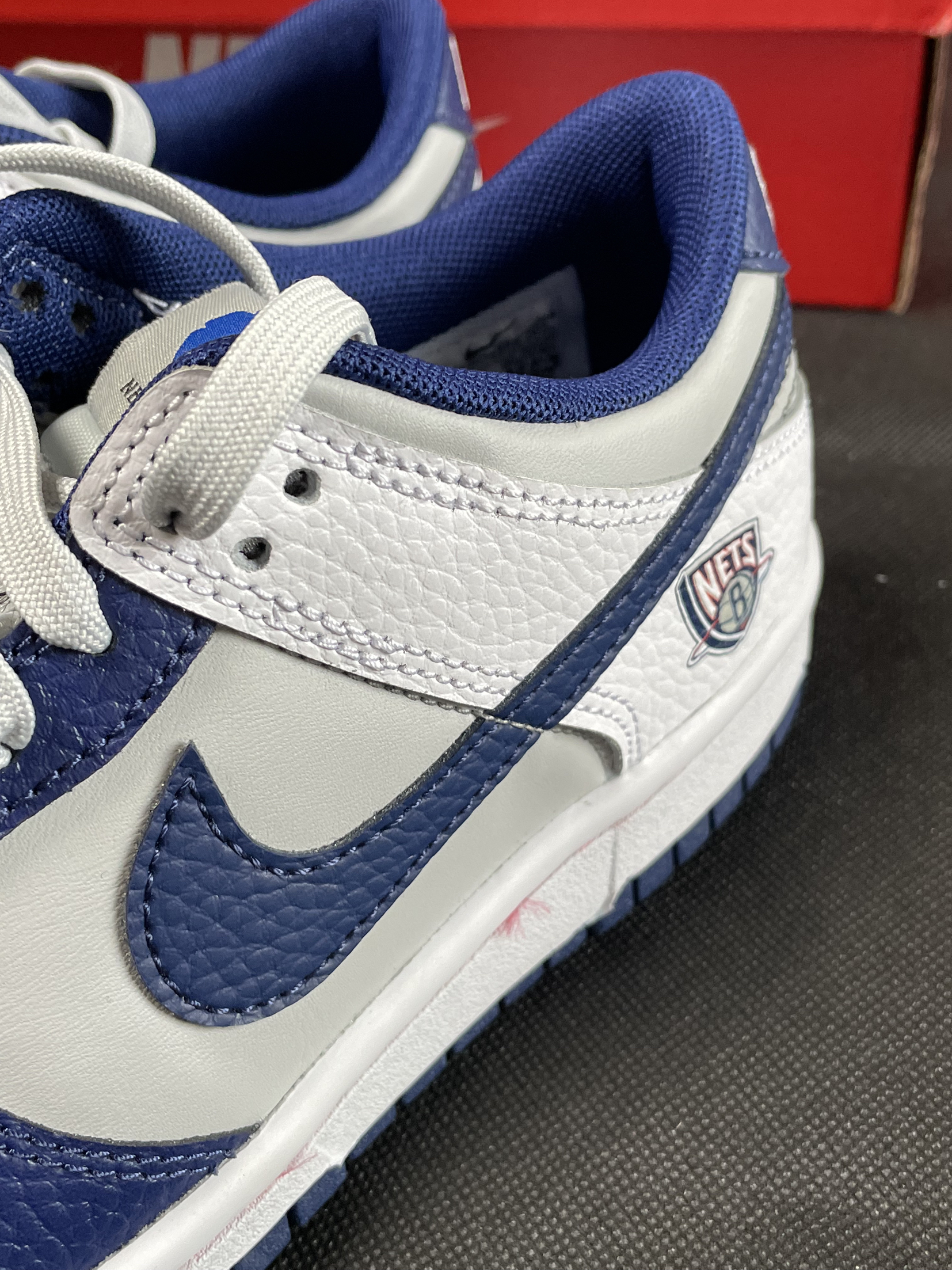 👟 :Nike xNikeDunkLow EMB75周年“BrooklynNets” 布鲁克林篮网 鞋身运用柔和浅灰色并搭配海军蓝Swoosh以及前段覆盖层,而后段白色覆盖层还印有结合复古与现代设计的Nets标志 鞋舌标签上并没有传统NikeAir标志,非常醒目,鞋子很百搭,穿起来相当好看! 鞋子穿起来相当不错,尺码正常选择!