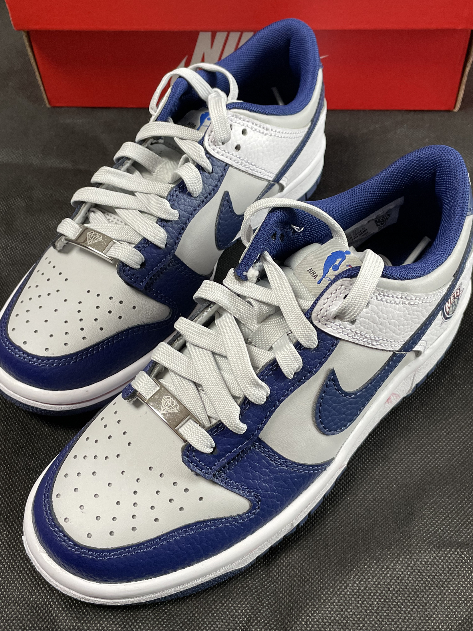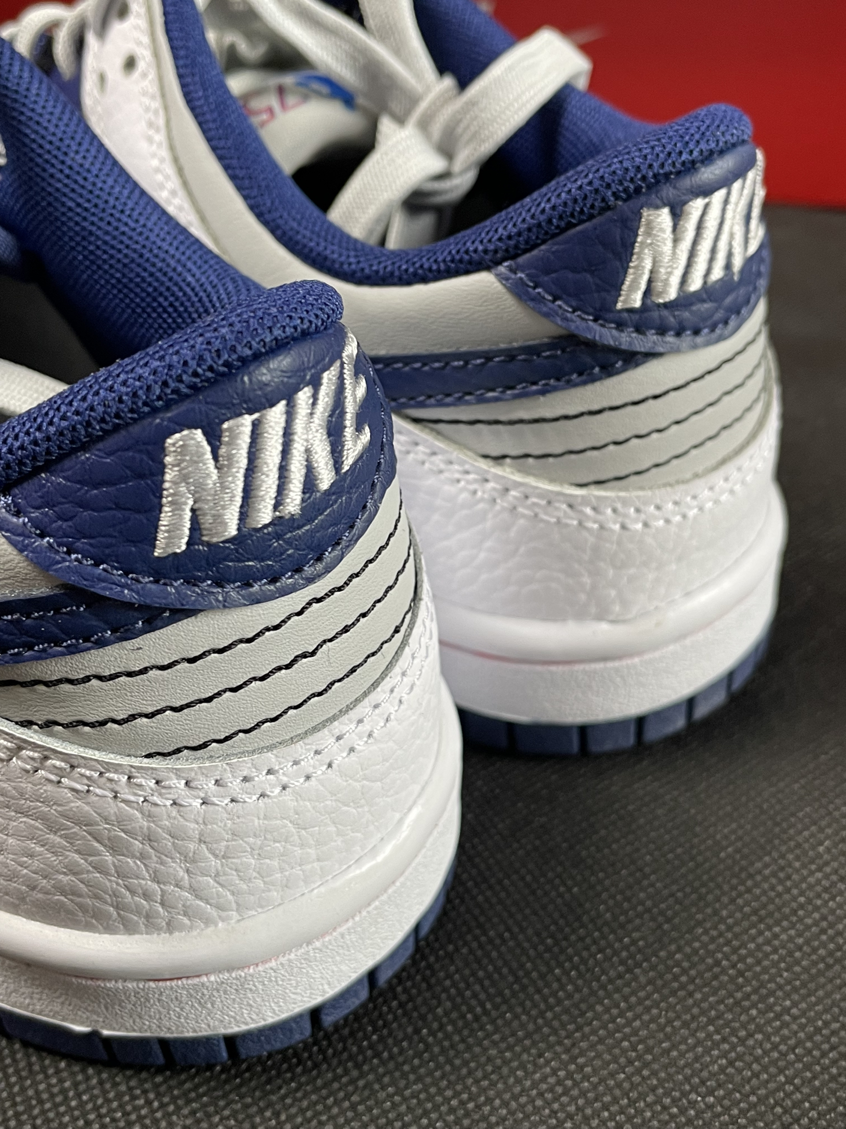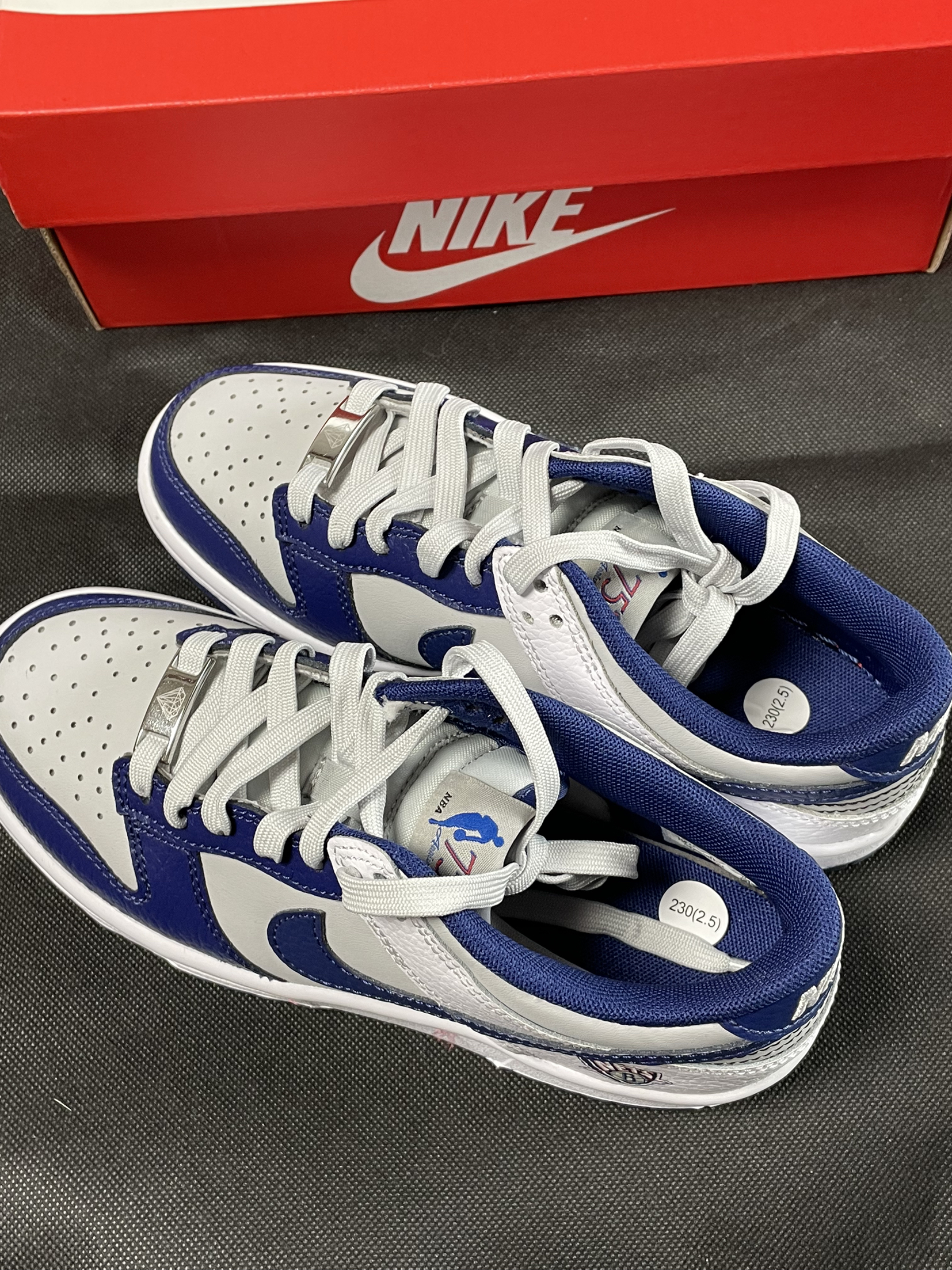 👟 :Nike xNikeDunkLow EMB75周年“BrooklynNets” 布鲁克林篮网 鞋身运用柔和浅灰色并搭配海军蓝Swoosh以及前段覆盖层,而后段白色覆盖层还印有结合复古与现代设计的Nets标志 鞋舌标签上并没有传统NikeAir标志,非常醒目,鞋子很百搭,穿起来相当好看! 鞋子穿起来相当不错,尺码正常选择!