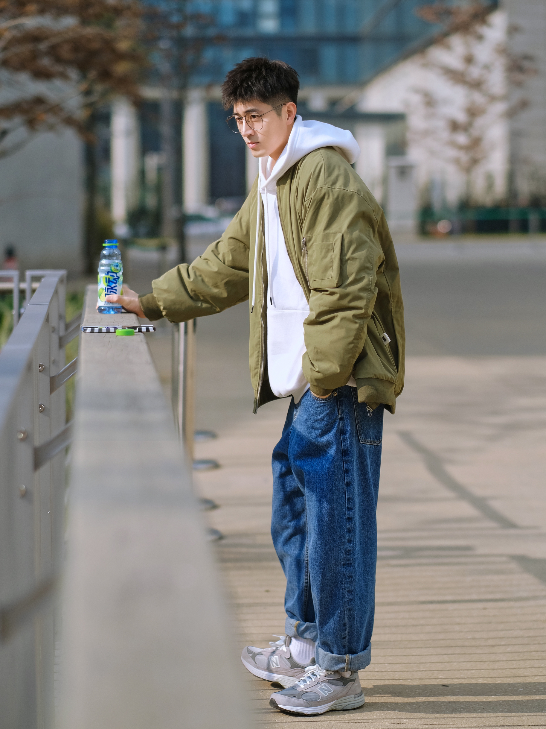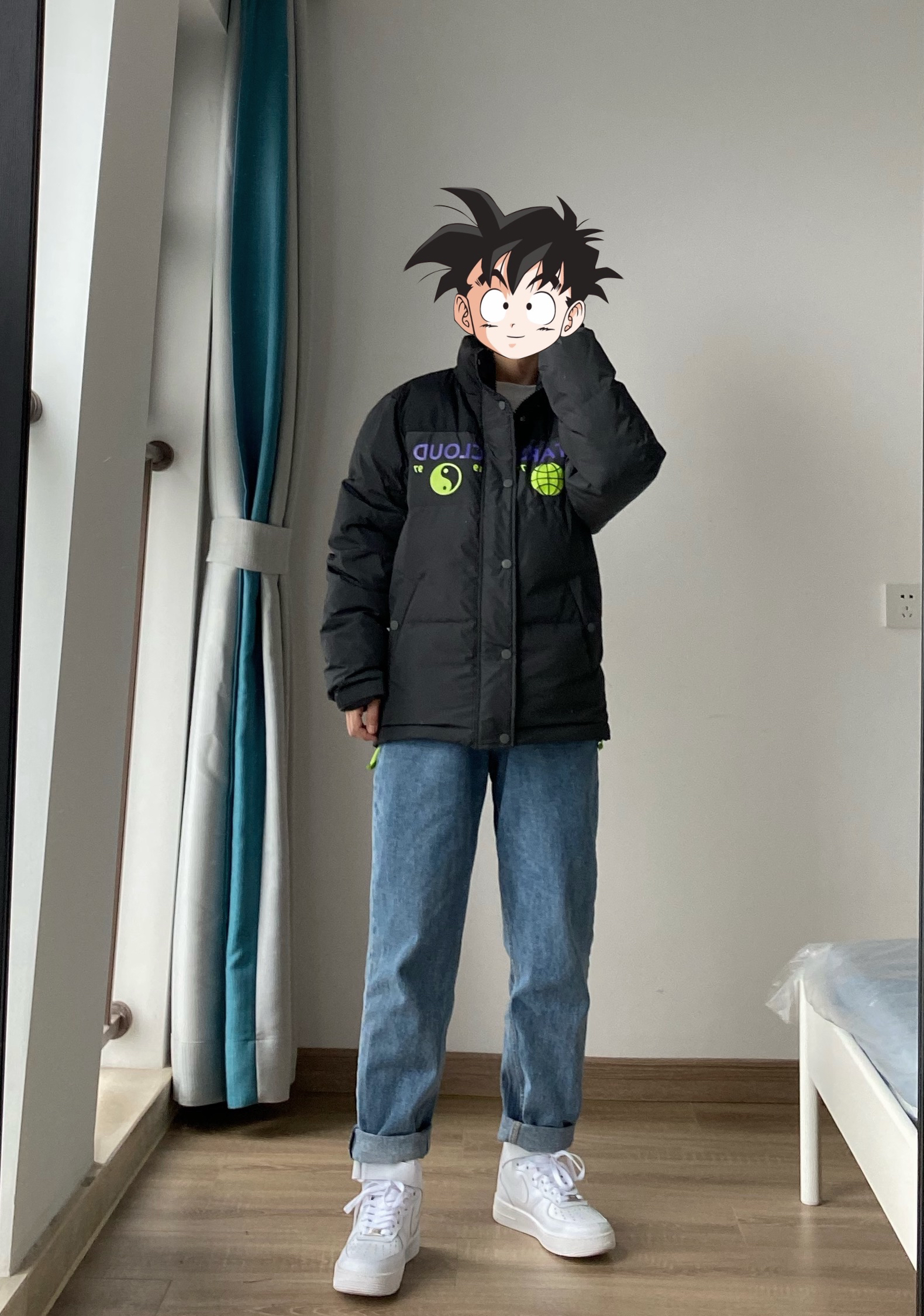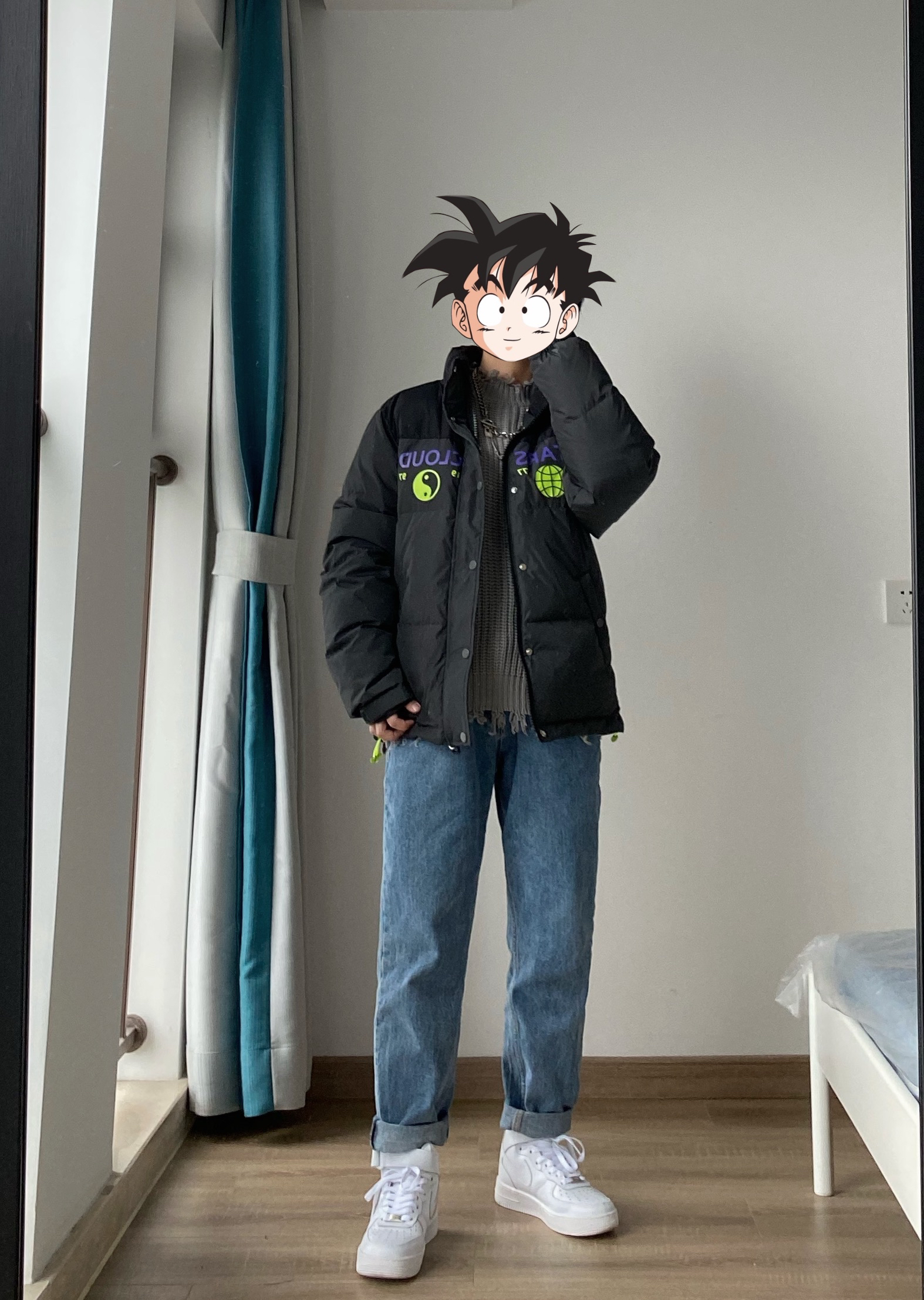 打工已经这么辛苦了…… 羽绒服还不赶快穿起来 今天分享一身小个子男生也可以穿的羽绒服搭配 👔药九玖柒灰色羽绒服(我穿的s) 简约版型 上学上班通勤穿非常合适 蓬松度还不错 很暖和 👖白告studio(我穿的s) 我最爱穿的一条牛仔裤Top 1 没有之一! 比较百搭 👟Nike Air Force 1纯白空军一号