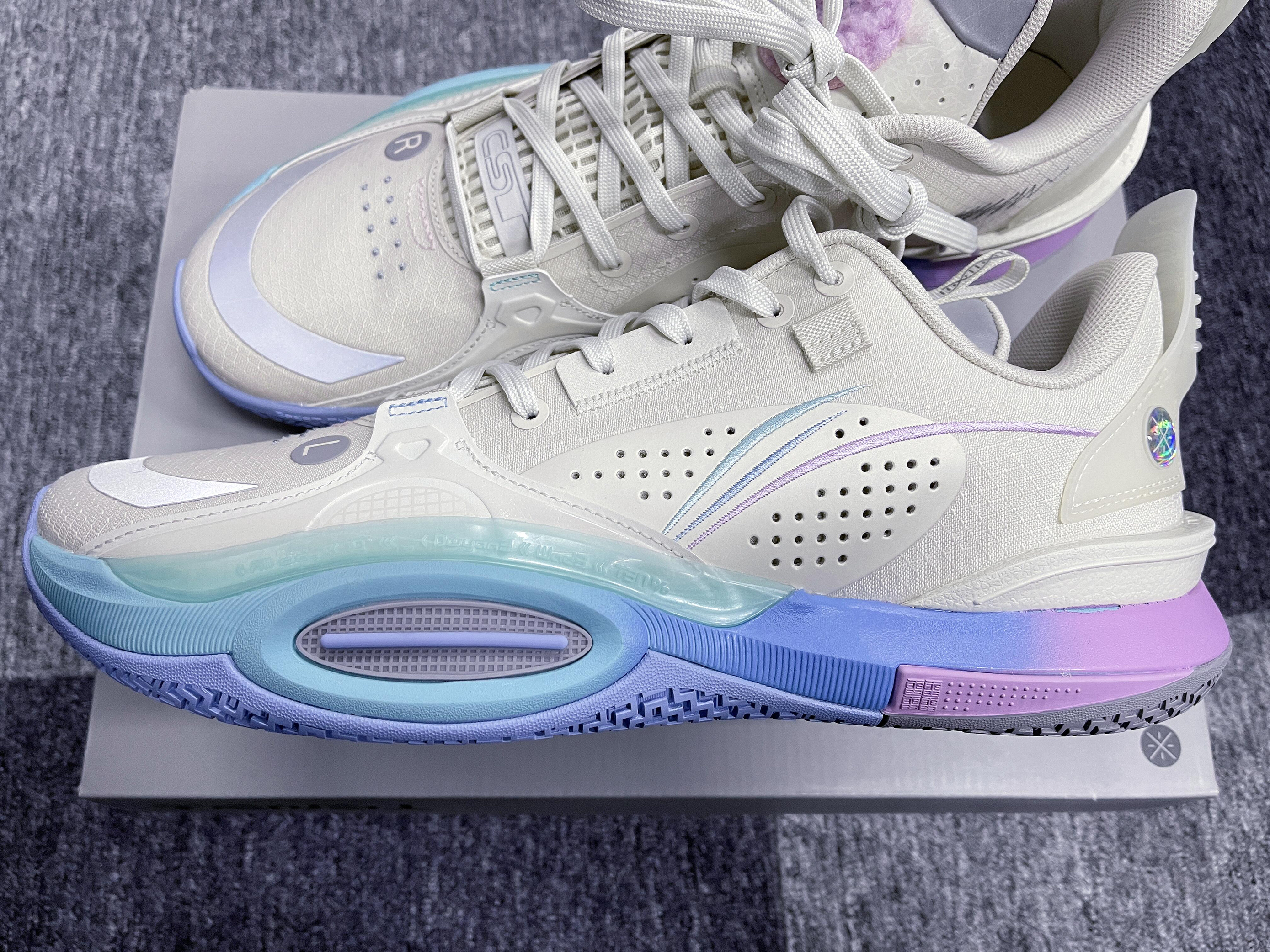 全城10代作为“韦德”签约李宁的十周年支线产品设计也是非常用心。 鞋子的外观相比于全城9会更修长一些,不同于前系列的地方无故与前掌做了一个加宽设计,对宽脚掌的朋友们也是非常友好。前掌外侧做了tpu贴片,相比于全城9,全城10加宽了橡胶位,tpu片更长,的有效保证了防侧翻的稳定性。中底tpu下方嵌入了碳板,保证中底的稳固性,鞋面的倾斜角度提供了良好的抗扭性。后跟位置采用了双层tpu结构,但美中不足...
