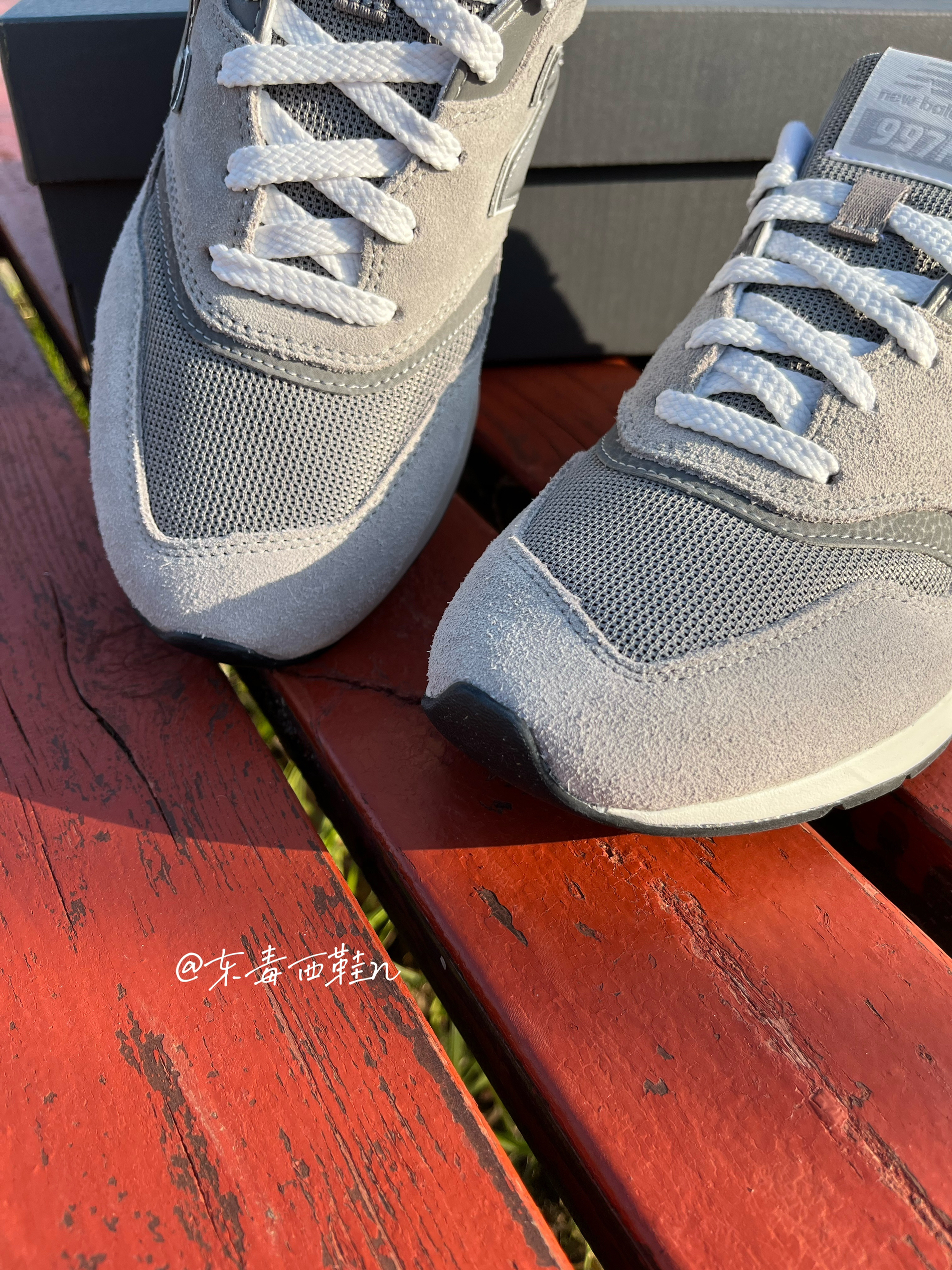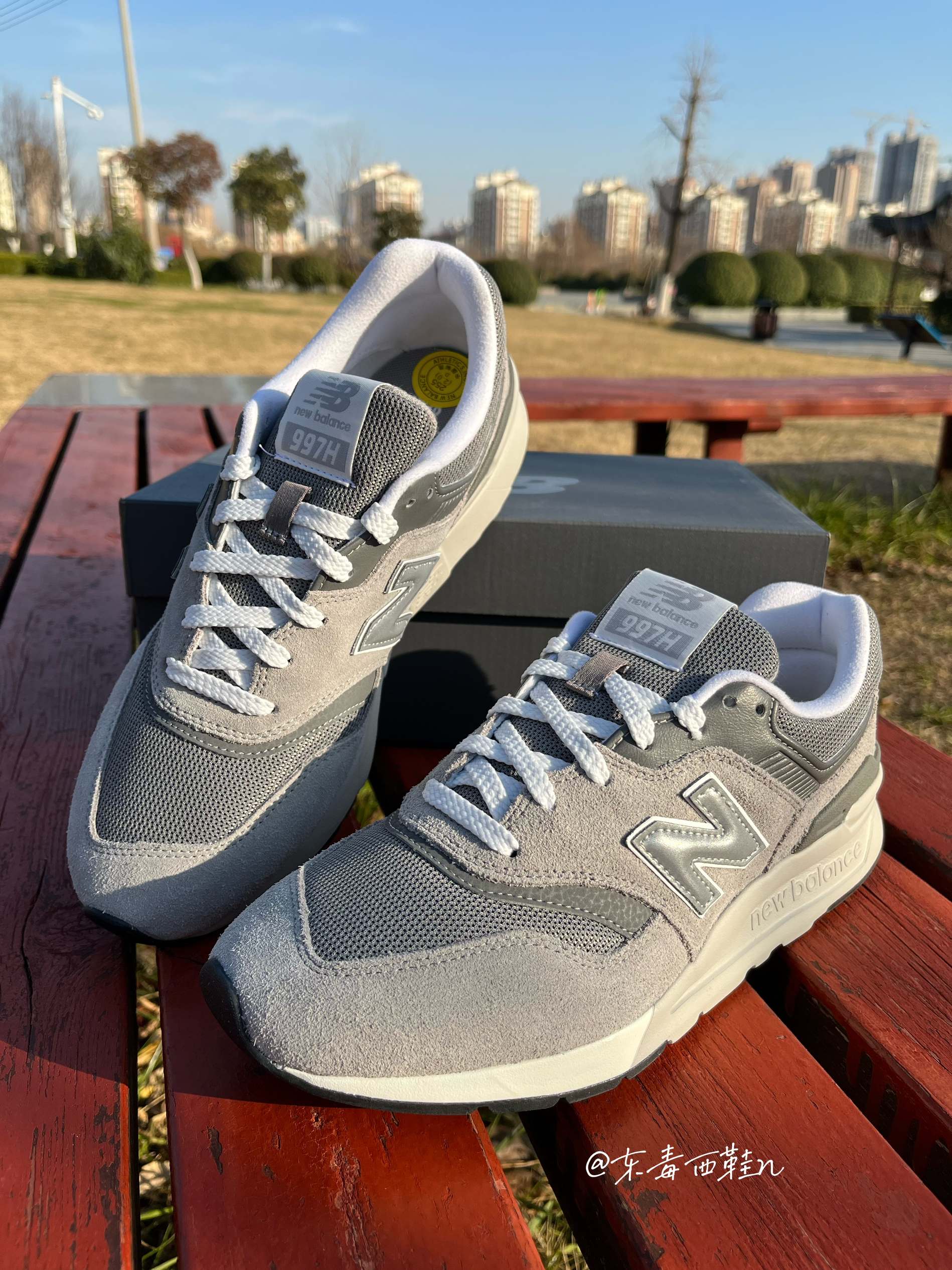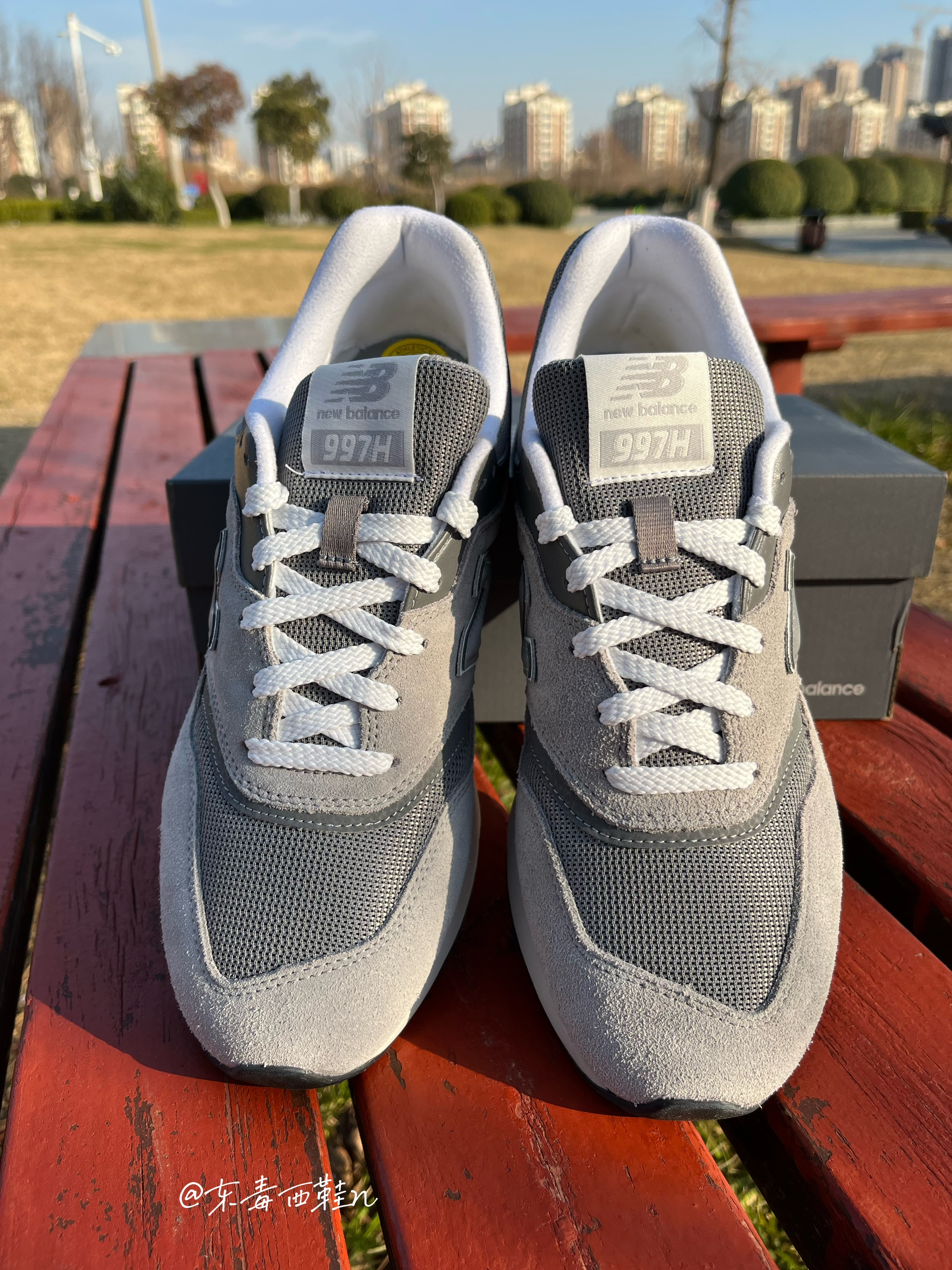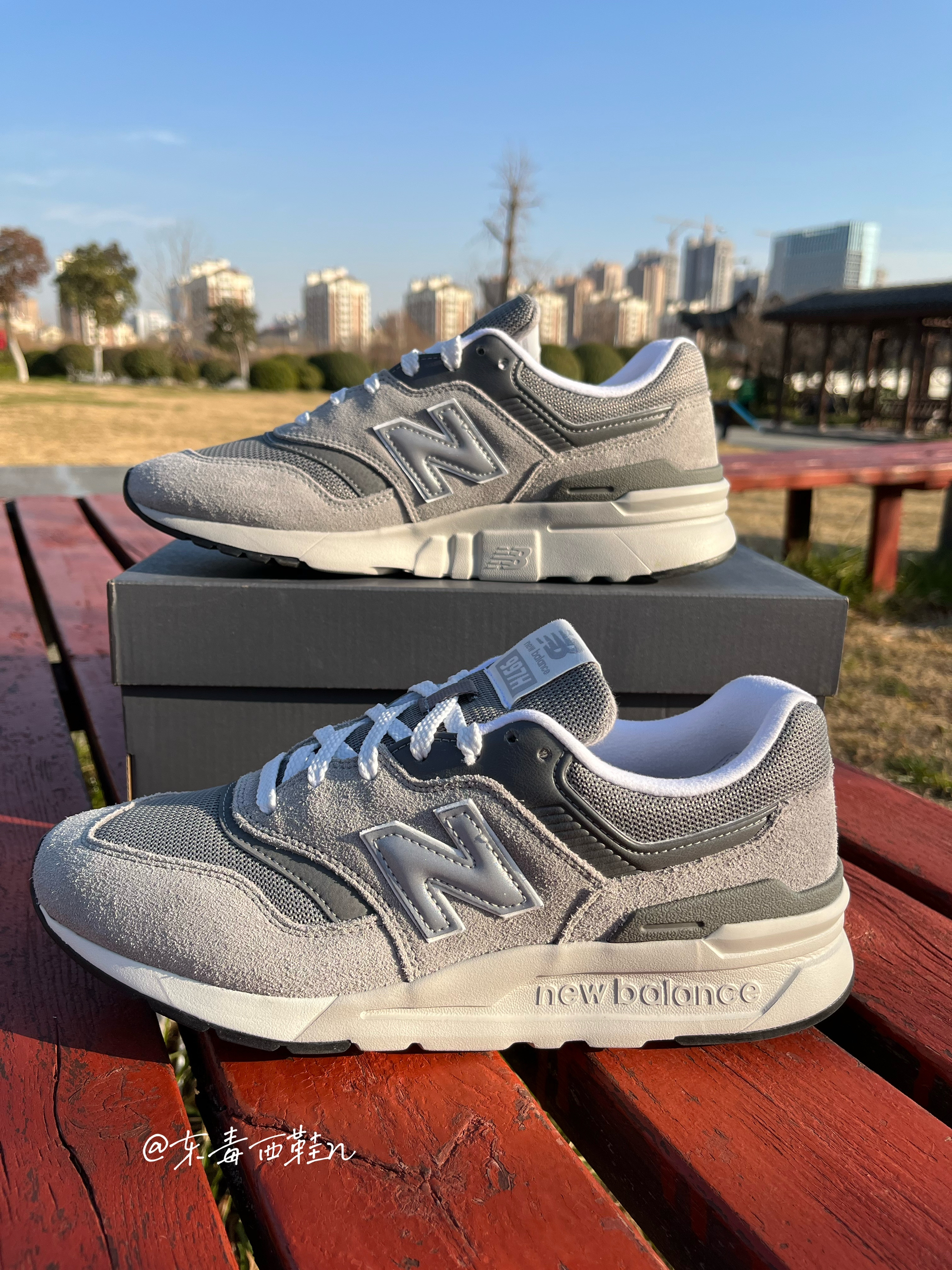 东毒西鞋今日分享 👟鞋名:【圣诞送礼推荐】NewBalance NB997 HCA 灰色D男女同款 🏃 鞋面采用浅灰色组成,深灰色和白色点缀,整体配色简单干净。这款鞋子还是非常耐脏的。鞋面采用织物合成革组成,透气舒适又轻盈。 🏃 EVA的中底加上特殊的纹路大底,使鞋子脚感和防滑耐磨力都大大提升。