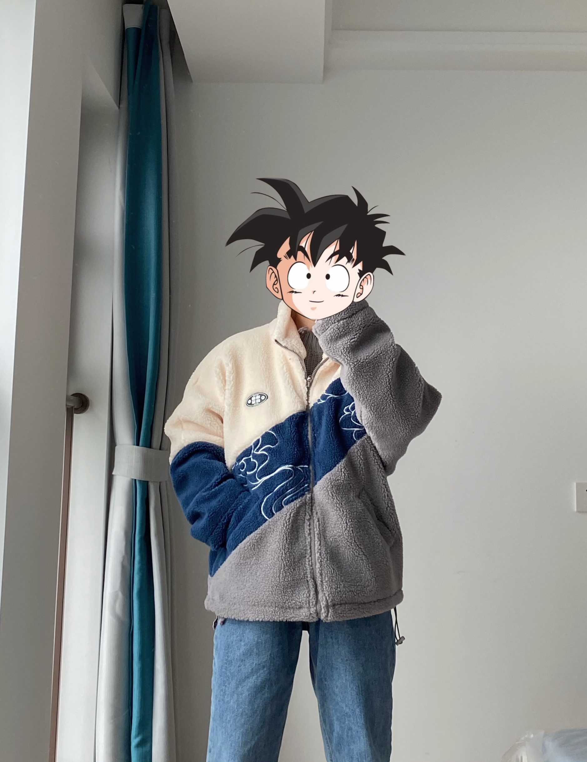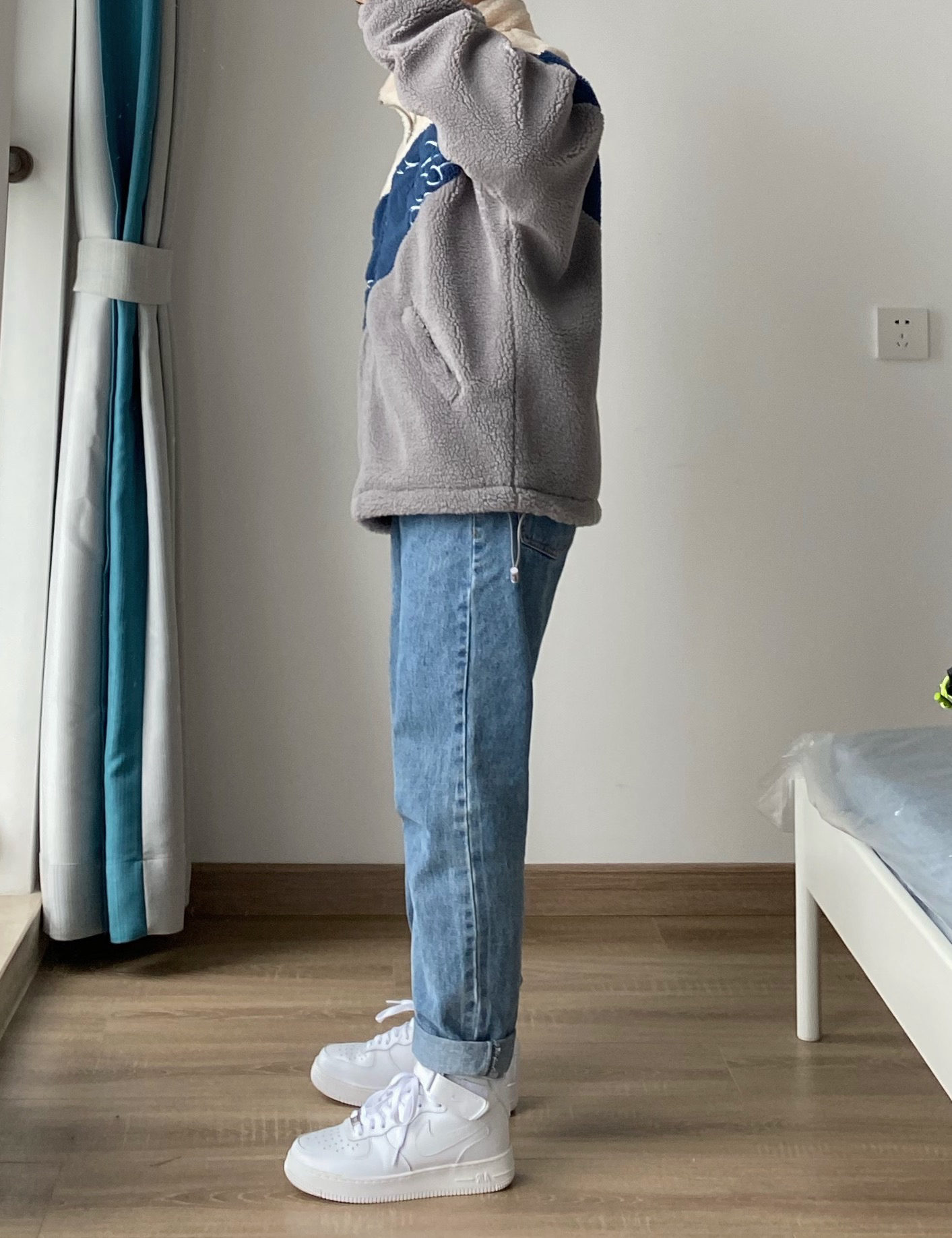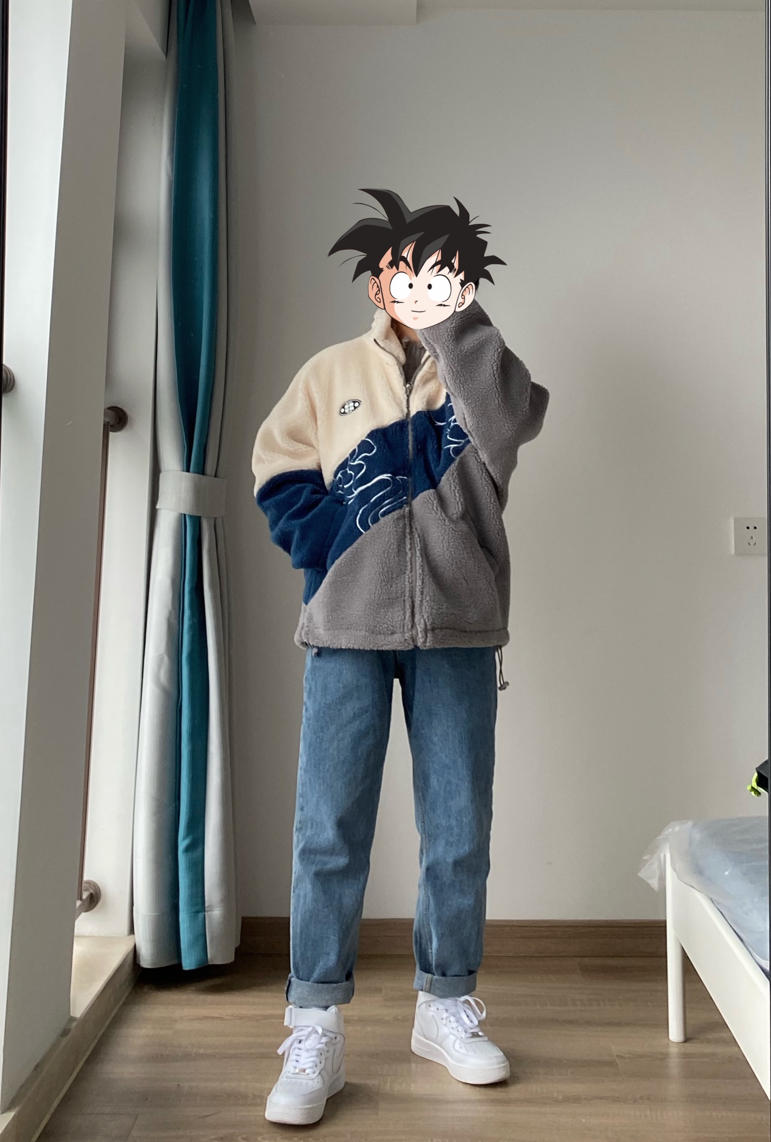冬季必备的百搭外套就是羊羔毛外套了 近几年一直特别流行 这款羊羔绒外套比较特别的地方在于 整体颜色是拼接设计的 米色➕蓝色➕灰色的撞色 非常好看 男女都可以穿 我穿的S码大小刚好 搭配的是我经常穿的那条蓝色小脚牛仔裤 👖:白告studio 👟:Nike 纯白空军一号低帮