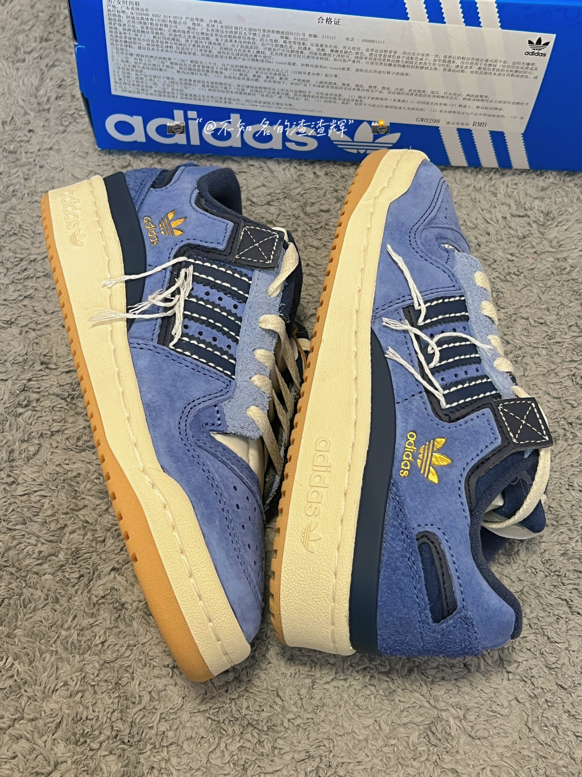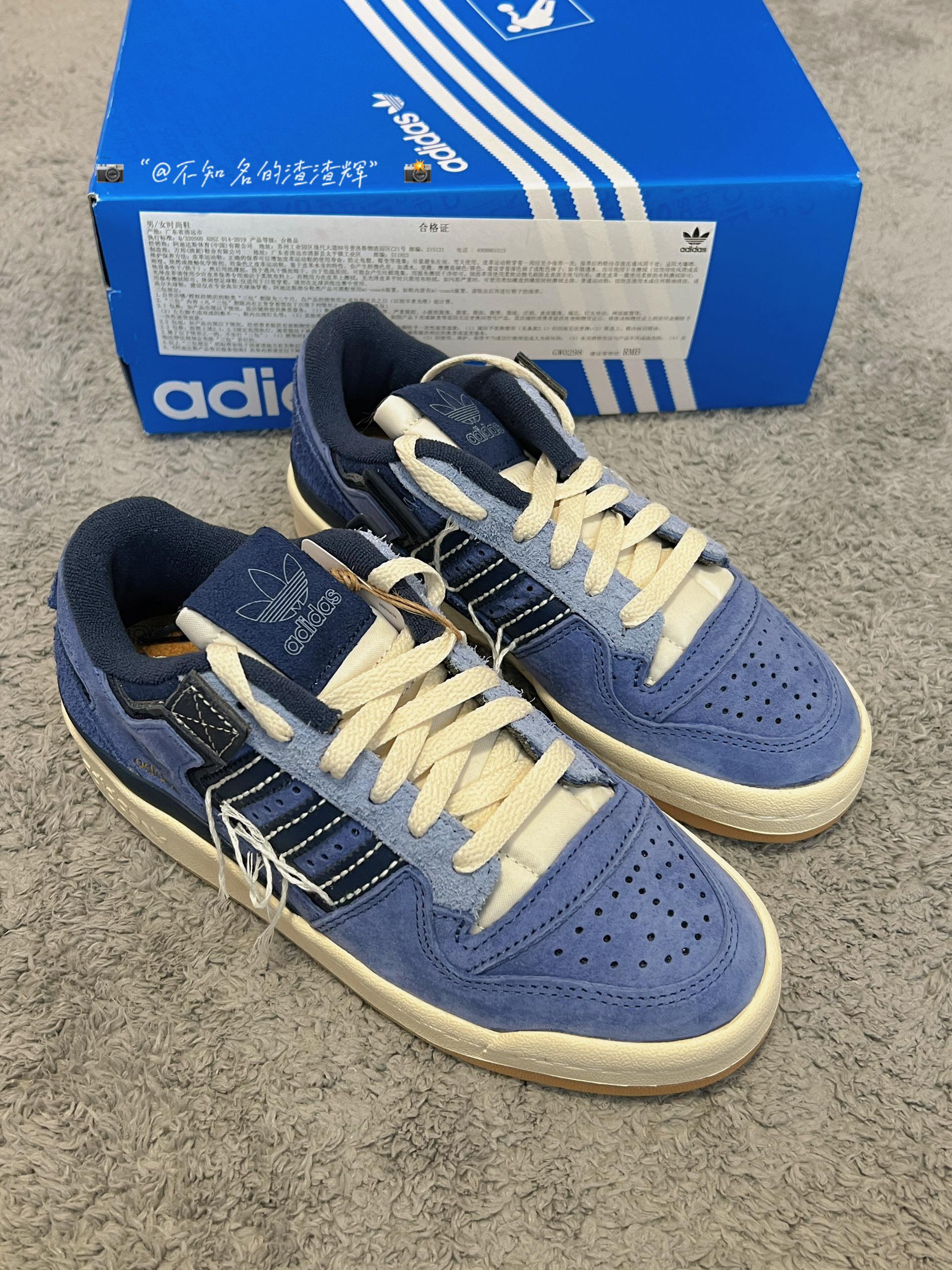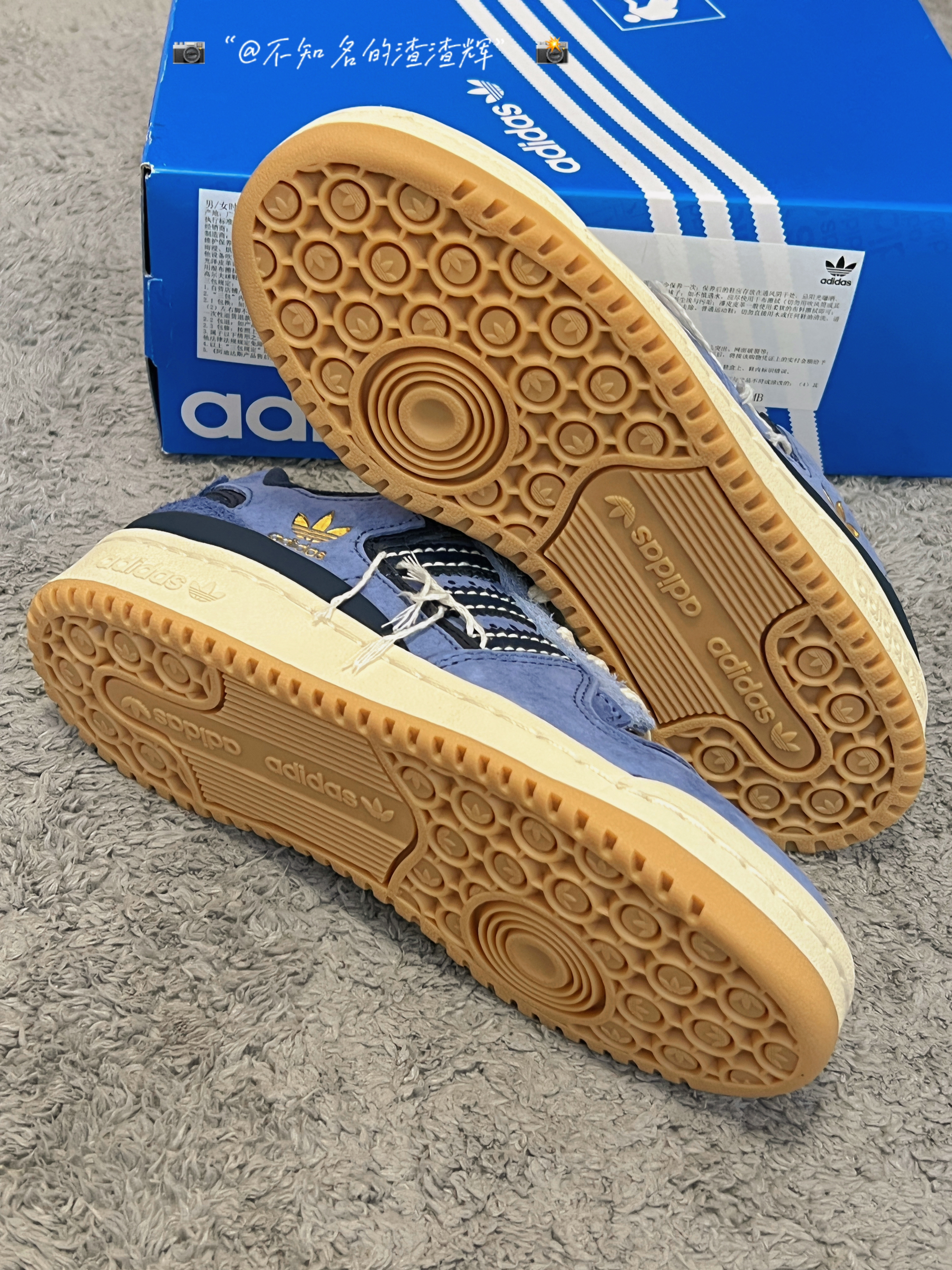 💫:adidas originals Forum 84 Low 牛仔蓝 线头 💫:这双鞋子整体以“牛仔蓝”为主色调,鞋身有着三道杠海军蓝标志➕线头设计风格,鞋帮处有着金色adidas标志,彰显身份,鞋面采用绒面革➕翻毛皮材质组成,质感细腻,鞋舌采用海绵材质,贴合脚背,更加舒适,生胶大底防滑耐磨都不错 💫:属于vibe风格的一款鞋,上脚非常好看,脚感的话比较一般 💫:尺码推荐:正常尺码