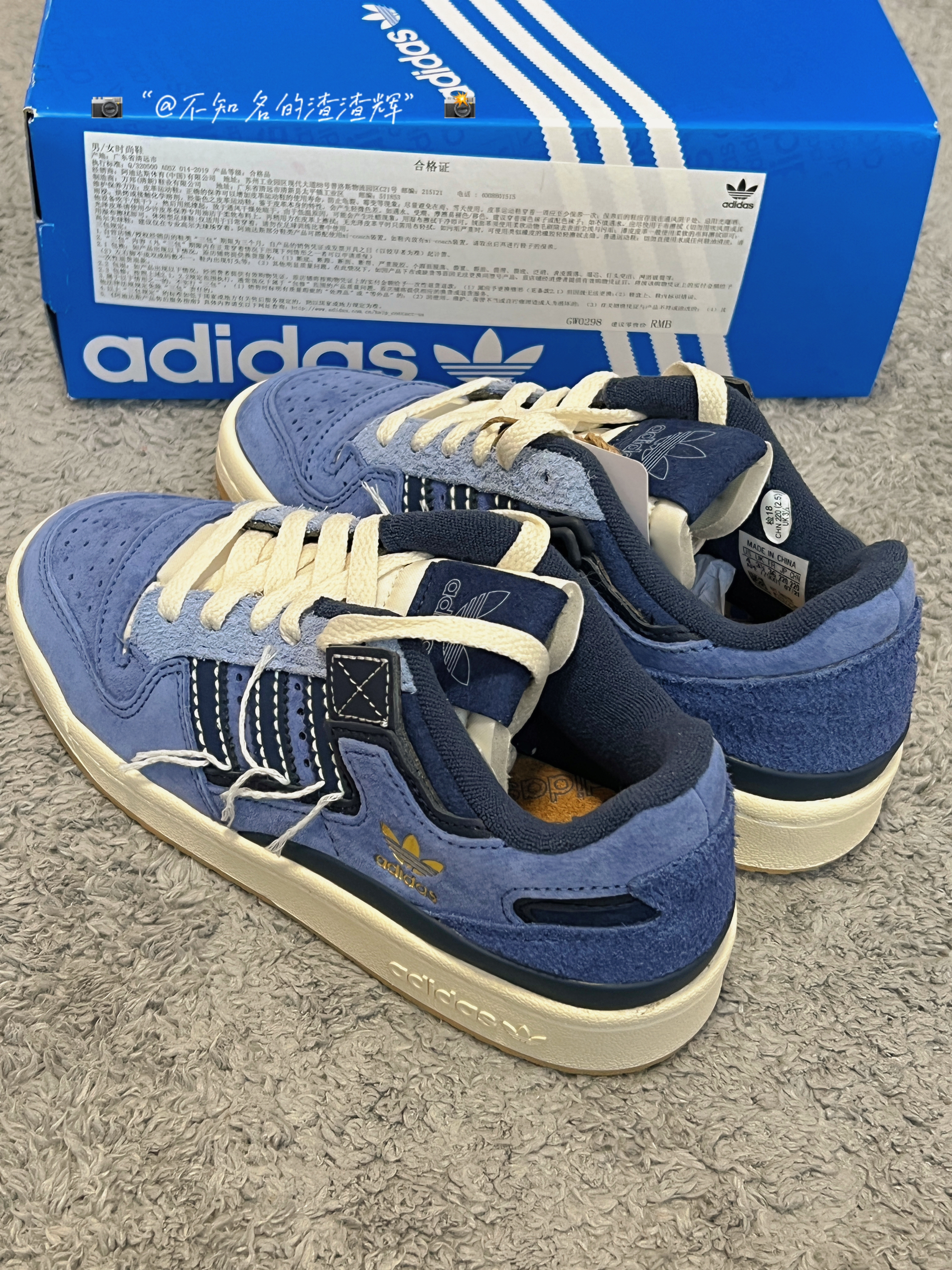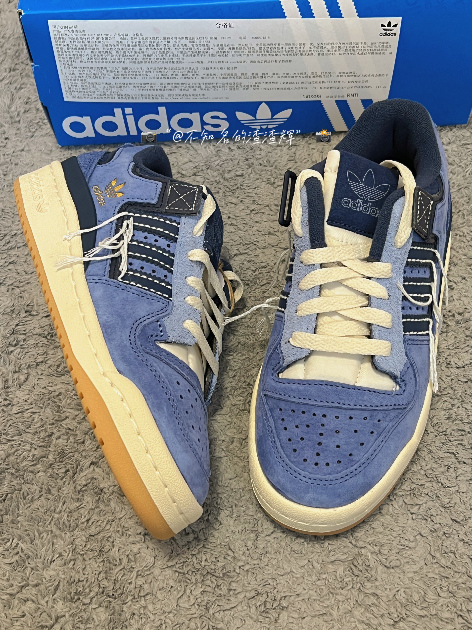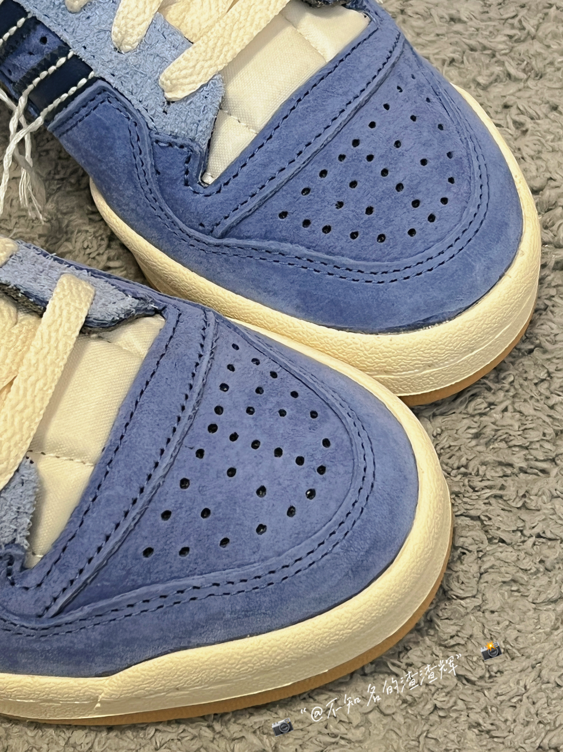 💫:adidas originals Forum 84 Low 牛仔蓝 线头 💫:这双鞋子整体以“牛仔蓝”为主色调,鞋身有着三道杠海军蓝标志➕线头设计风格,鞋帮处有着金色adidas标志,彰显身份,鞋面采用绒面革➕翻毛皮材质组成,质感细腻,鞋舌采用海绵材质,贴合脚背,更加舒适,生胶大底防滑耐磨都不错 💫:属于vibe风格的一款鞋,上脚非常好看,脚感的话比较一般 💫:尺码推荐:正常尺码