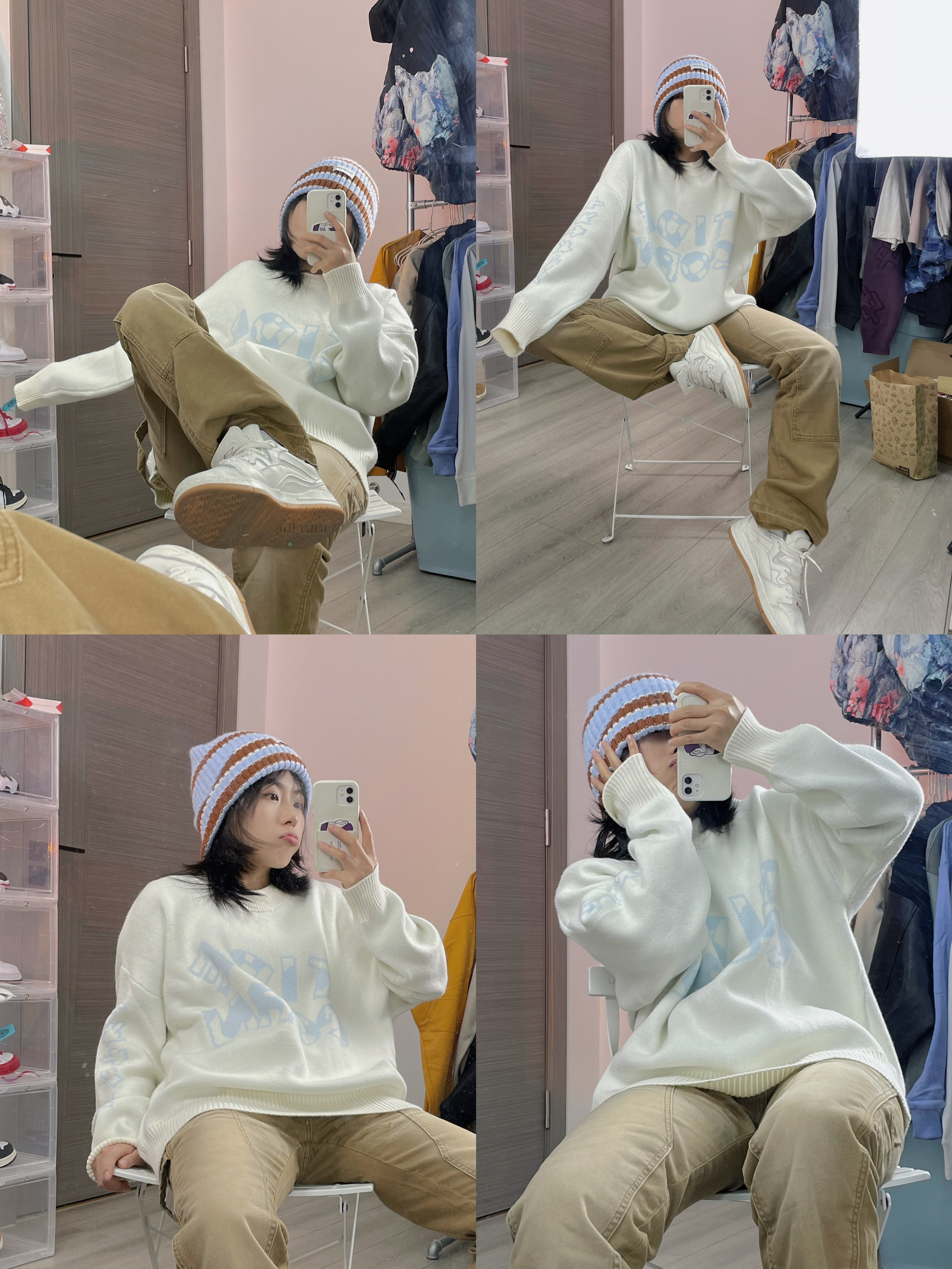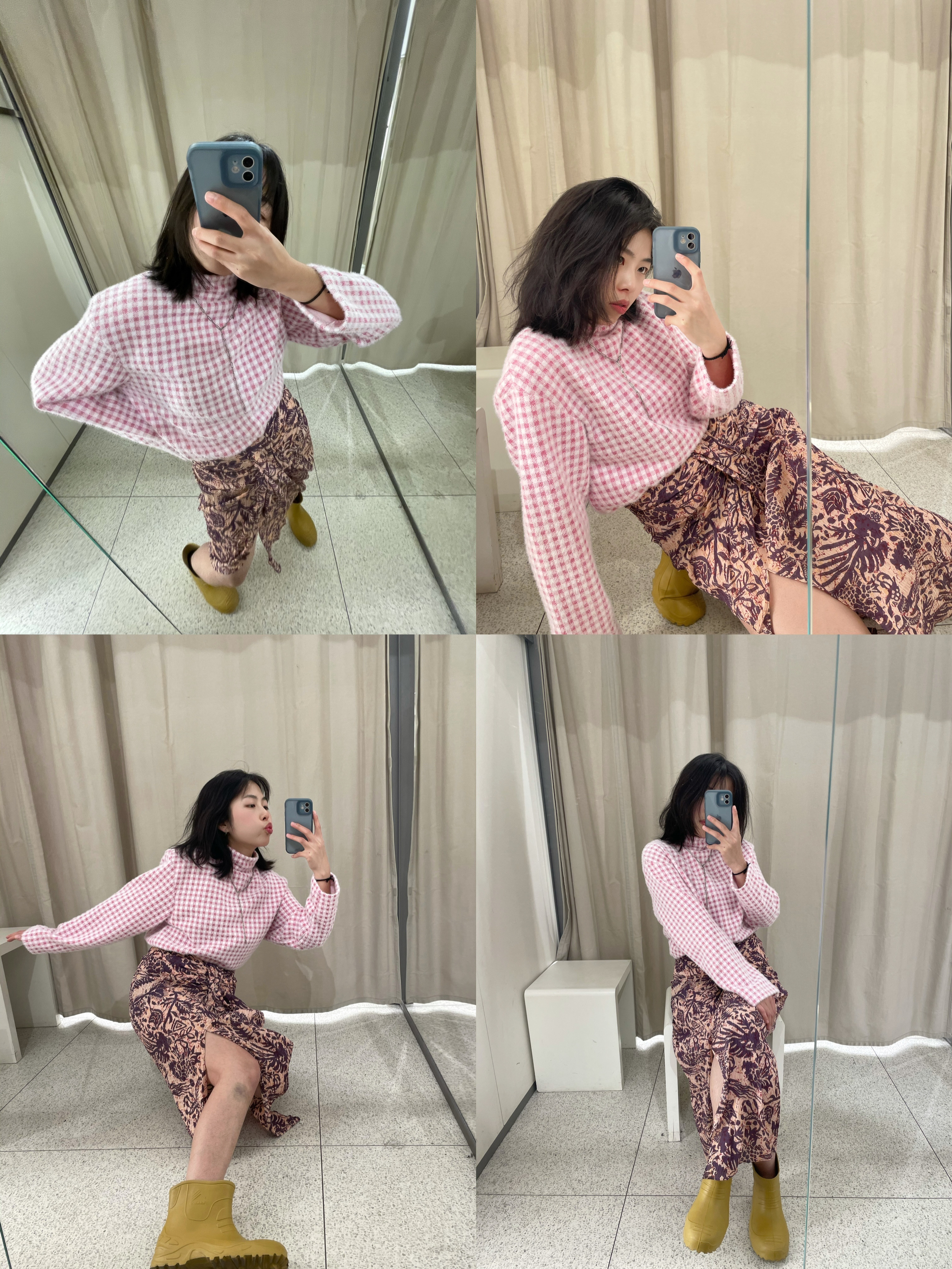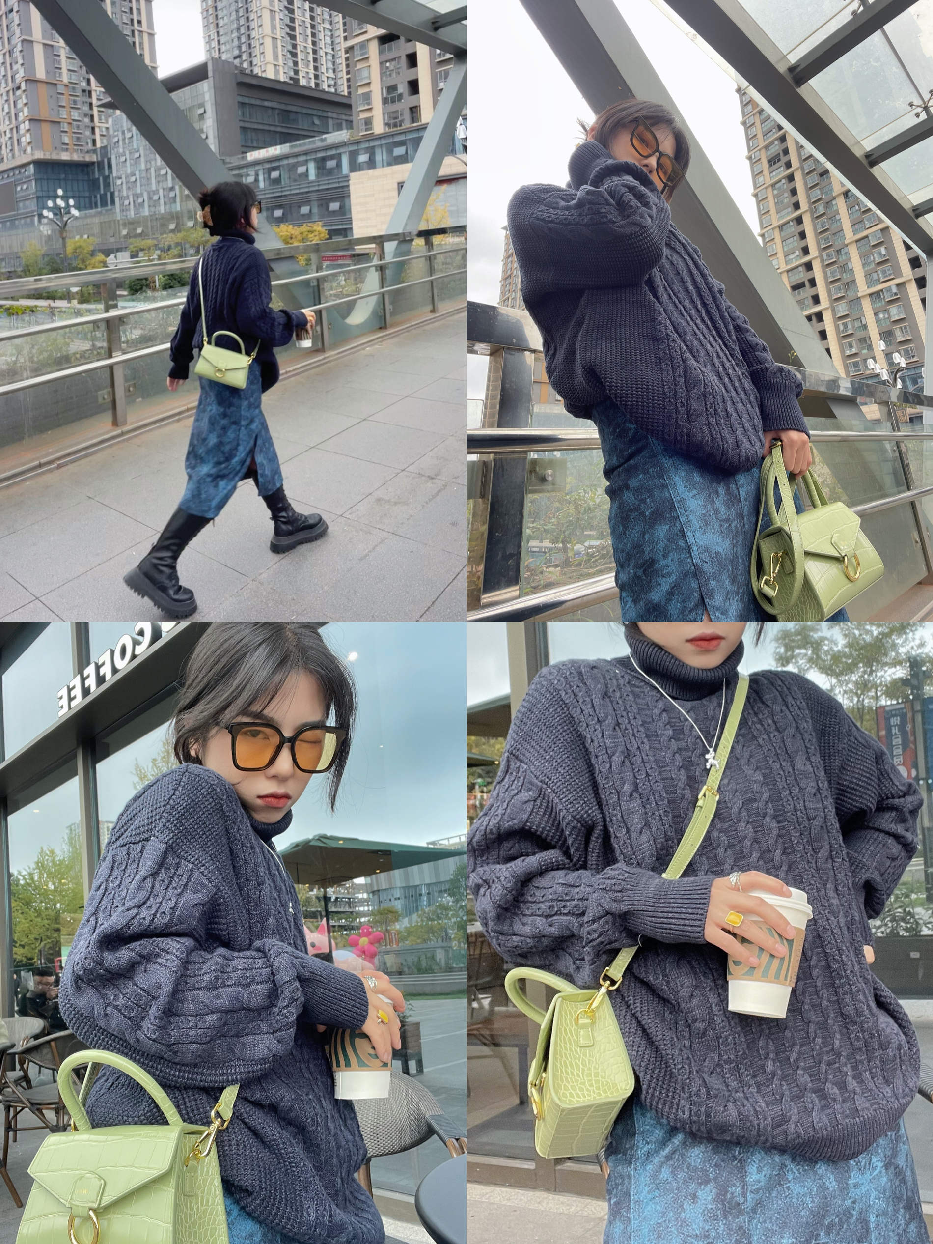 秋冬穿毛衣再合适不过啦~ 秋日单穿冬日叠穿打底很nice! 🪞look1慵懒风 奶呼呼的毛衣主要弹性很大垂感也很不错慵懒风可爱风甜美风都能hold住哦 配上白生胶就还蛮温柔的😬 🪞look2时髦精 逛ZARA的时候看到这件格纹毛衣就找了条裙子搭配一下粉色很温柔毛绒款的质感很柔软,搭配雨靴还蛮好看得的😎 🪞look3御姐出街 藏青色高领毛衣配上同色系半身长裙上简下繁再长靴和墨镜🕶️有种柔中带刚...