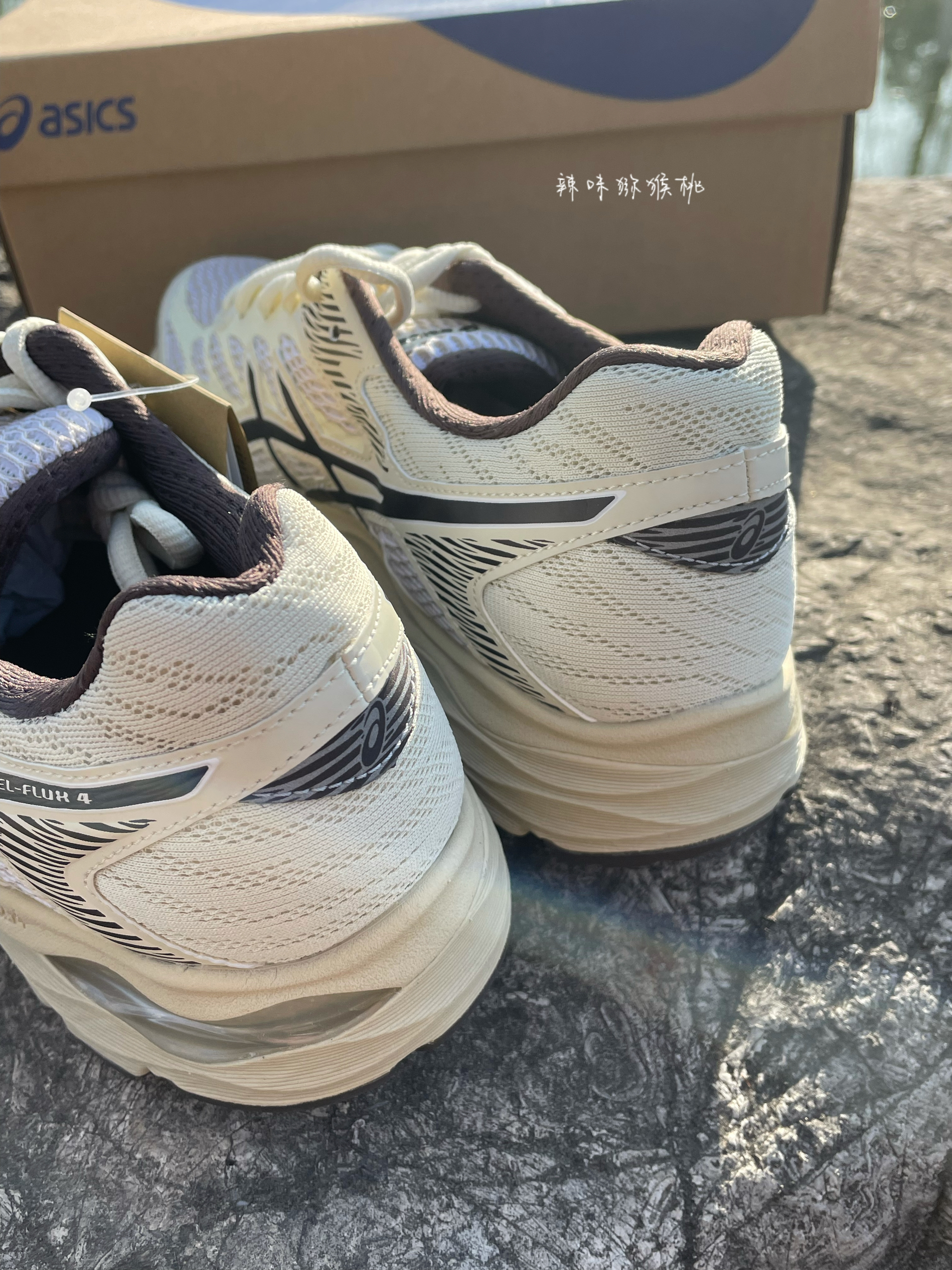 👟:AsicsGel-Flux4复古缓震专业跑步鞋白棕 👟鞋子外观配色以白棕色为主色调,配色简约大方,给人不俗的视觉感受。鞋面采用透气网眼材质,为鞋子打造了不错的透气性。鞋子后跟搭载可视GEL缓震胶,为足跟提供充分的冲击防护。 👟鞋子中底采用SPEVA弹性中底,不仅可以缓解落地冲击力,还有较强反弹力,提高效率。大底采用橡胶大底,非常耐磨! 👟整体来说,鞋子穿着跑步是真的舒服!