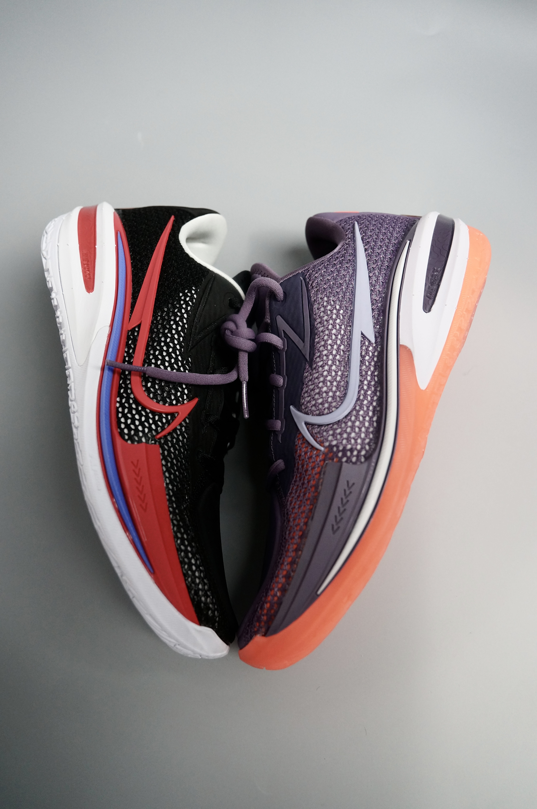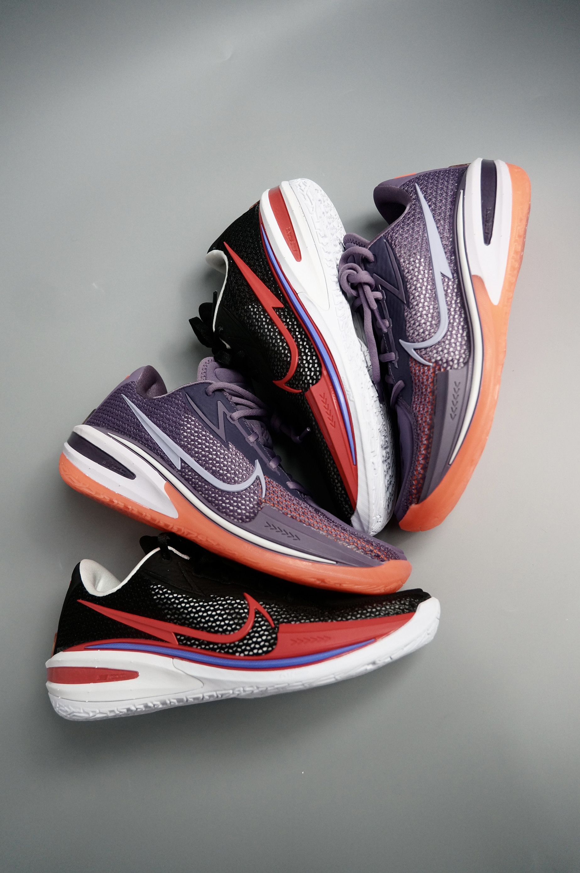 今年买过特别多实战鞋,要说哪双上脚后最好那必须是G.T Cut了 1.Nike Air Zoom G.T Cut EP 淡紫色:整体淡紫的配色加上橙色点缀,橙色水晶大底。圆头鞋带,适合室内场地。 2.Nike Air Zoom G.T Cut EP 黑红:整体黑红紫配色,白色橡胶大底,鞋带是扁鞋带。适合室内室外场地 科技配置:REACT+ZOOM STROBLE+ 马蹄形的ZOOM气垫的三重...