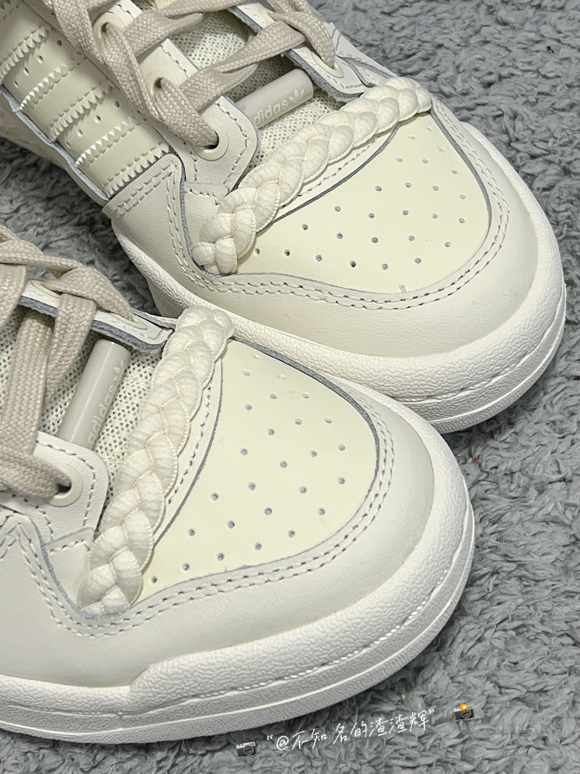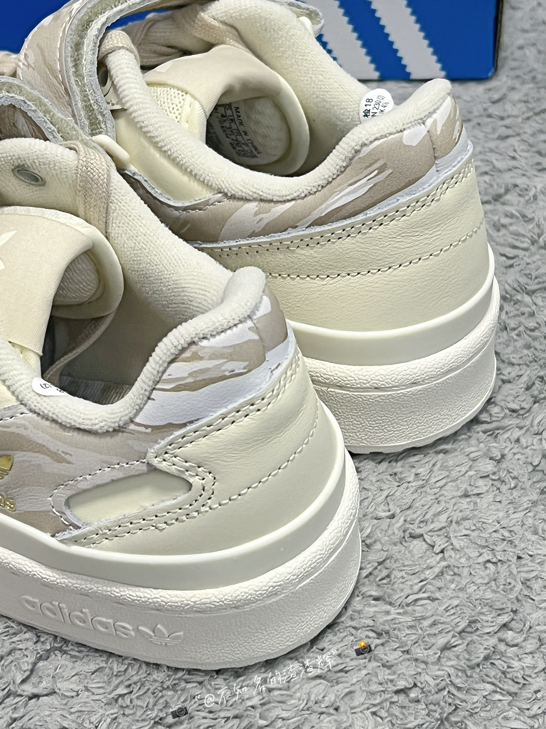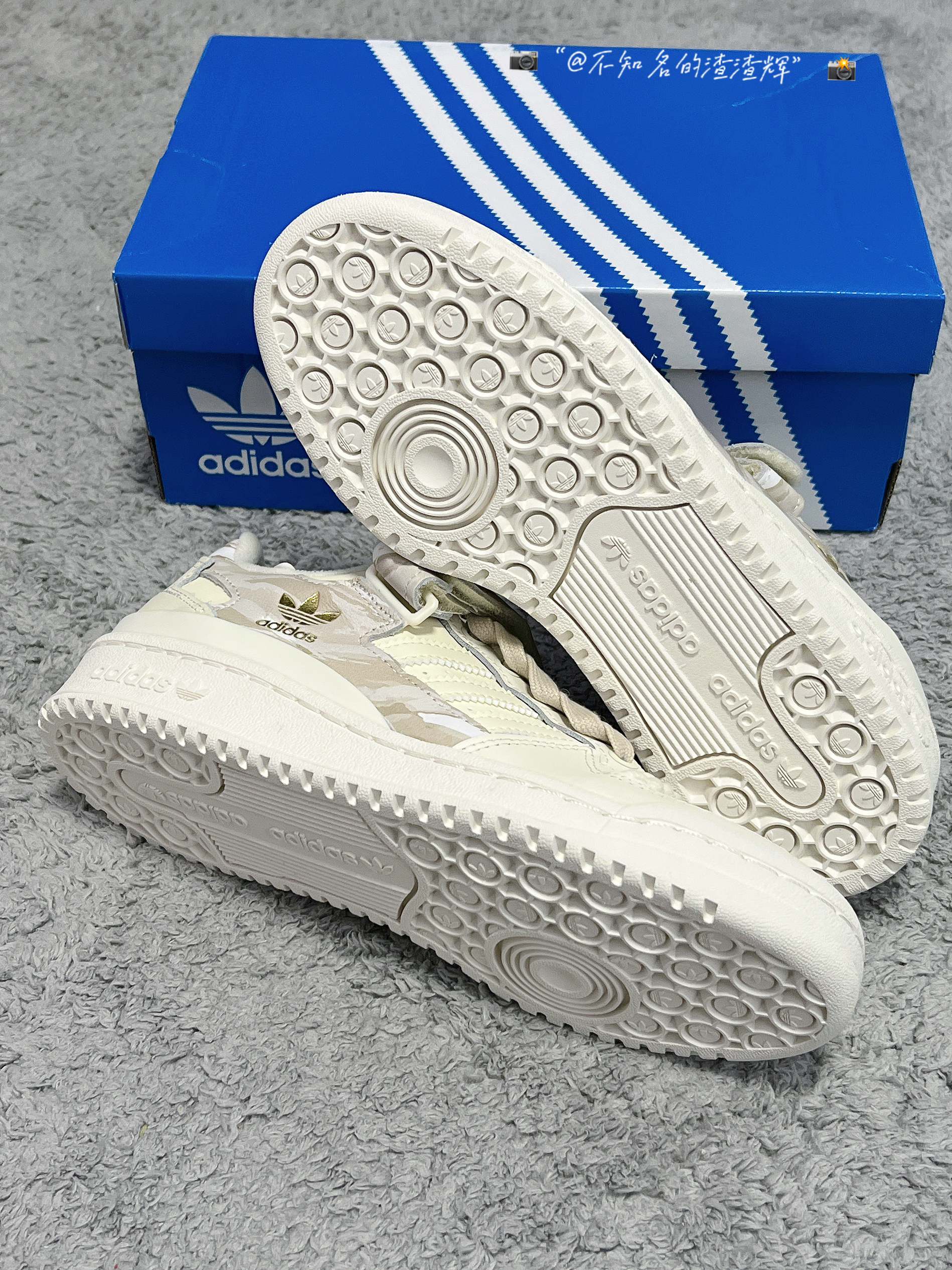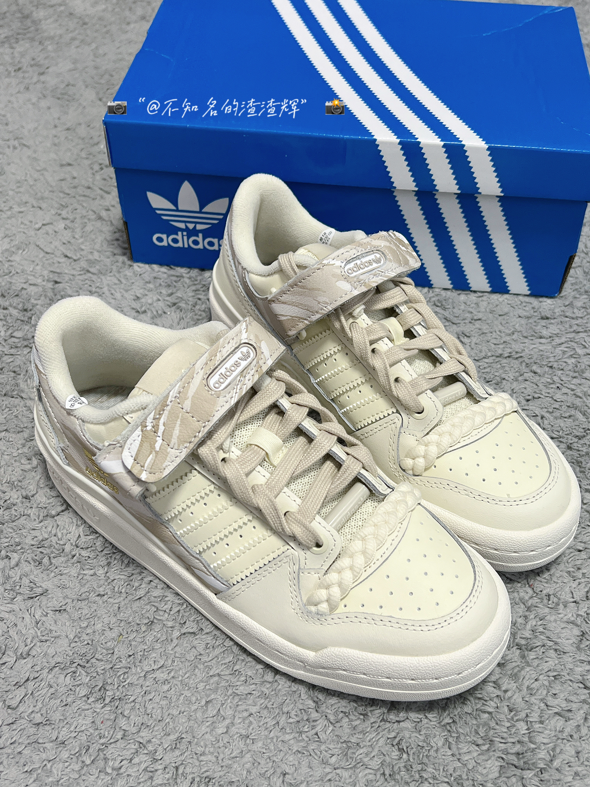 ️ 🤔:adidas originals Forum Low 舒适耐磨板鞋 女款 米棕色 🤔:这双鞋子整体以米白色呈现,鞋身和魔术贴都有着迷彩印花设计,满满的高级感,魔术贴、中底、鞋帮处都有着adidas三叶草标志彰显身份,鞋带有着独特的麻绳设计,也是这双鞋子的灵魂,鞋面整体采用优质皮革材质,质感舒适,橡胶大底防滑耐磨都很不错 🤔:特别特别宝藏的一款鞋子,适合女生穿,上脚真的无敌好看 🤔:尺...