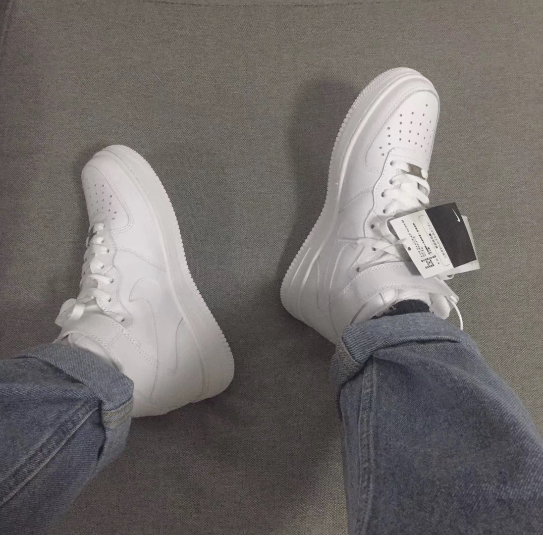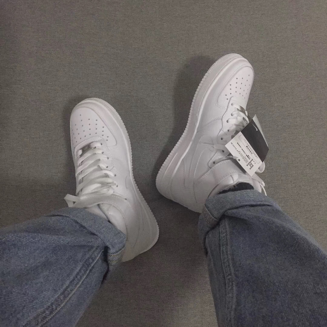 今天分享一双我很喜欢穿的中帮白色板鞋 属于人人鞋柜里必备的一款基础百搭款了~ Nike AF1纯白空军中帮 男女都可以穿的基础百搭款 冬天的时候穿中帮鞋很暖和哦 厚度在北方可以过冬 皮面不贵太容易脏 脏了也很好打理 平时搭配一些蓝色的牛仔裤很好看