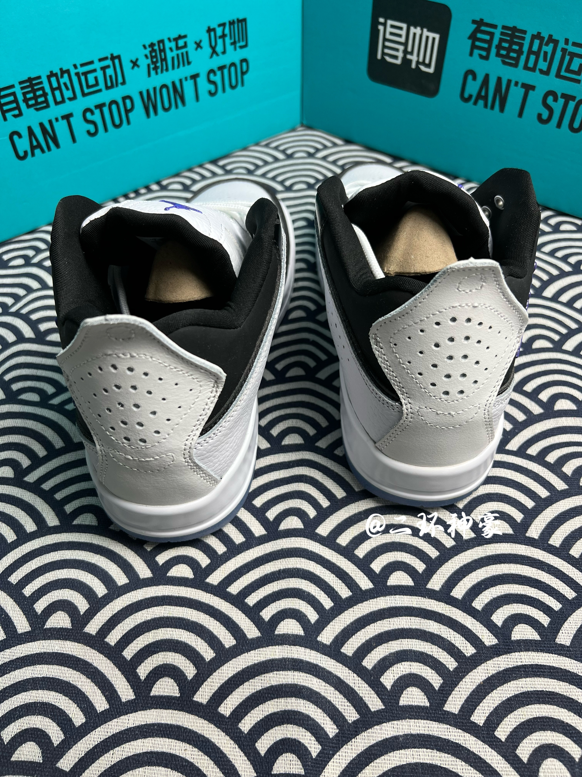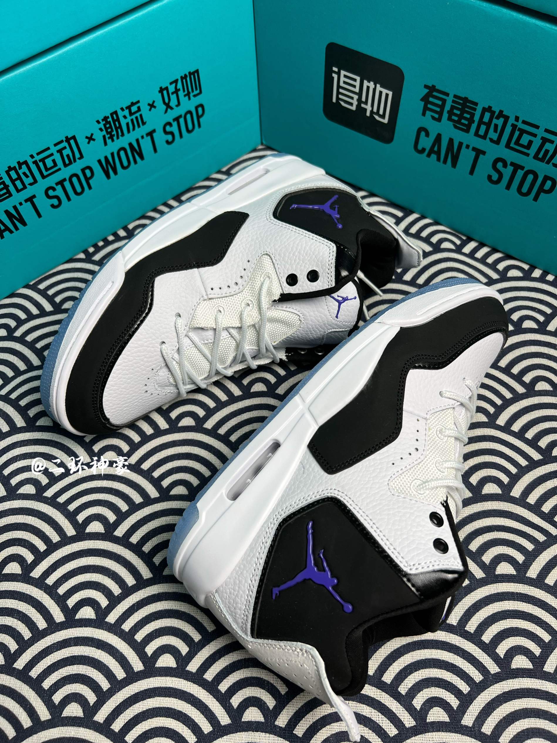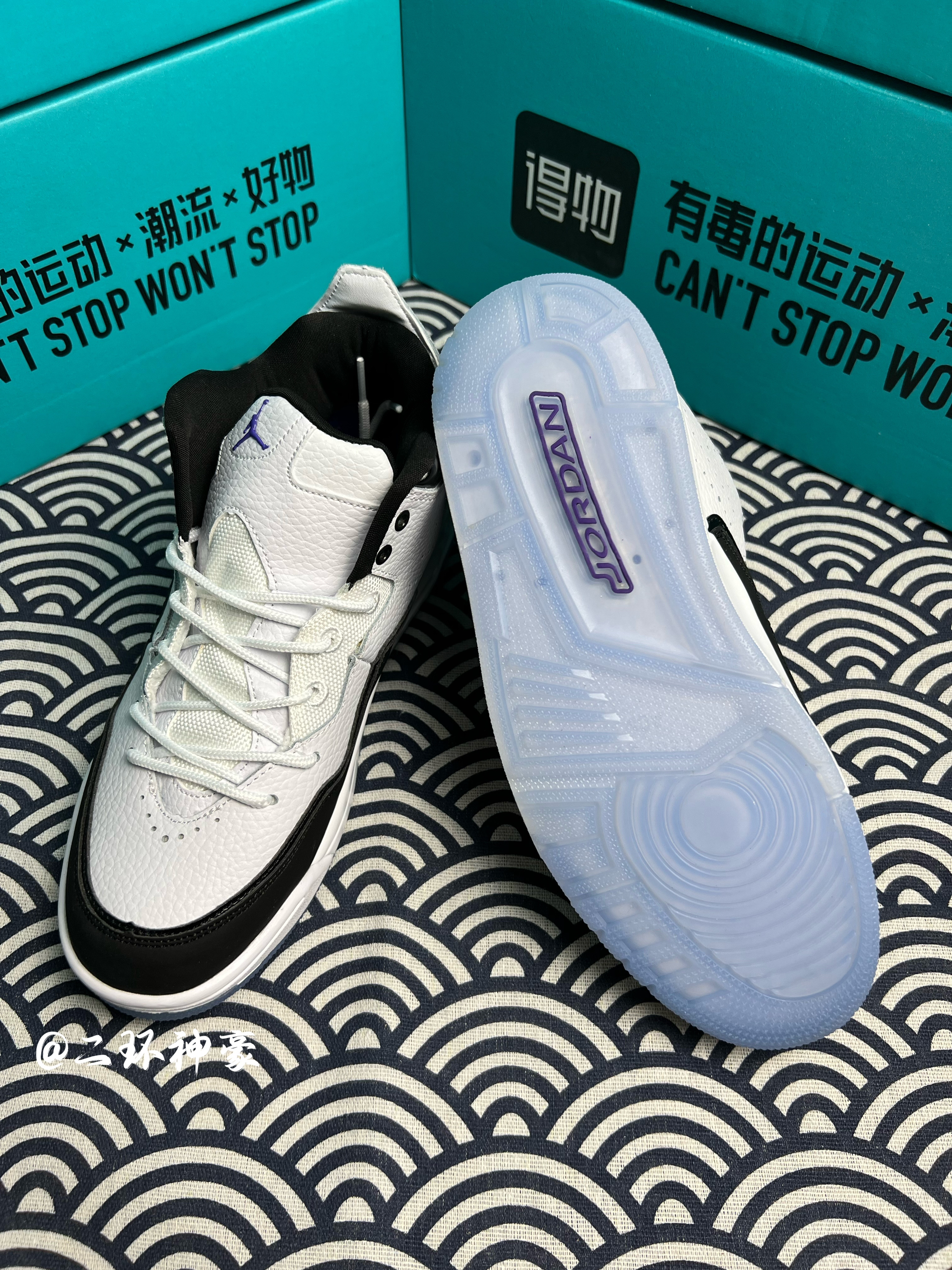 Air Jordan Courtside 23 黑白Concord 💫: 当初听说这双鞋被称为“小藤原浩”,心想大概又是投机者强扯关系加上的名字吧,然而当我仔细看过实物细节后,算是打了自己的脸,和AJ3藤原浩超级像,说是小藤原浩绝对不为过。 💫:鞋子整体采用黑白主色调,白色荔枝皮鞋面,超级有质感,而且皮质鞋面非常容易打理。紫色鞋舌和鞋帮小飞人logo点缀,天蓝色的水晶鞋底真的非常帅,不考虑氧化...