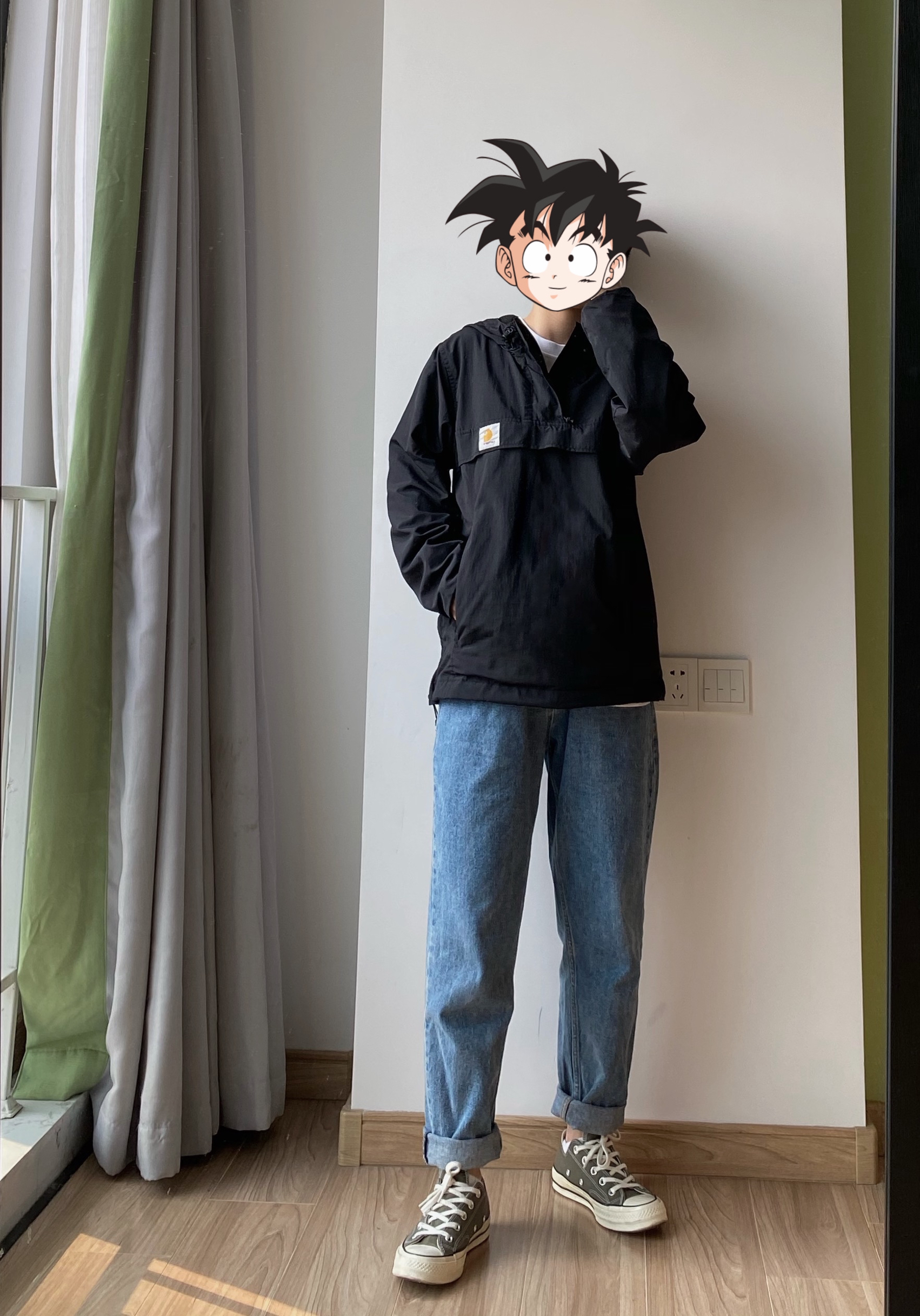 今天来分享一下我很喜欢的一件卡哈特的冲锋衣外套 实用性很高 我去藏区高原的时候一直喜欢穿这件 可以做内搭 也可以外穿 防风防水 帽子也很实用 我穿的S码效果如图 👖牛仔裤搭配的是白告stuio的蓝色牛仔裤 👟鞋子搭配匡威1970s经典款或者马丁靴都可以