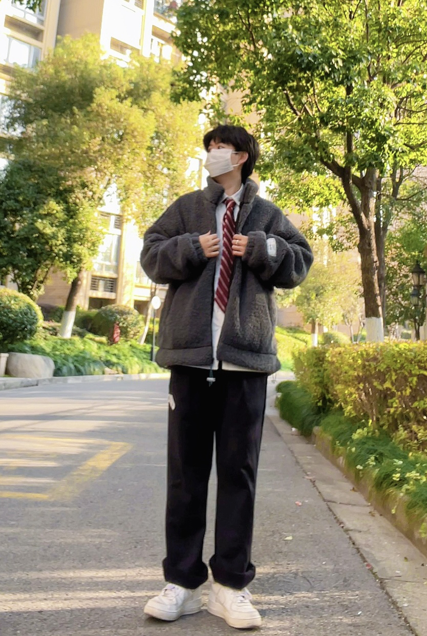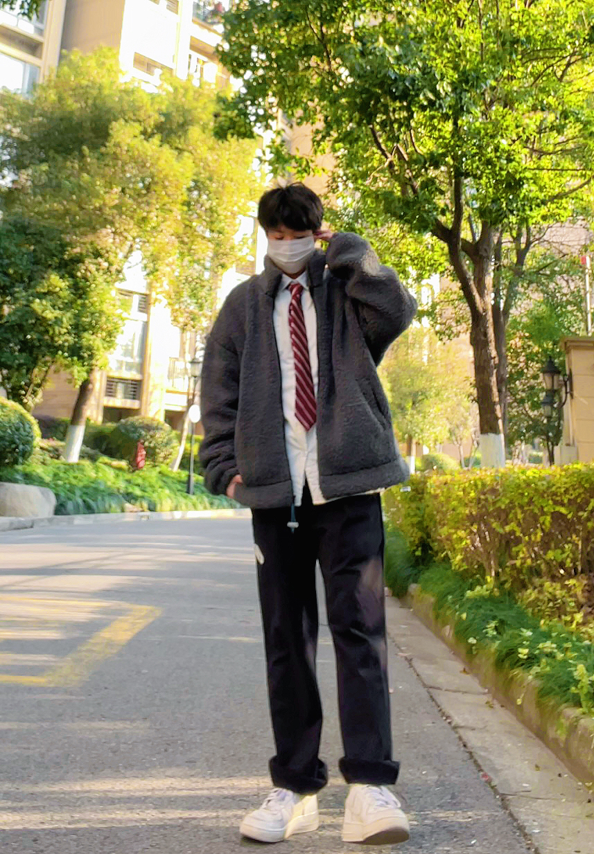 ✨今日穿搭 灰色羊羔毛外套(BENMYSHOWER) 黑色休闲裤(OLD ORDER) 白色加绒衬衫 红色条纹领带 小白鞋 ——————————————————— ✨灰色的羊羔毛外套保暖的同时也是很百搭的单品 简单的黑白灰搭配红色的领带 就很出彩 ——————————————————— ✨每日穿搭|灰色羊羔毛外套穿搭|白衬衫穿搭|冬日保暖穿搭|黑色加绒休闲裤穿搭|小白鞋穿搭|男生休闲轻熟穿搭|