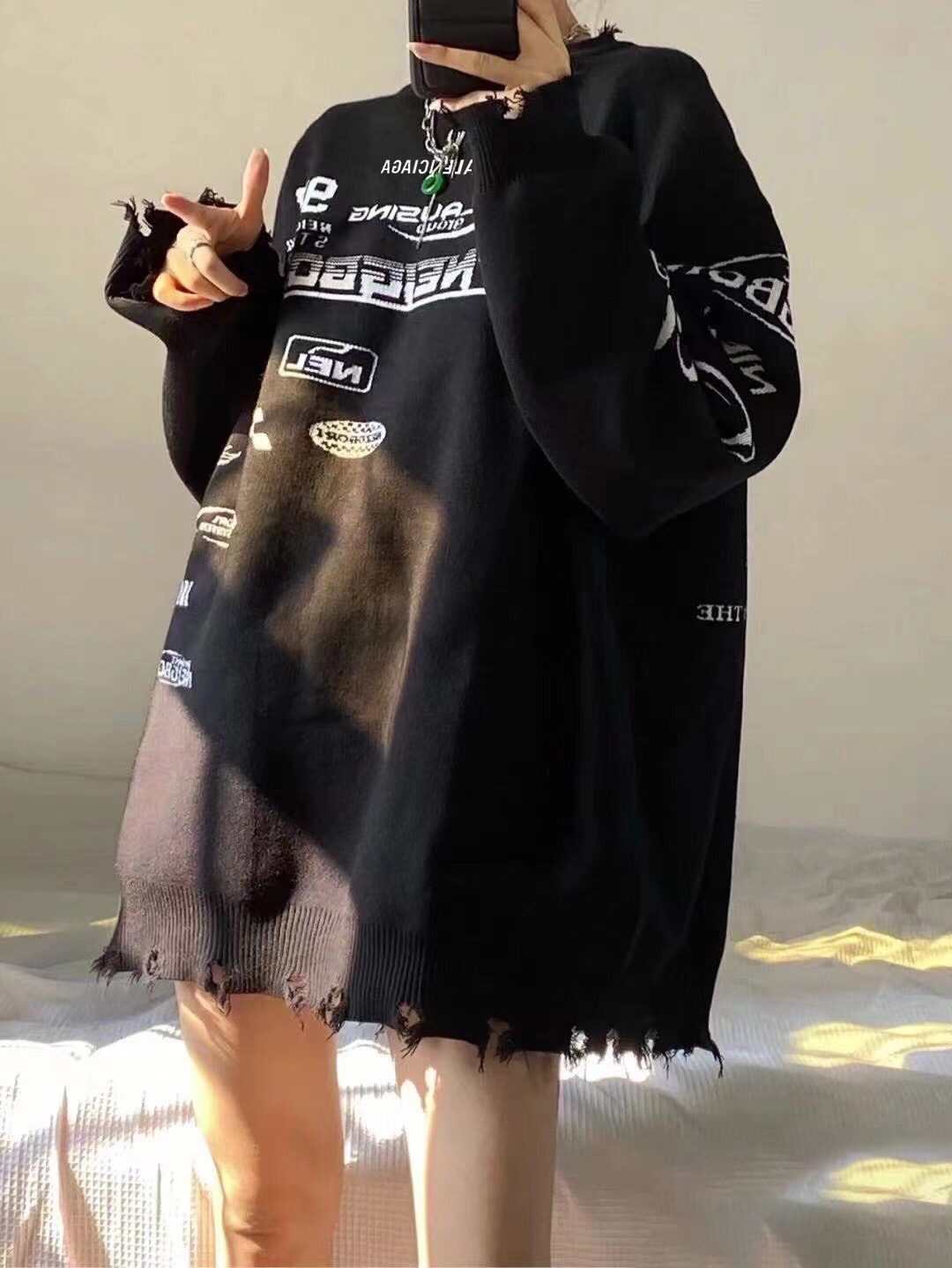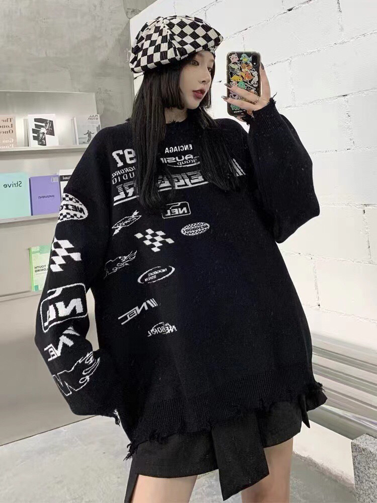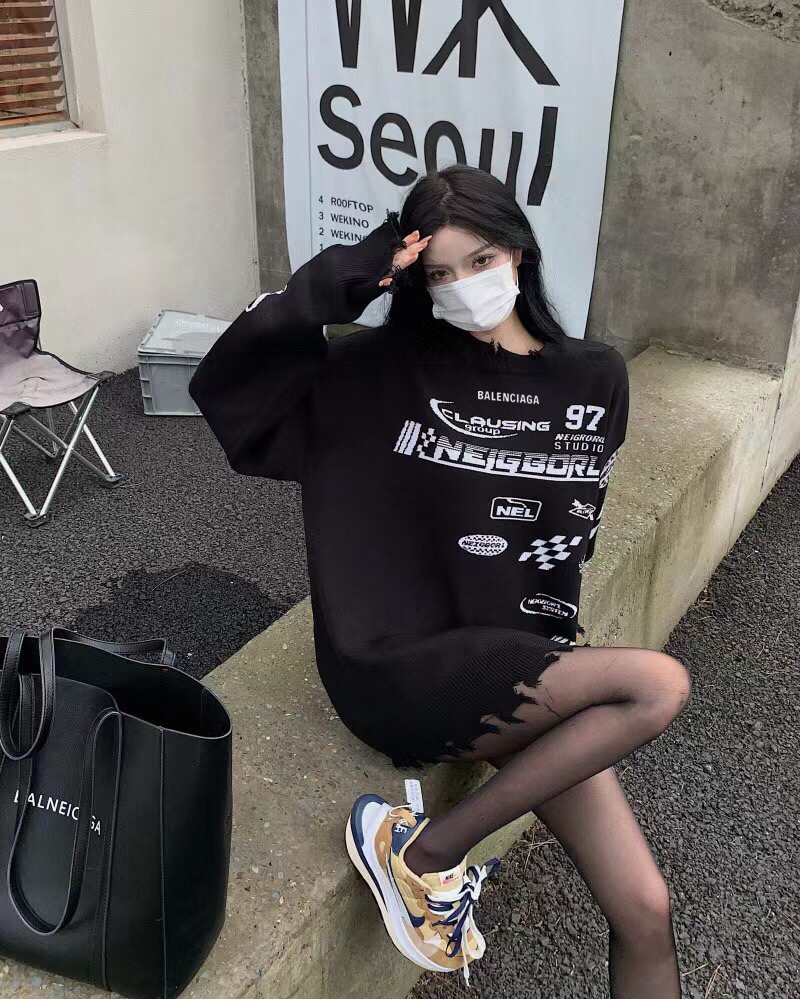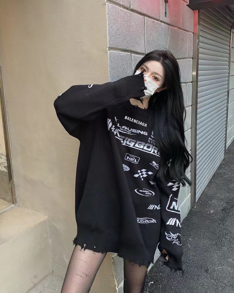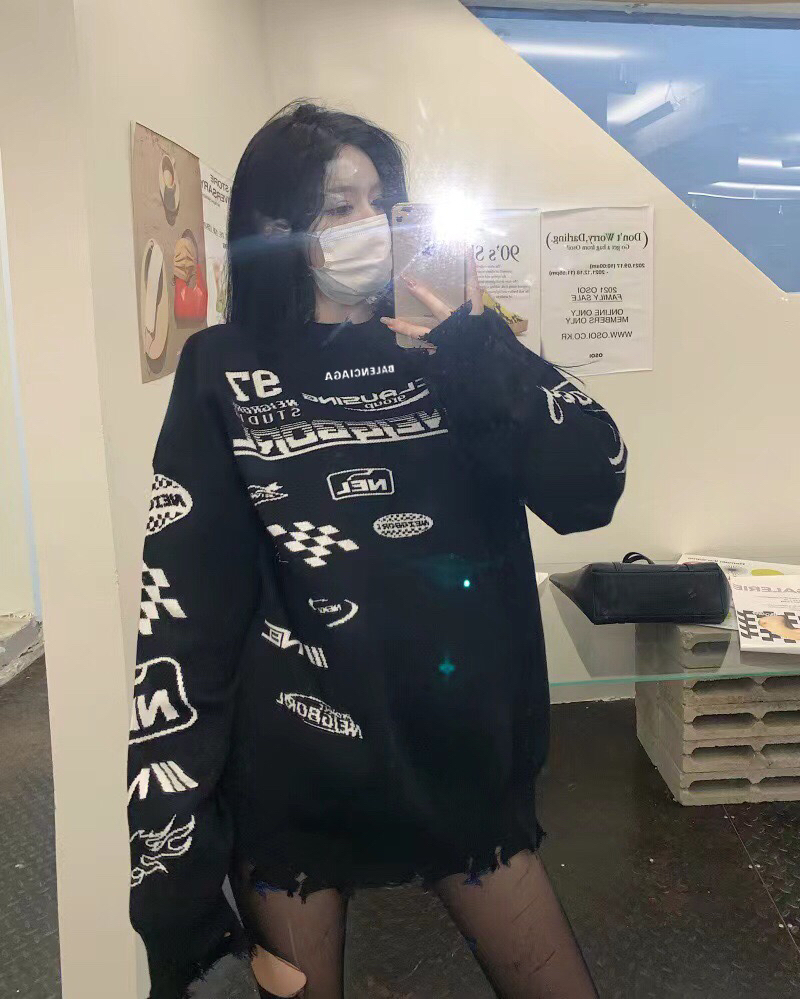 巴黎世家Belenciaga复古毛边赛车服字母提花套头黑色的毛衣针织衫 穿着也很日常黑白相间,美观大方高级感不言而喻,这款在设计上经过破损处理 尤其是衣摆处的做旧处理,一下子丰富这款毛衣的造型感 衣长可以正好的遮住屁股,上身就是纸片人的那种 三标齐全 尺码:M-XL M码衣长70胸围114袖长72 L码衣长71胸围116袖长73 XL码衣长72胸围118袖长74