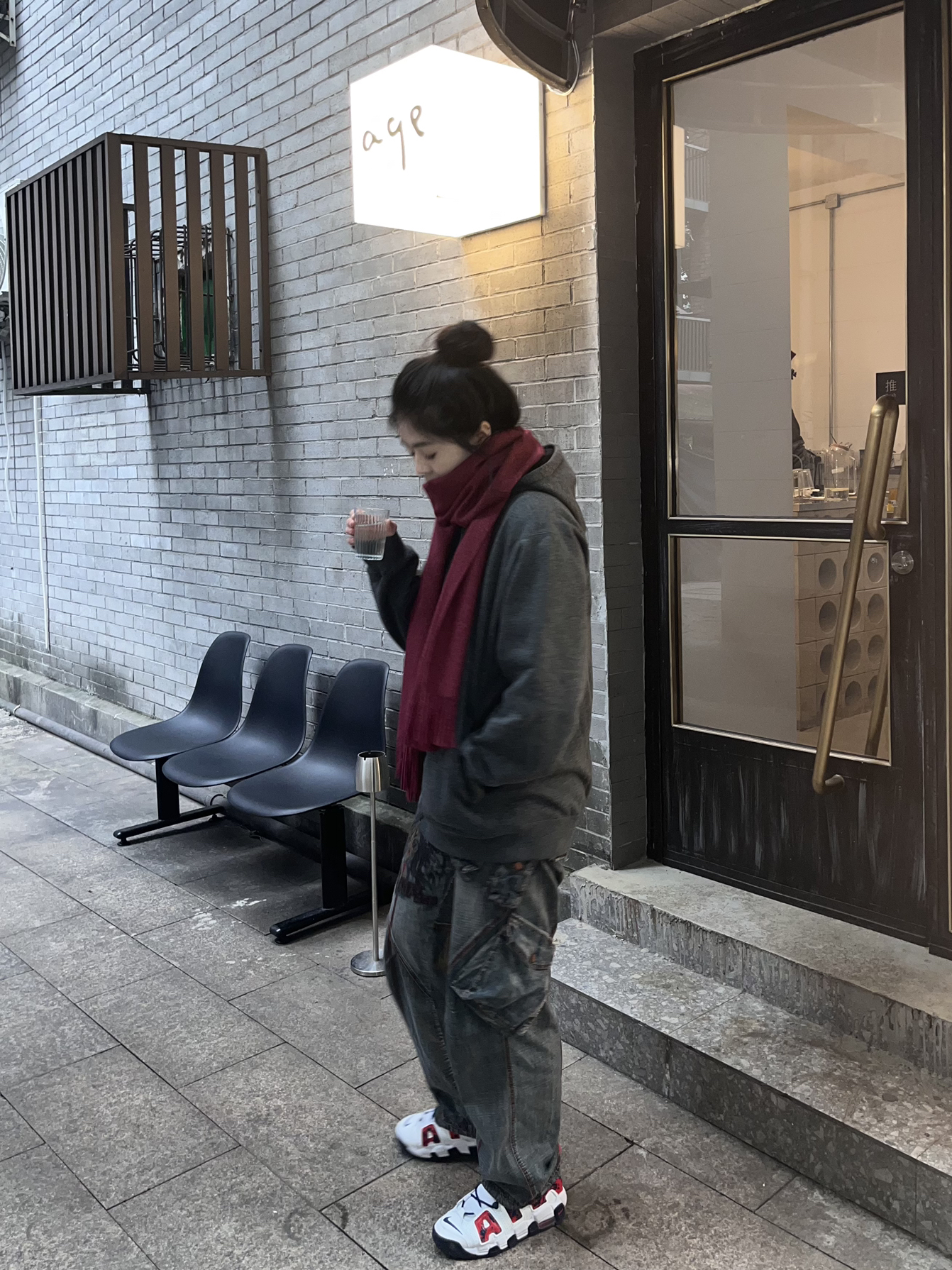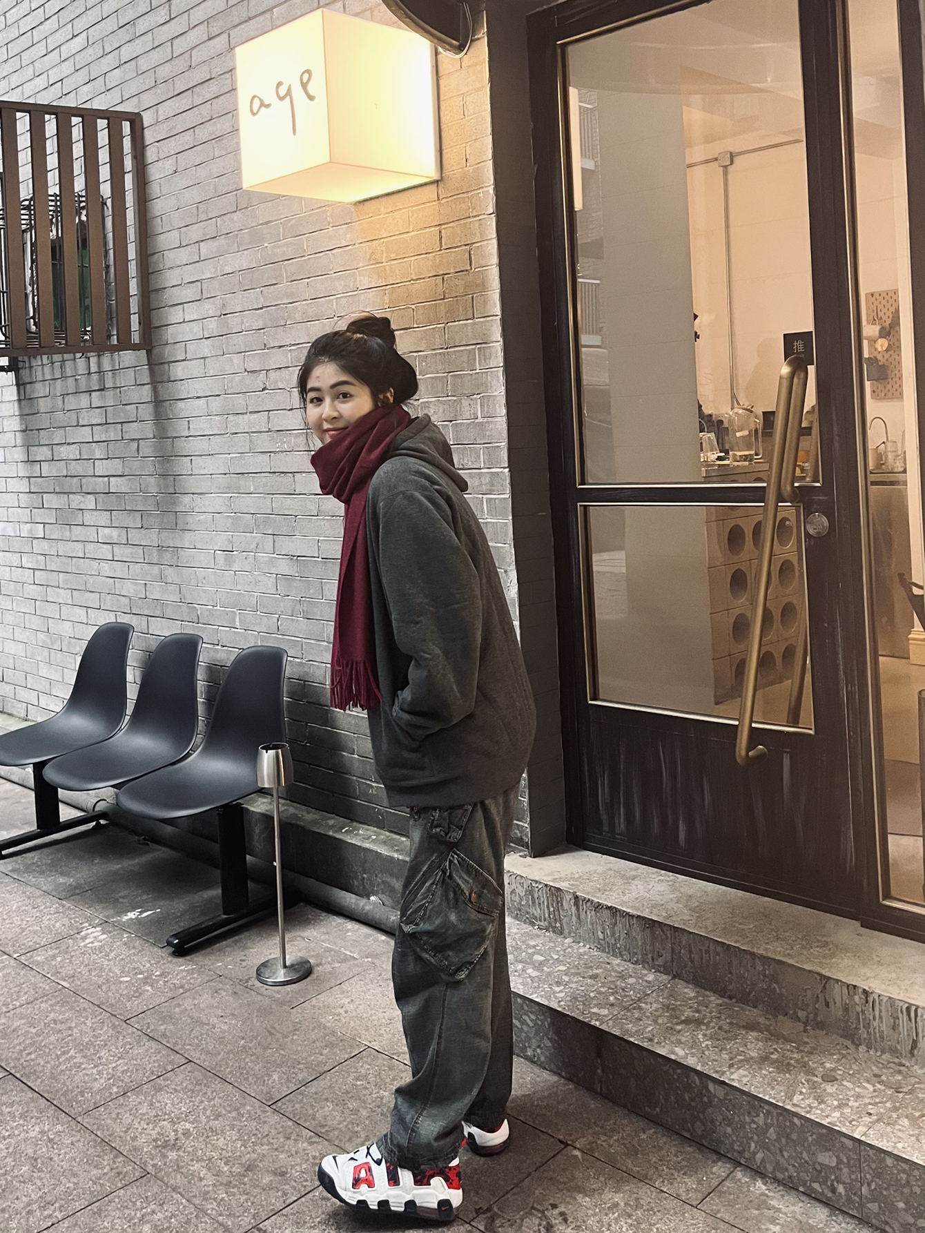 杨杨升高170 体重134 冬天戴个围巾真的好暖和哦~而去看上去也很慵懒的感觉。 今天这一套look整体颜色偏暗,然后围巾是一个点睛之笔!整个穿搭看上去就非常的慵懒但又有新年的感觉! 外套是前两天去优衣库买的,单看会觉得平平无奇,但是一上身真的有被惊艳到了,就是一整个慵懒住了!