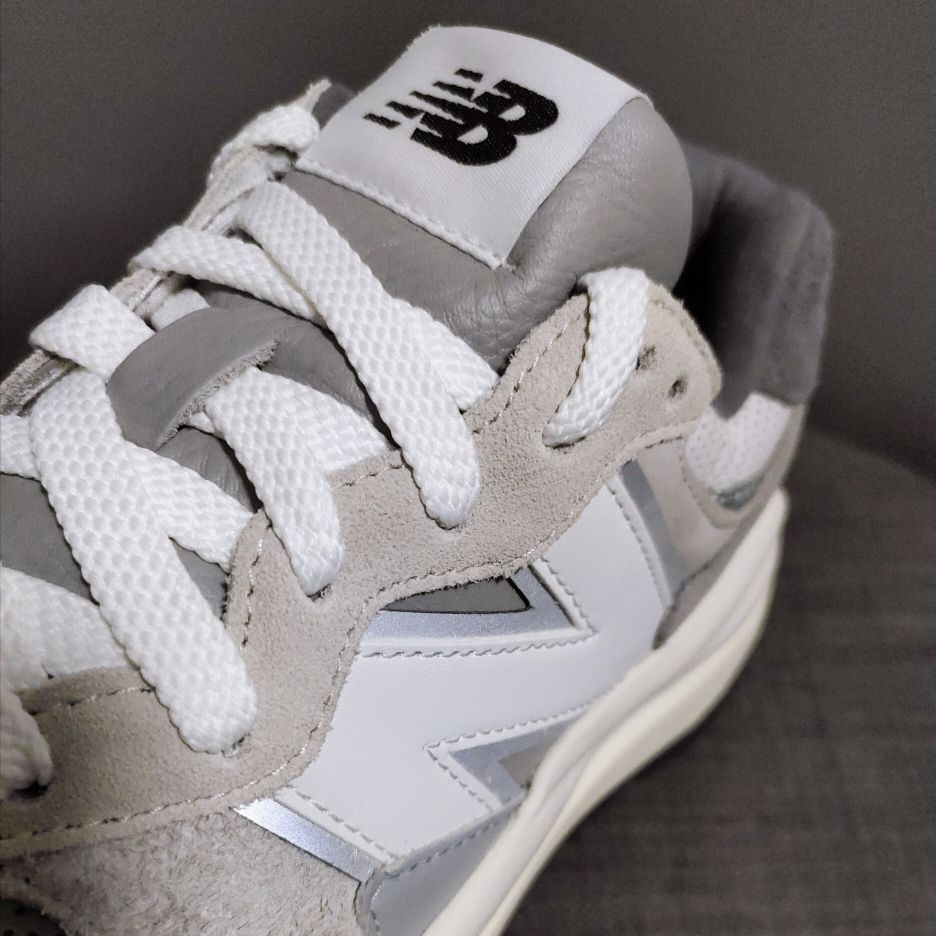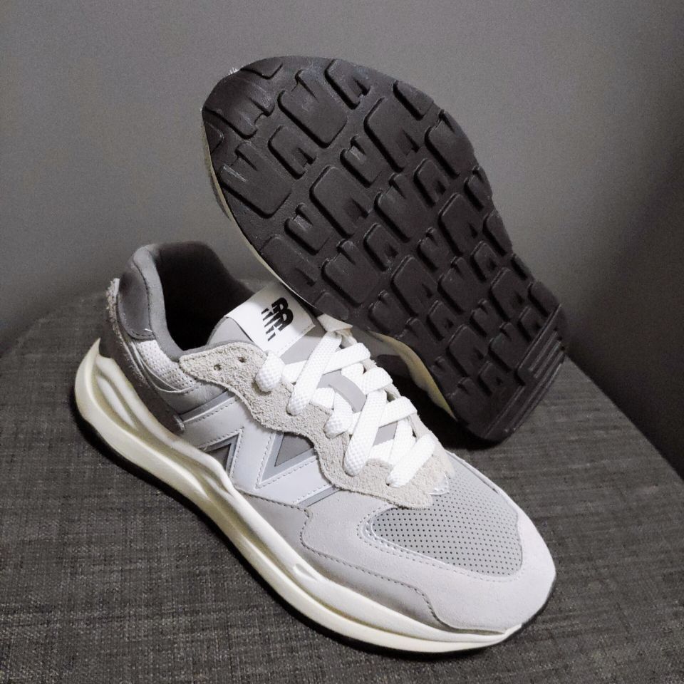 👟球鞋名称:newbalance 57/40灰白 🔍分享理由:2021年最喜爱的老爹鞋没有之一,早在纽百伦复刻推出这双57/40之前我最爱的老爹鞋款其实是yeezy 700,但是这双鞋的出现让我对这个品牌重新另眼相看了。 🤔整体感受:首先鞋身采用多种灰色材料拼接而成,长绒麂皮,短绒麂皮,光面皮,打孔软皮,以及3反光皮质,左右叫鞋头才用不对称式设计左脚长绒右脚短绒,配合双密度中底以及汽车轮胎般粗...