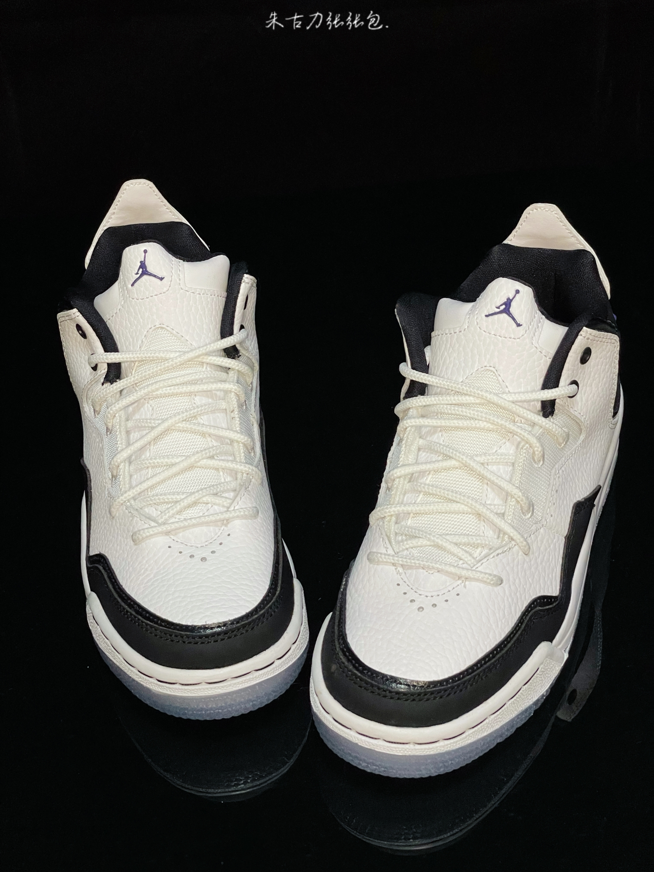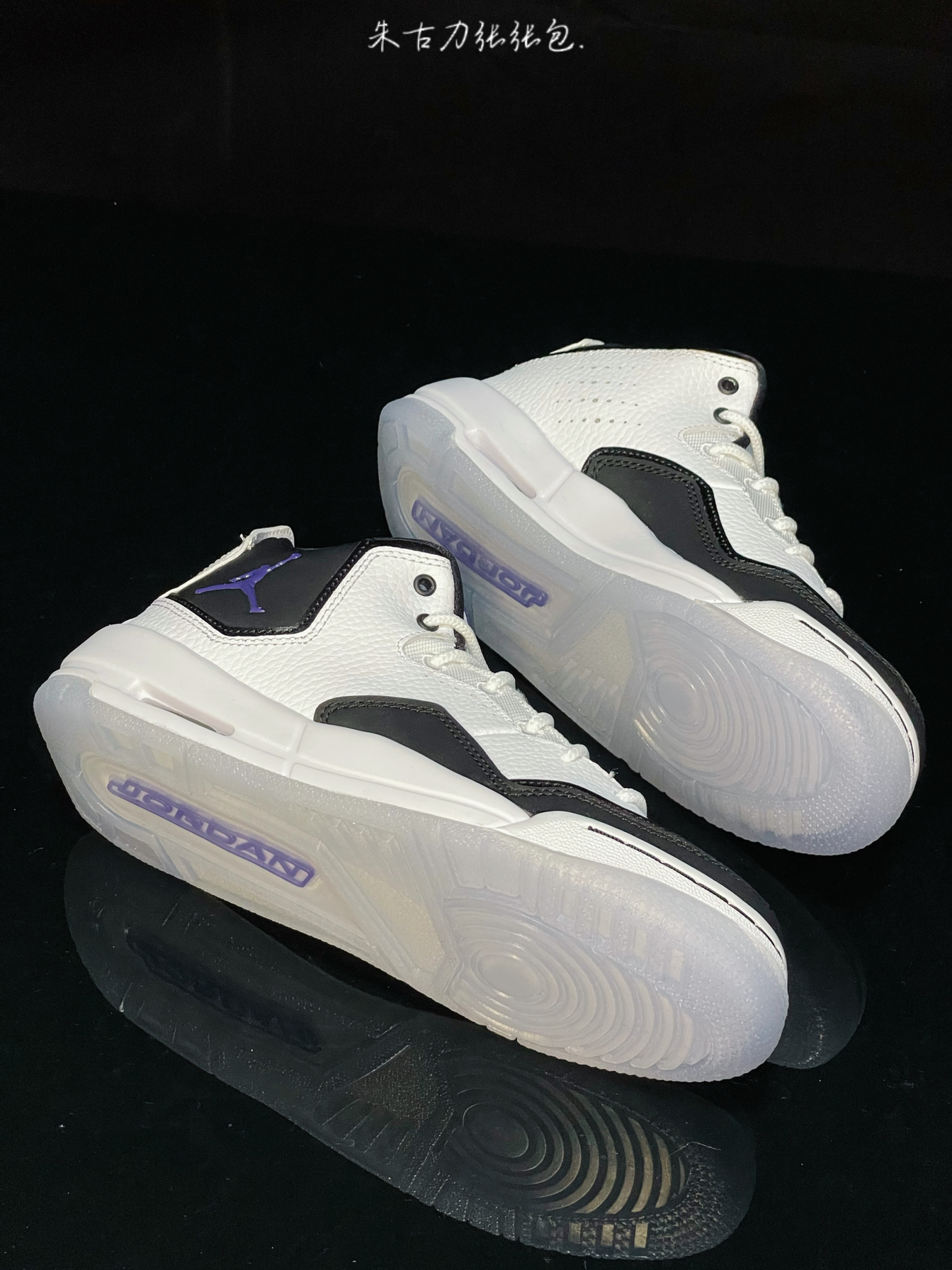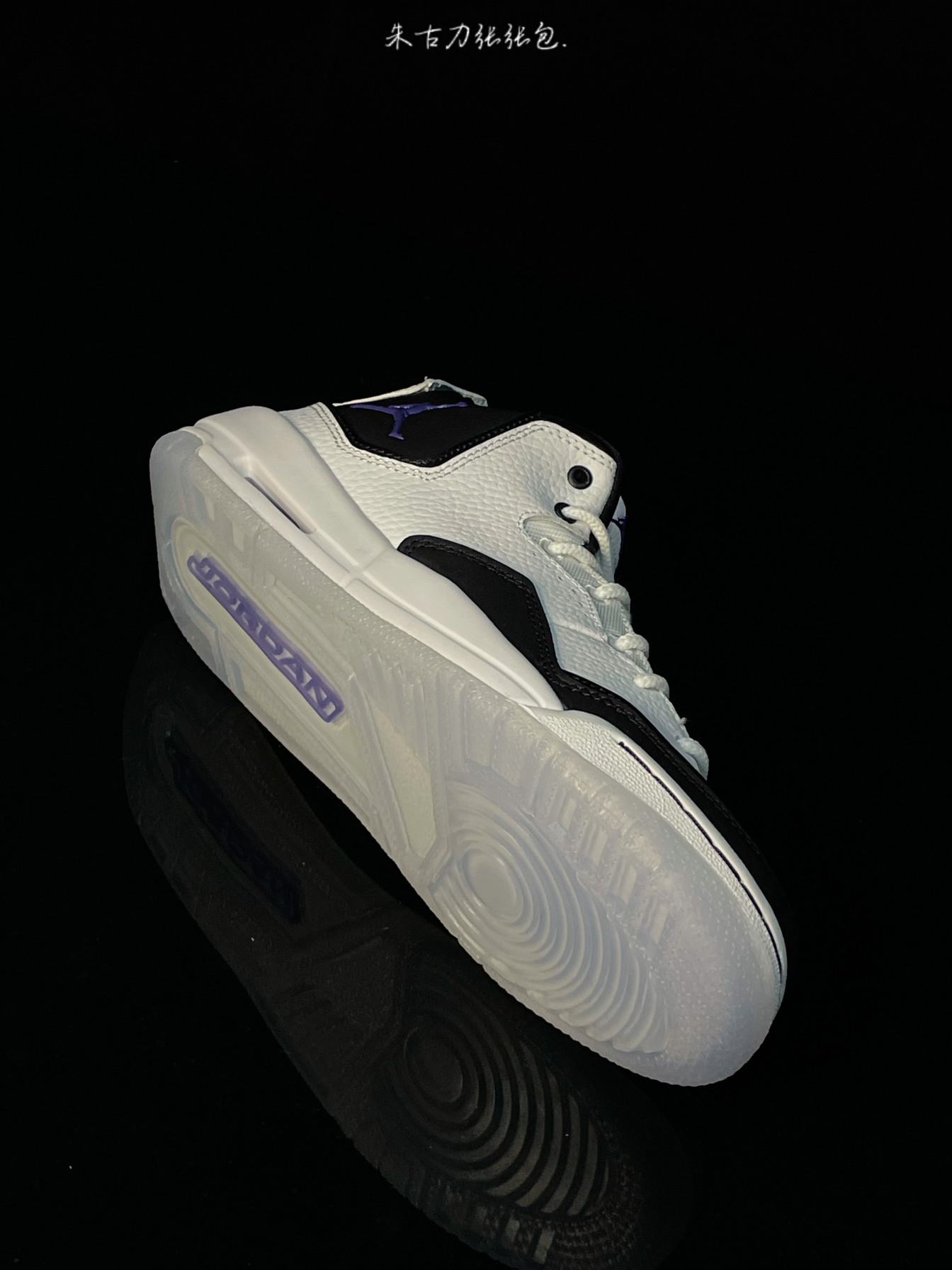 Air Jordan Courtside23 黑白 Concord 鞋身采用白色为主,还加上黑色点缀,配色是清新百搭又大方,鞋舌、鞋口处是黑色,鞋舌logo、鞋外侧带有紫色飞人logo,后跟提啦带 中底带有Air缓震,上脚感还是不错的,搭配水晶底,好看又耐穿,日常穿搭搭配运动裤、束脚裤等等很多都是不错的,价格合适,学生党可以冲!