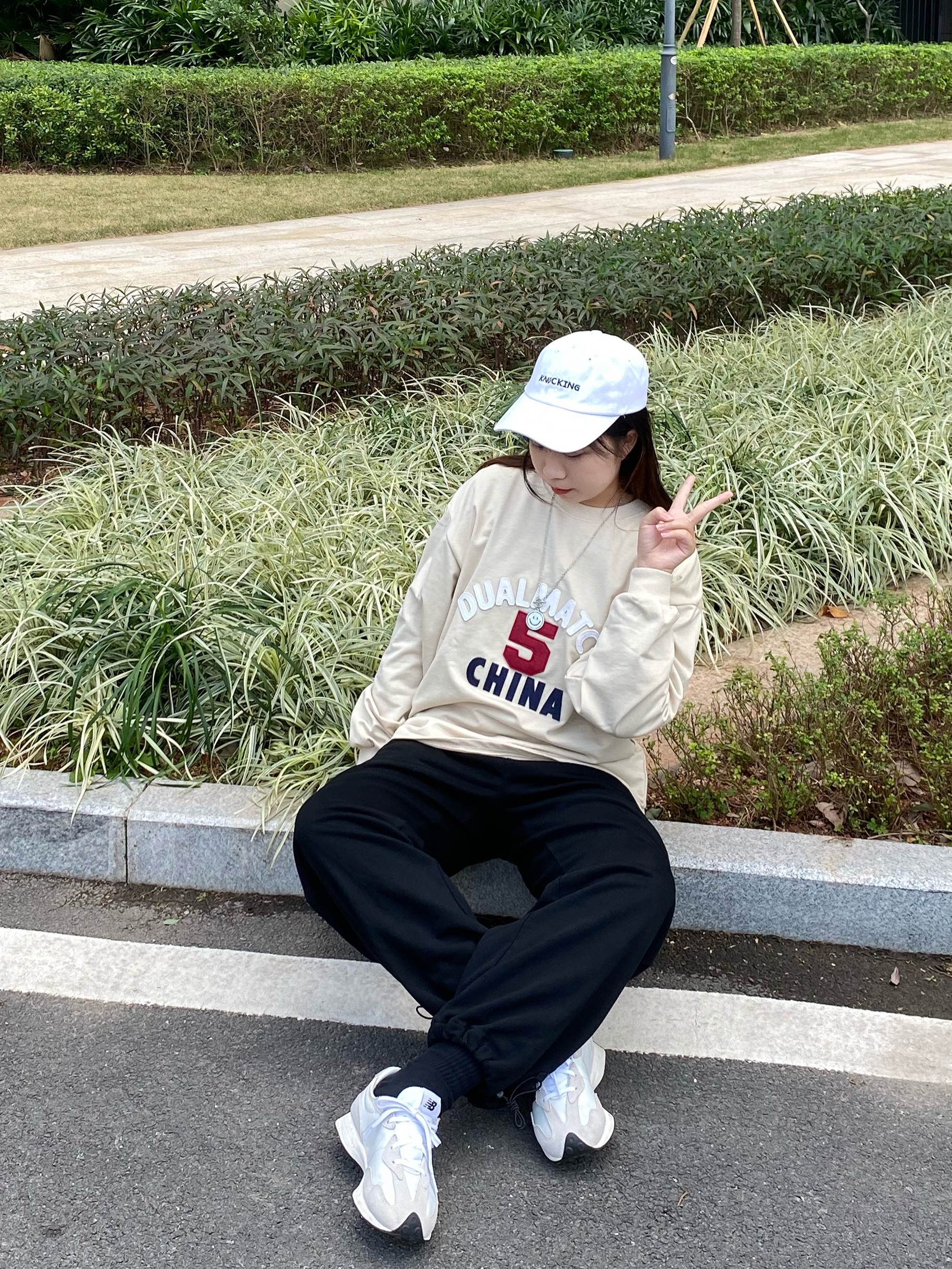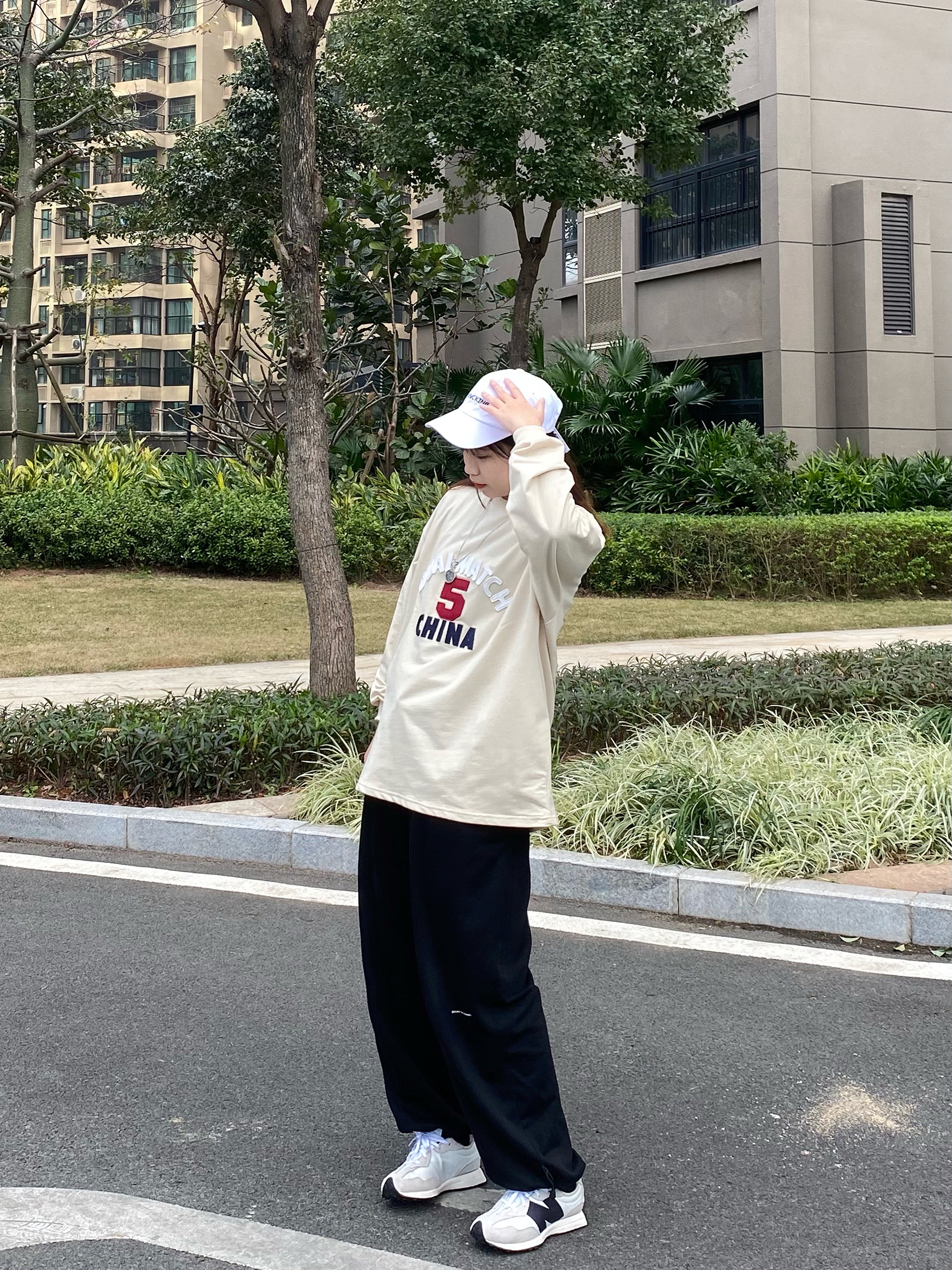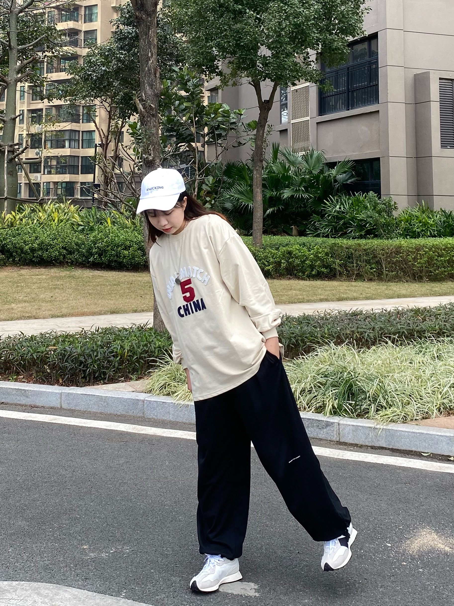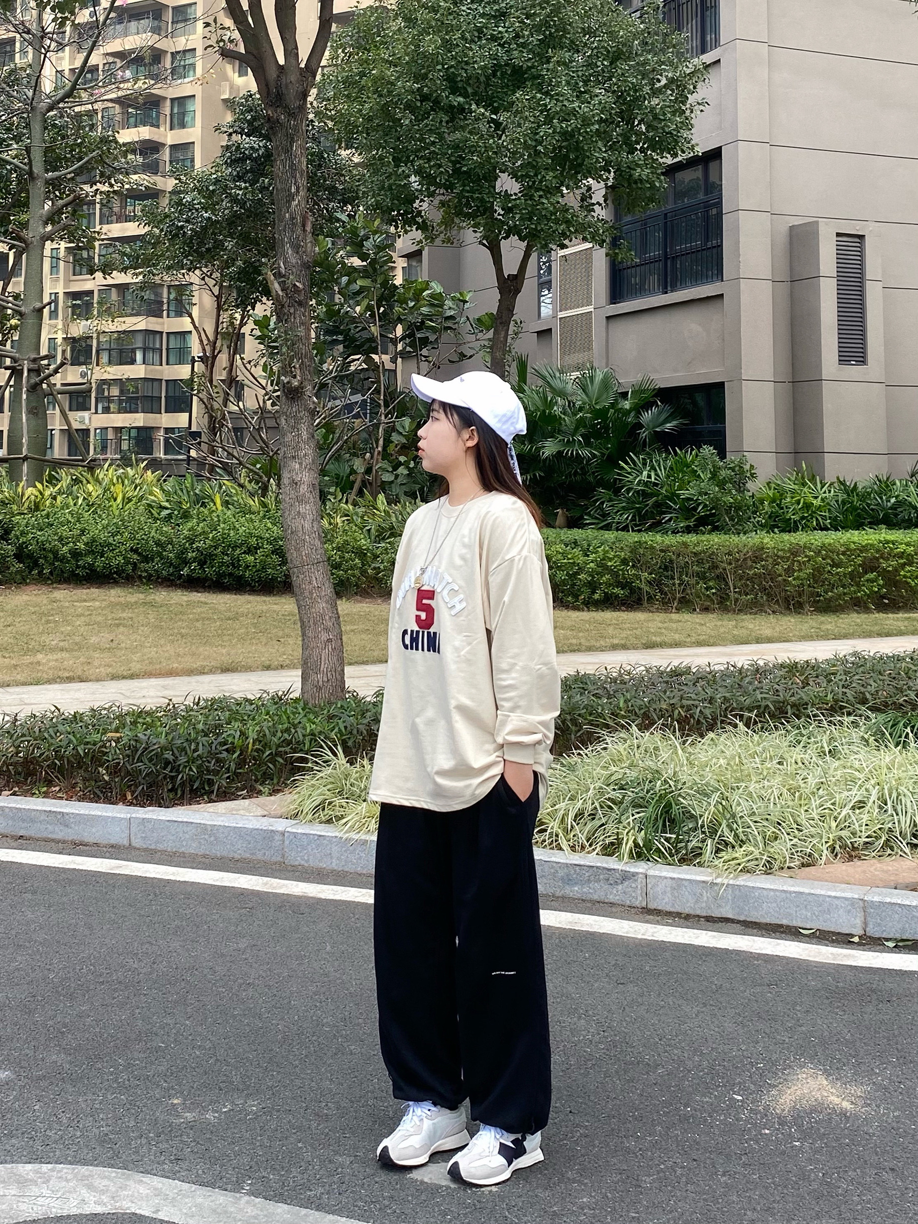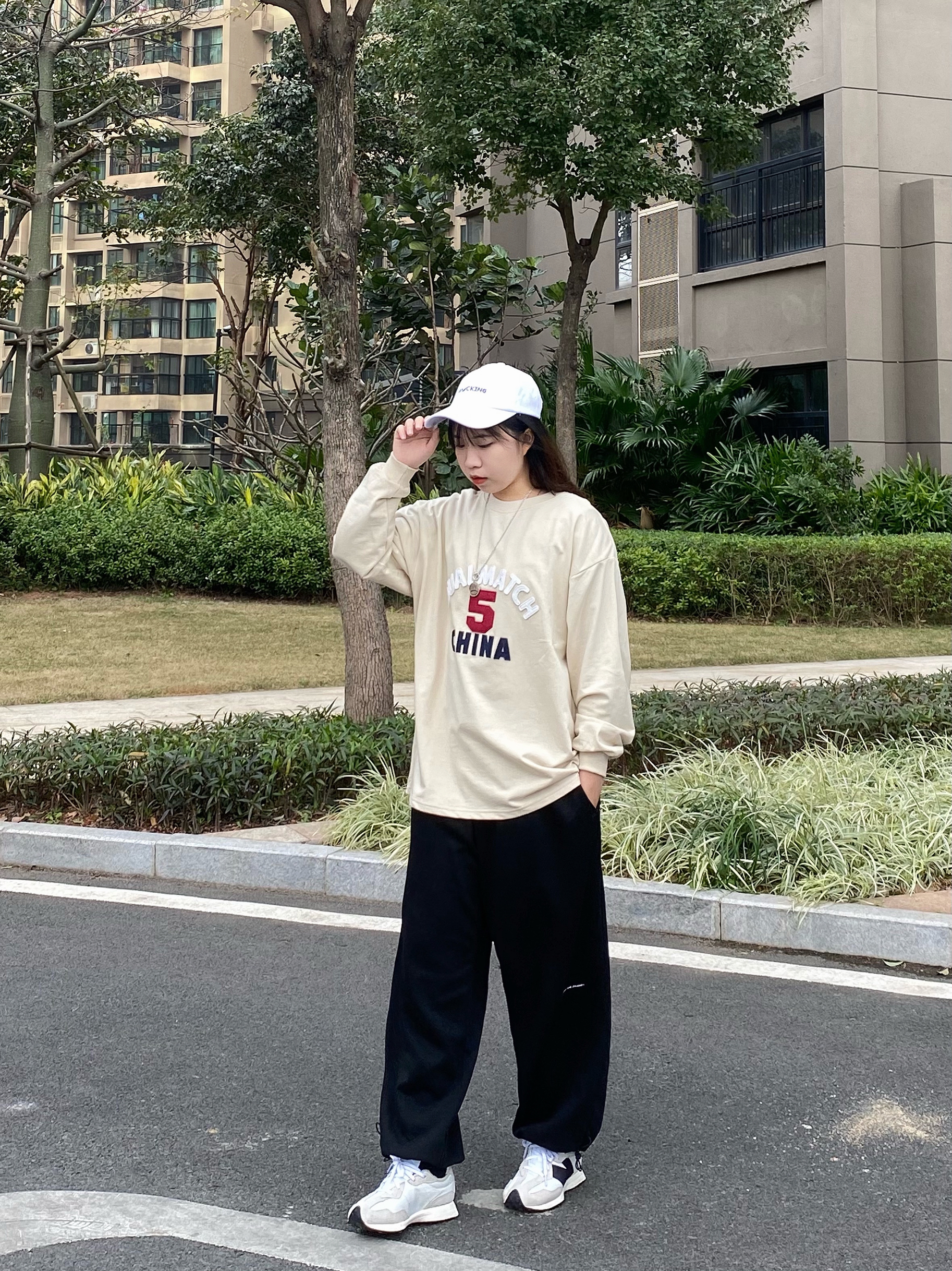 米色的百搭的基础版型的长袖 质感很好穿着很舒服 整体版型宽松拉长整体比例简约又不失细节 胸前的英文logo印花图案很有立体感,价格平价 值得入! 搭配一条万能百搭的卫裤 上身效果非常可 裤子的版型很正宽松很遮肉无论是面料还是做工都是非常赞 纯棉面料一年四季都能穿 很舒服贴肤 黑色怎么搭配都不会出错 日常出行都是很可的哈 /🔍 👔:LSAGE线上商店 👖:ATHY 👟:new balance