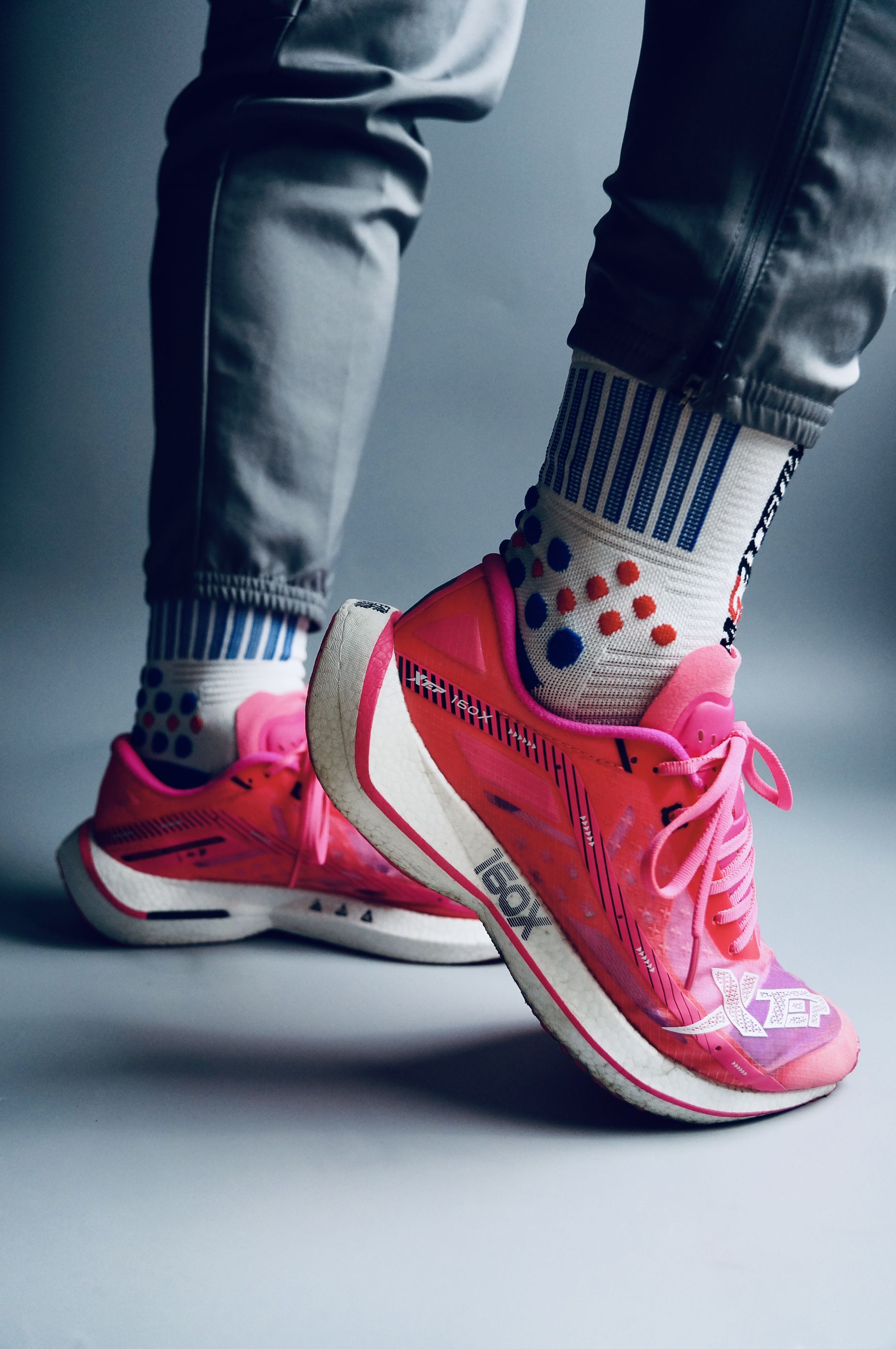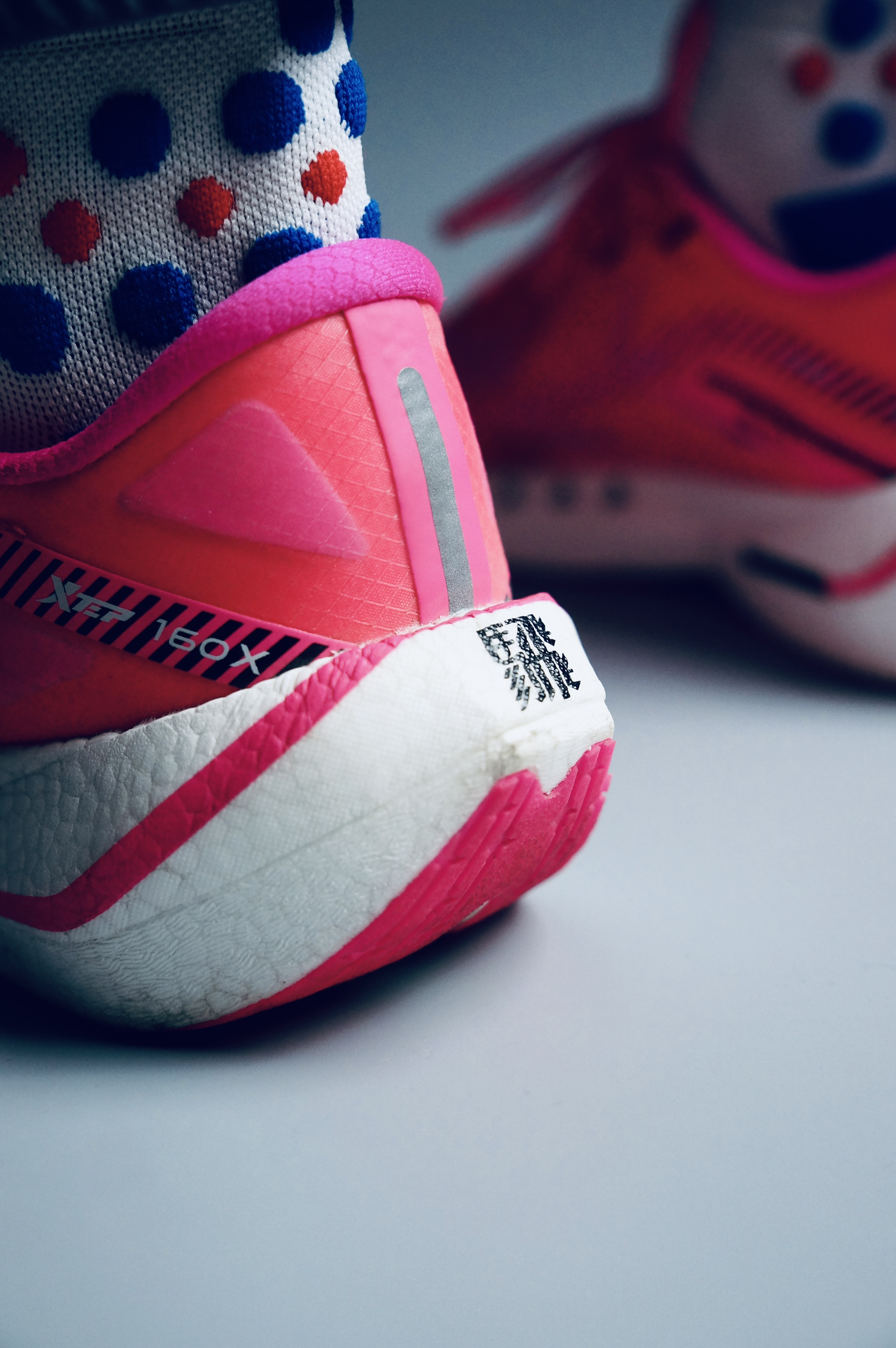鞋款名称👟:特步 竞速160X2代 碳板马拉松 跑鞋 玫红 整体细节👀:整体玫红配色,非常亮眼,鞋面采用了Mono纱材质,轻薄透气,鞋舌上有“国人竞速”4个字,配有一副动力巢PB材料鞋垫,还有一副EVA材质鞋垫可供替换。 科技配置:中底采用了全掌镂空碳板+中底动力巢科技,中底的厚度增加,有出色的缓震效果和抢进的推力。 个人感受:这是一双适合有一定实力的跑者穿着的跑鞋,尺码选择上鞋款偏大,脚不...
