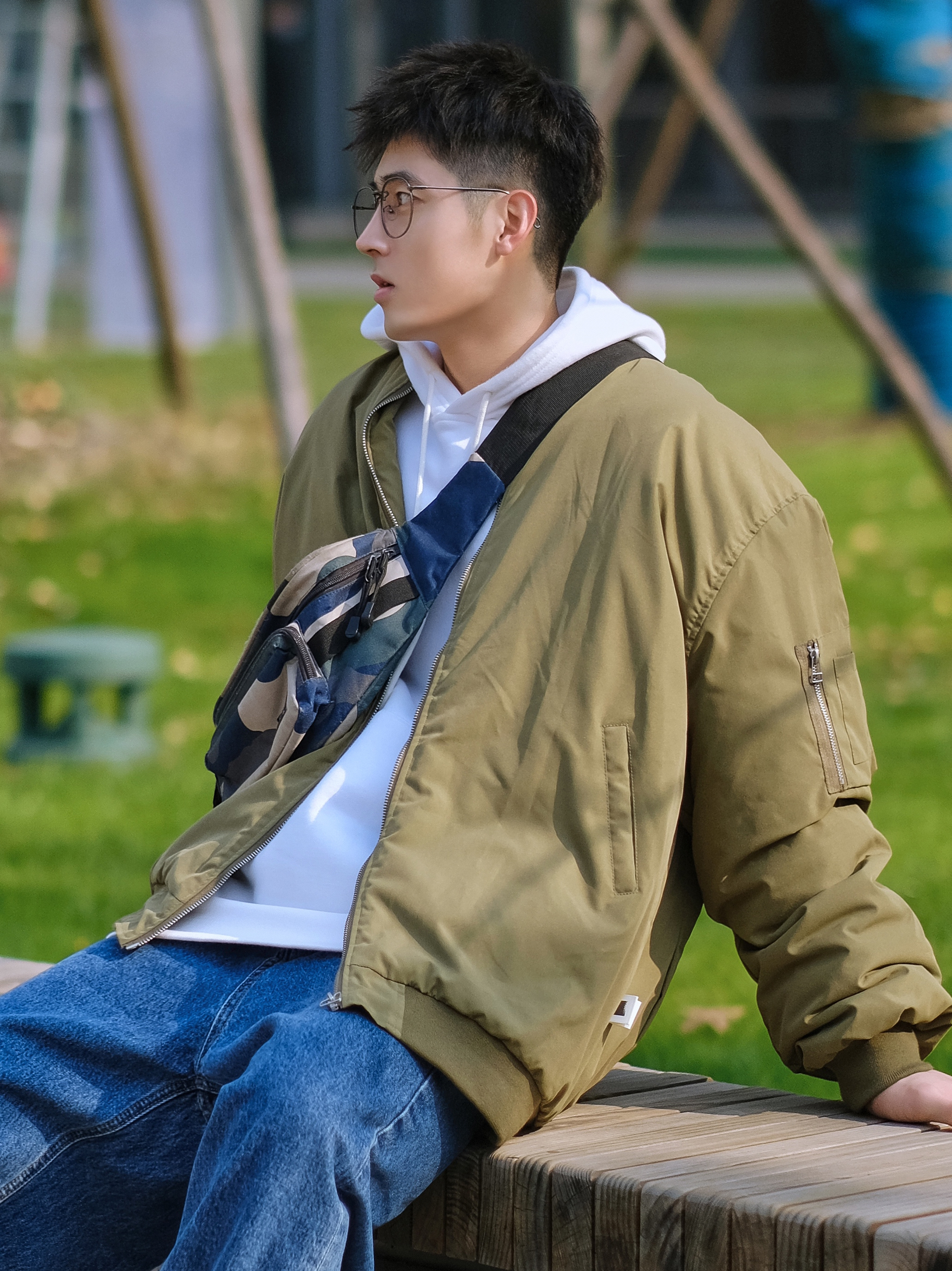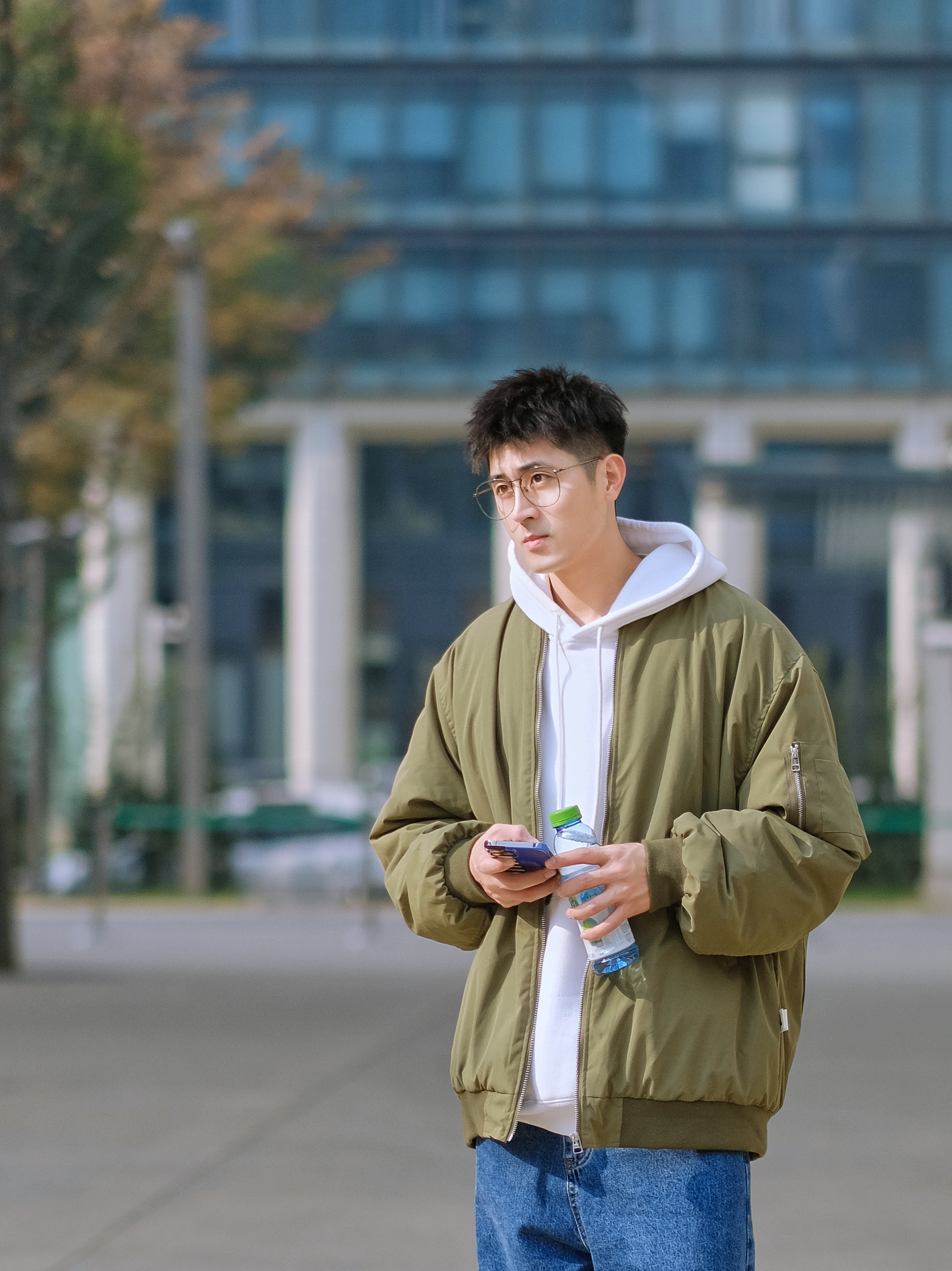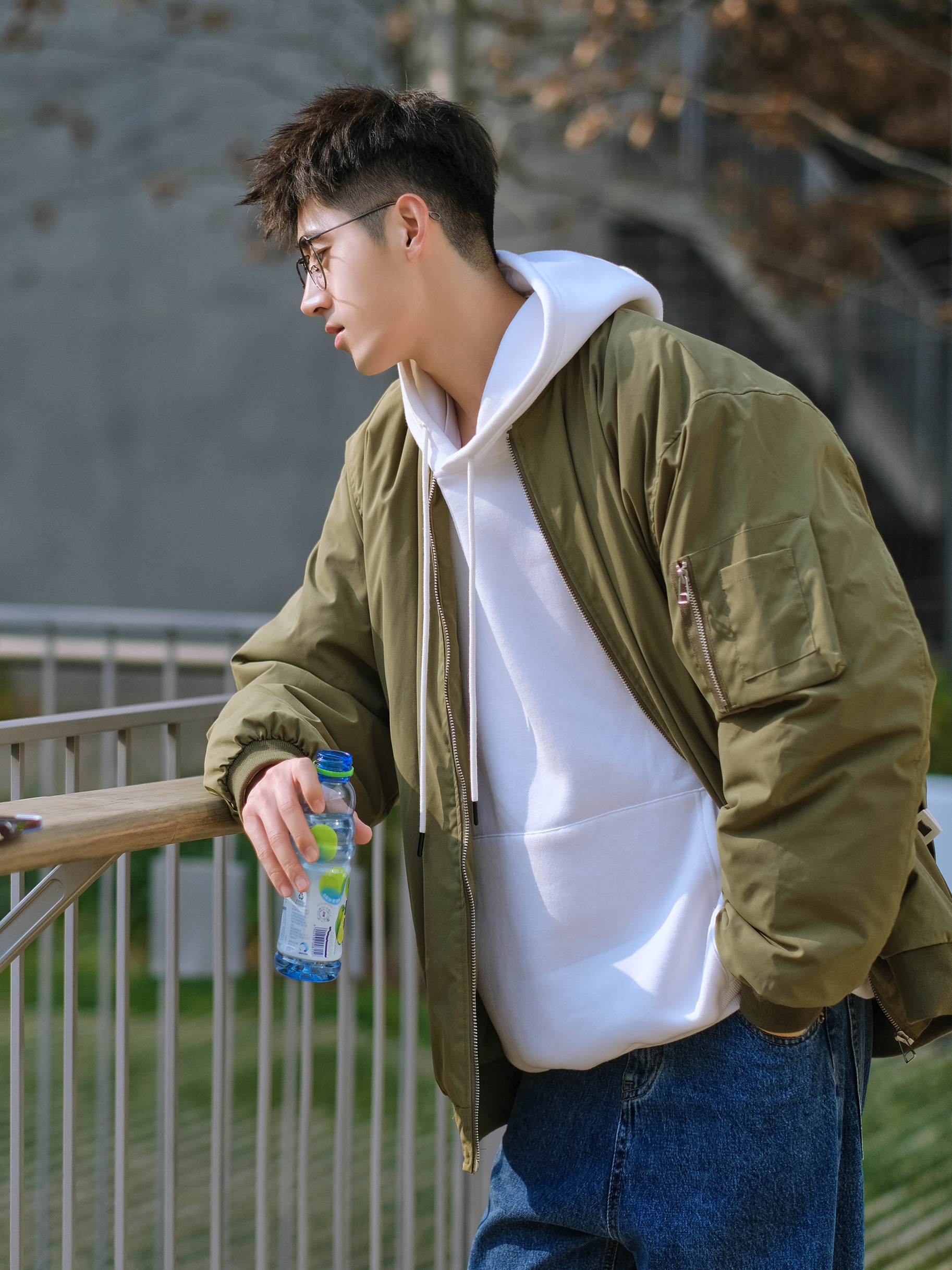 🔹今日份少年感叠穿混搭,选择了军绿色棒球外套,叠穿白色连帽卫衣,上下绿色和蓝色撞色搭配,选择了学院蓝牛仔直筒裤,再来一双复古跑鞋NB993,就可以帅气出街了咯,适合男生冬季穿搭,当然也适合男生新年穿搭。 — ⚠️本人身高|体重:176CM|66KG(🉑️参考) — 👔·军绿色棒球外套—PD大人; 👖·学院蓝牛仔直筒裤—DONTSTOP; 🧦·白袜—LARGEE; 👟·元祖灰复古跑鞋—NB993;