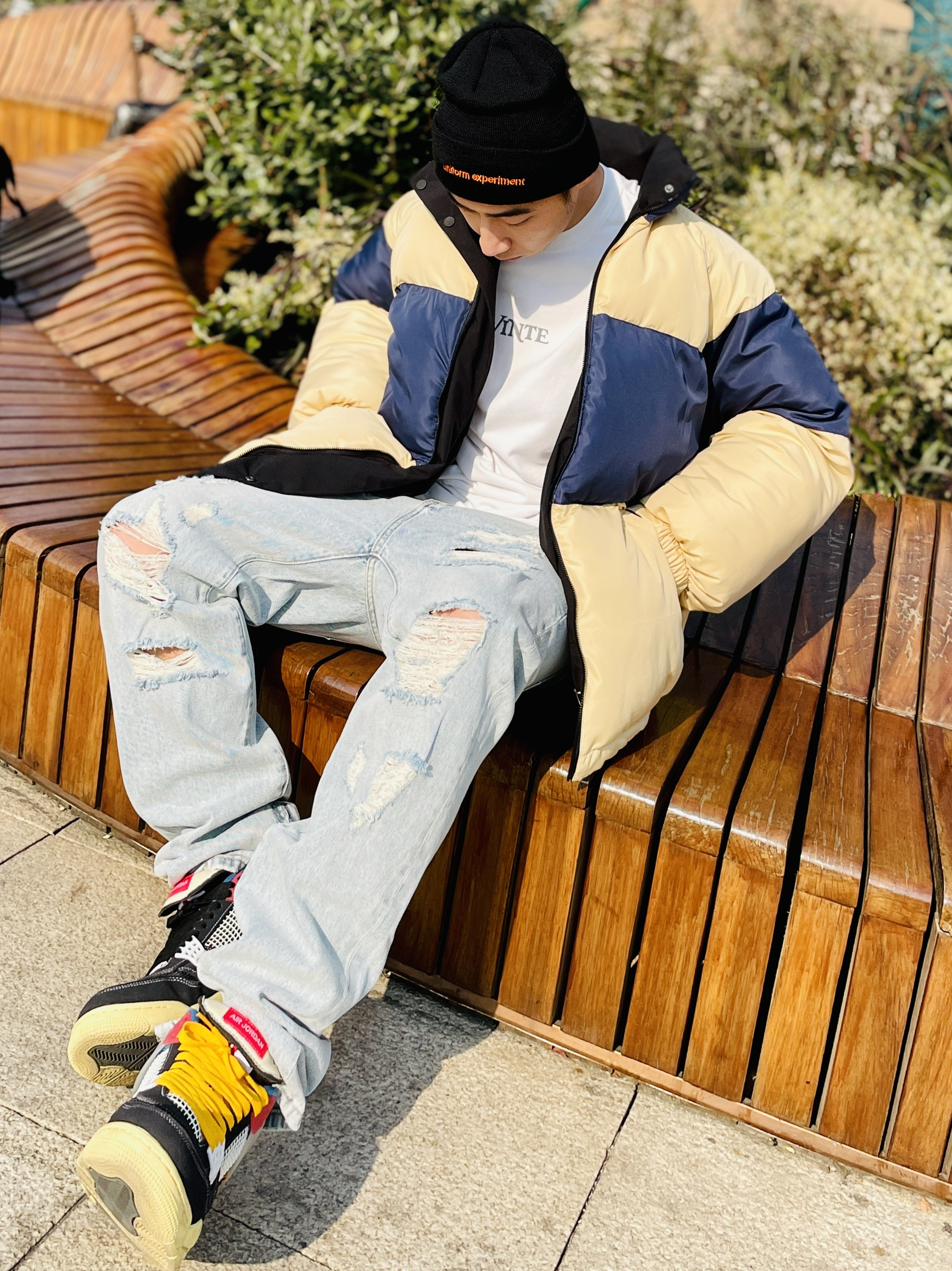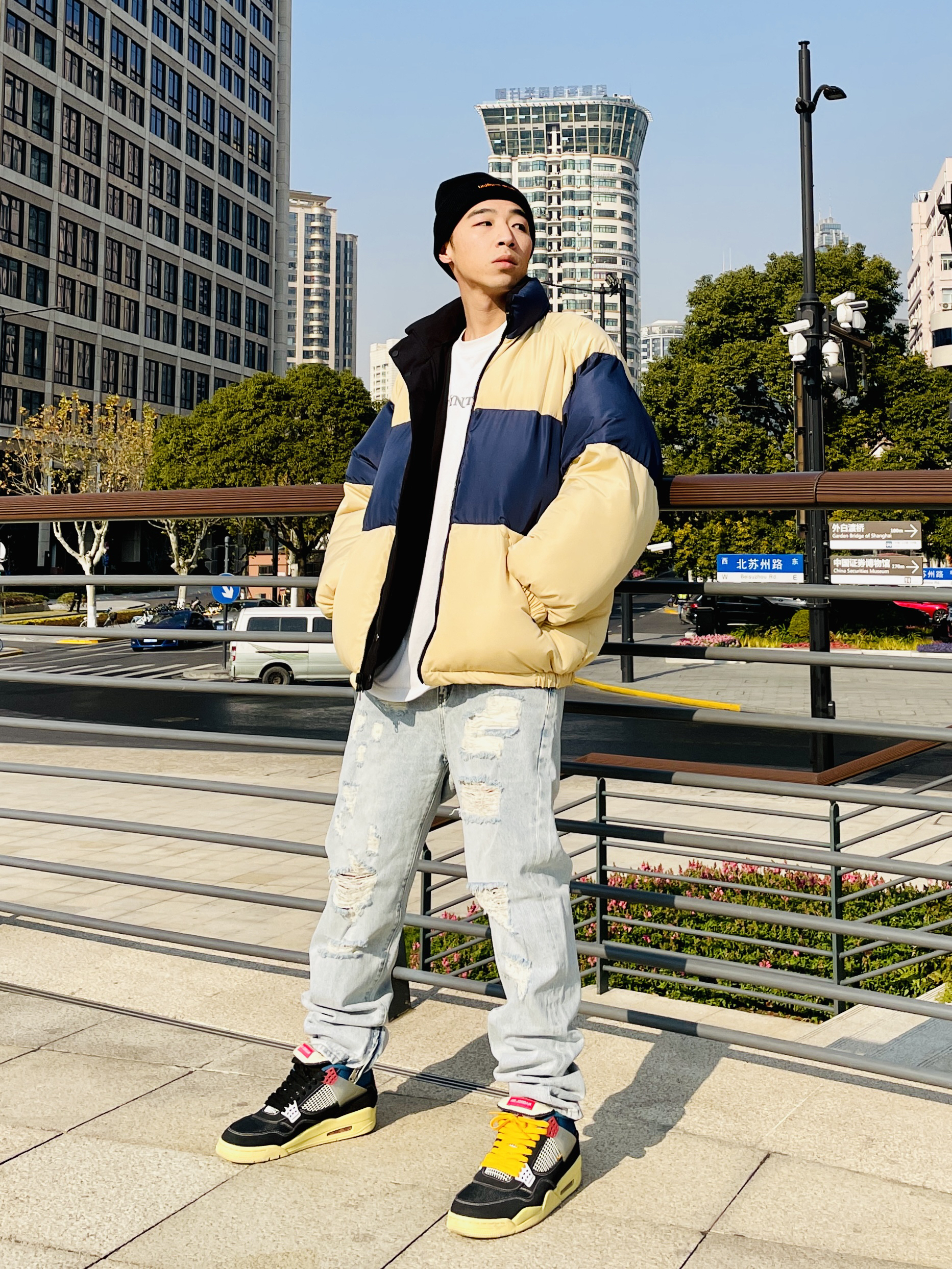 # 182 | 68kg 丶 随性穿搭 丶 喜欢色彩也喜欢基础简单~ 惯用的老规矩~跟着球鞋配色来穿搭~ 真的是屡试不爽~特别是对于色彩丰富的球鞋~ 基础黑白灰或者卡其裤牛仔裤~ 无不例外都能简单搭配~ 上身和配件选择鞋款中有特点的配色妥妥拿捏~ 👟 ~ 秋冬真香好鞋~ UnionxAJ4 辨识度极高~极好穿的的一款好鞋~ 整双鞋的设计~鞋舌外翻最为经典~ 默认配置是使用缝线将鞋舌对半翻折 ...