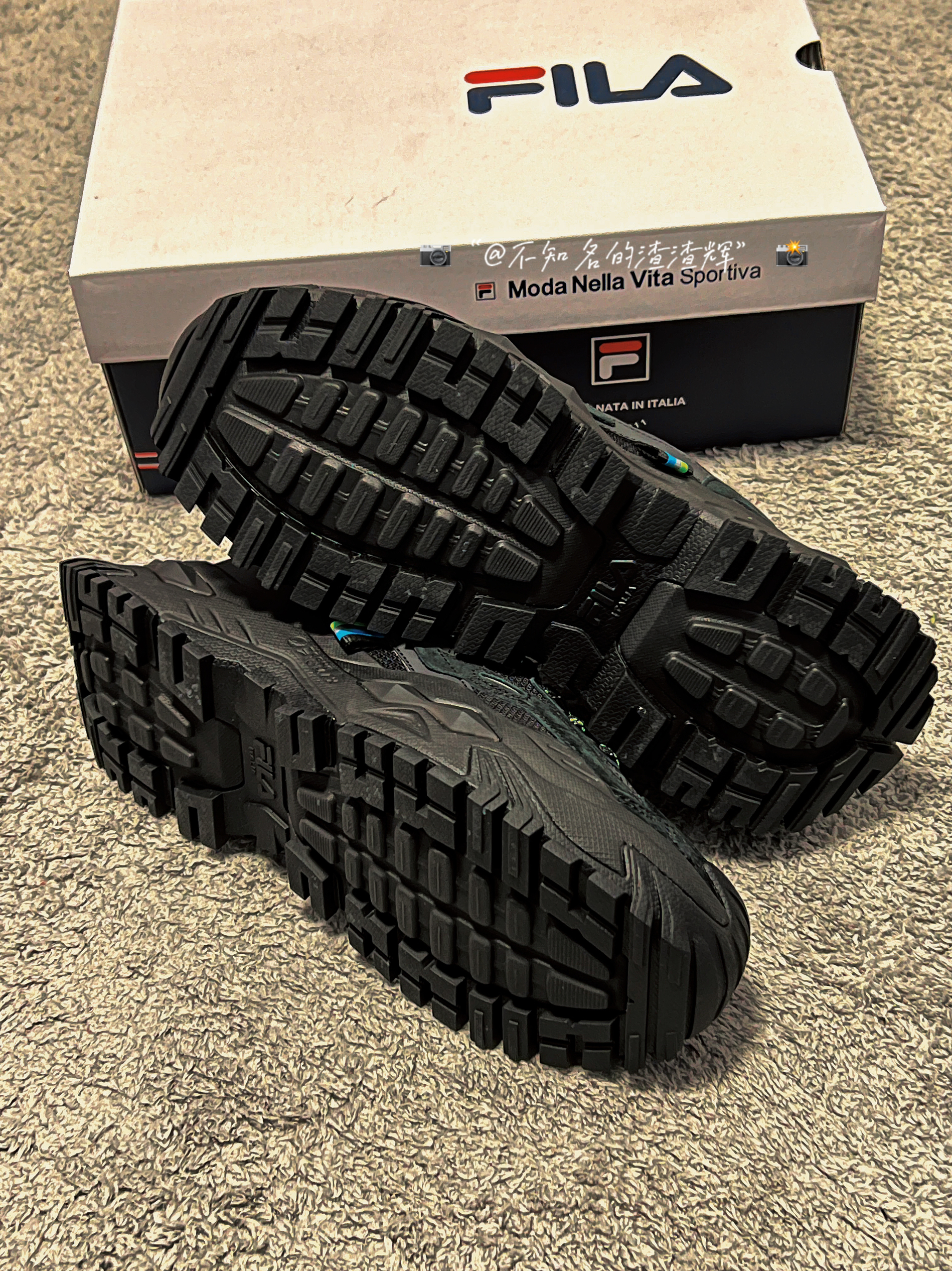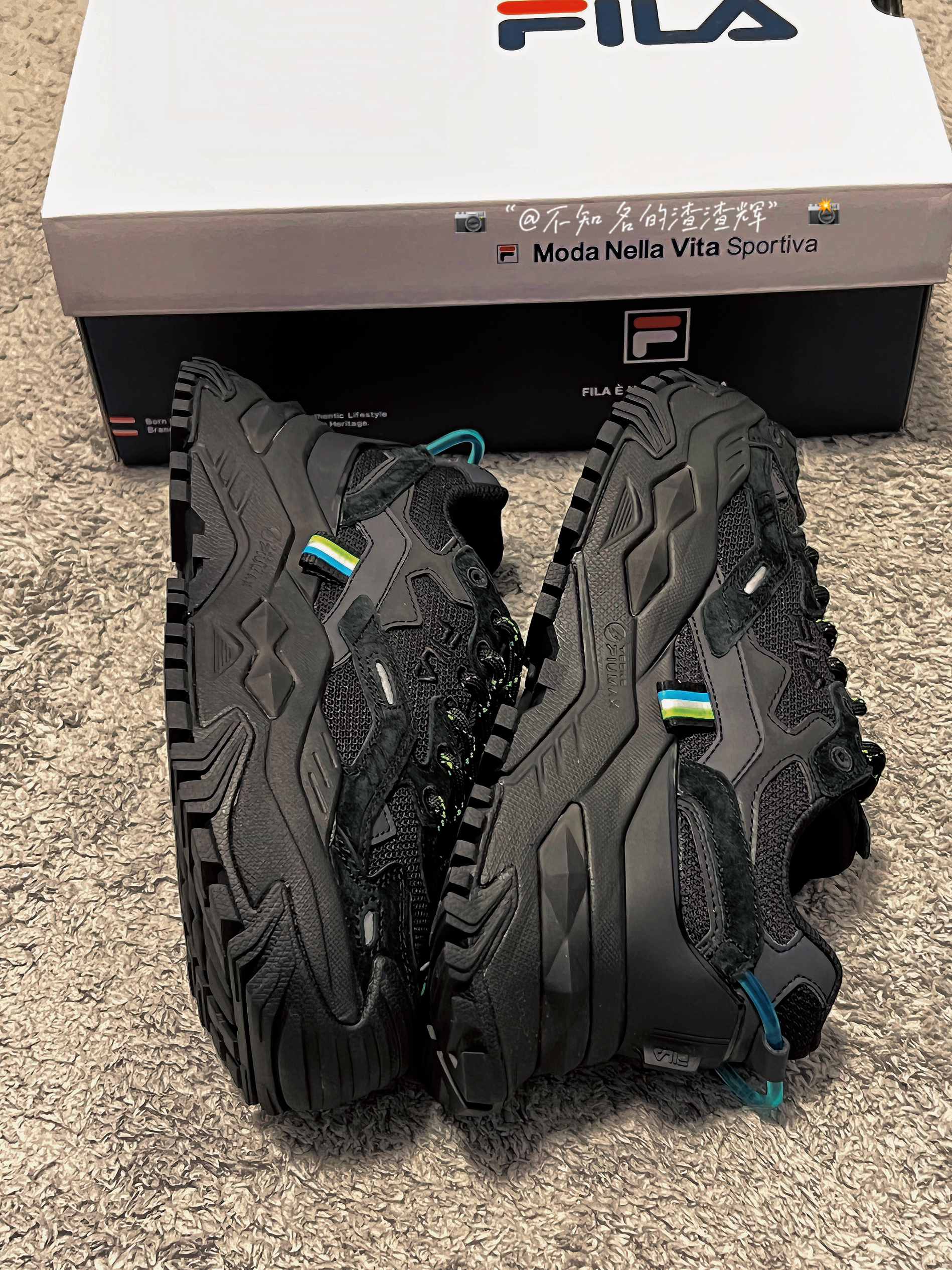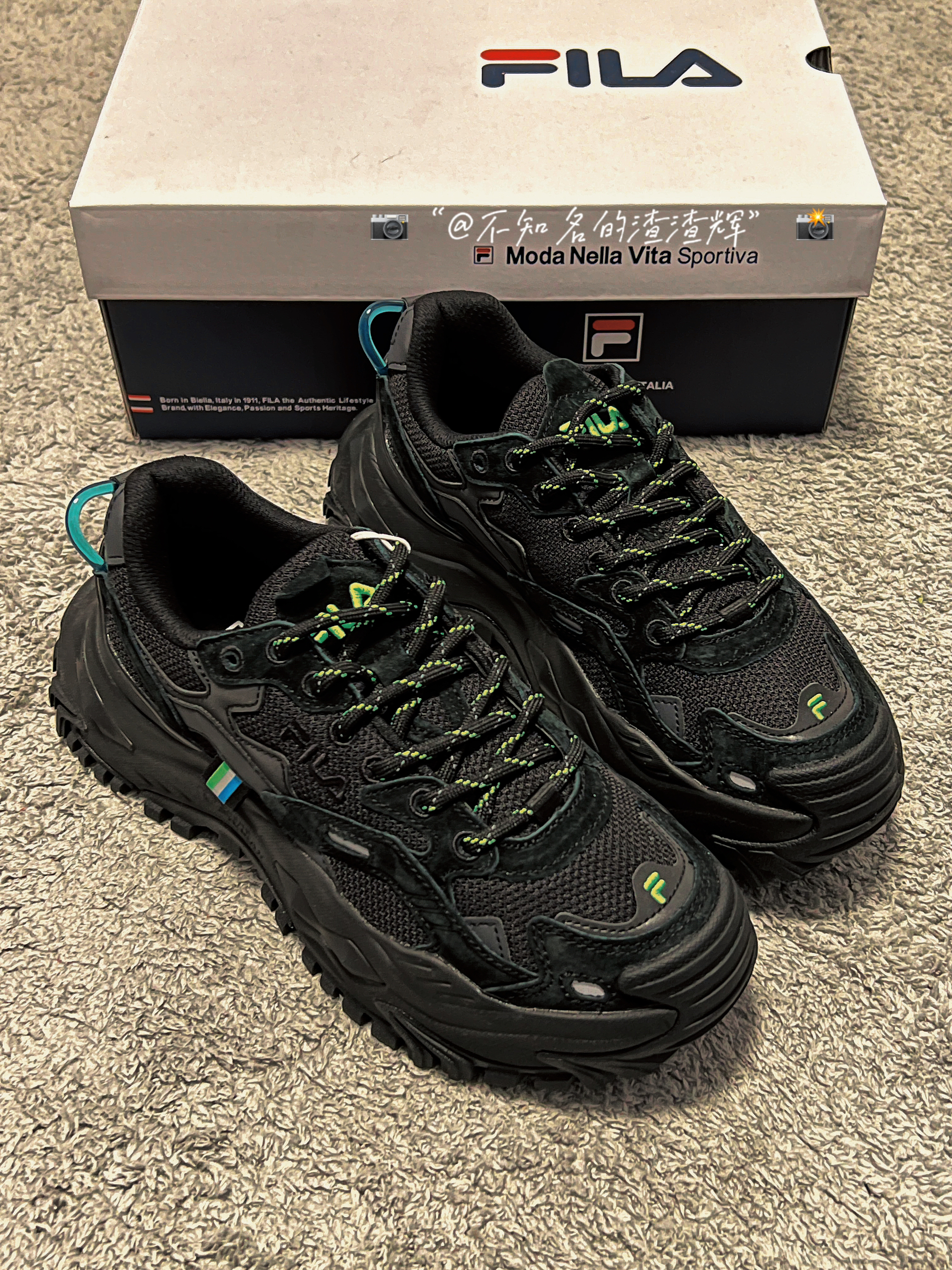 💫:Fila Fusion 斐乐潮牌 拼接硬糖老爹鞋 女款黑色 💫:这双鞋子主要以“黑色”为主,鞋带有着荧光绿色点缀,为鞋子增添了一些色彩感,非常大气耐看的配色,鞋面整体采用细腻绒面革➕网眼织物材质组成,细腻柔软,鞋身还有着“Fila”标志彰显身份,超厚的大底有着一丝镂空效果,增高效果无敌 💫:挺不错的一款老爹鞋,脚感舒适,增高效果明显,而且好搭衣服 💫:尺码推荐:正常尺码