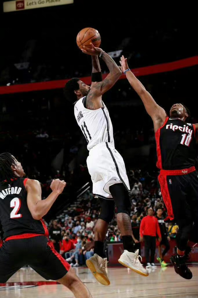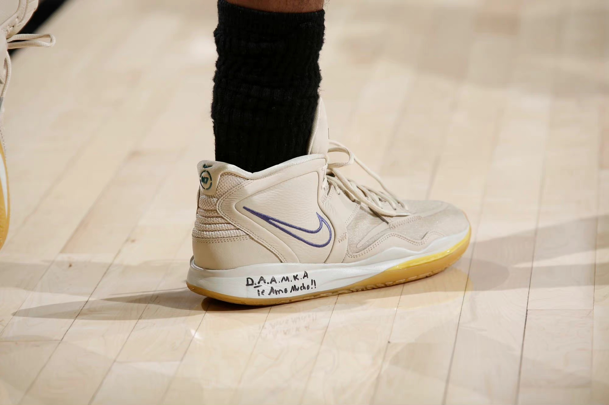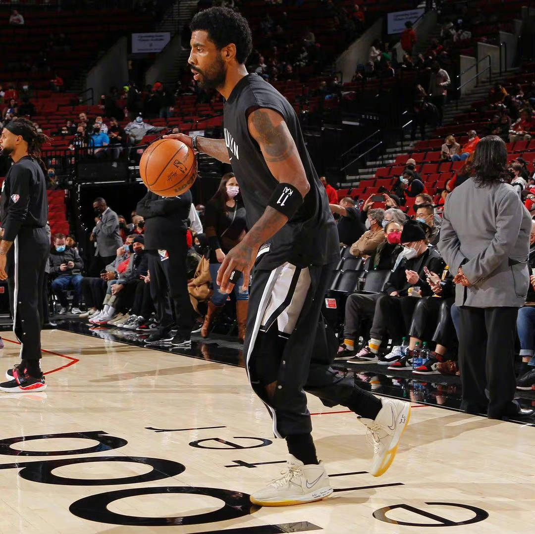 今日对阵开拓者的比赛中欧文第一次上脚了个人最新的签名球鞋