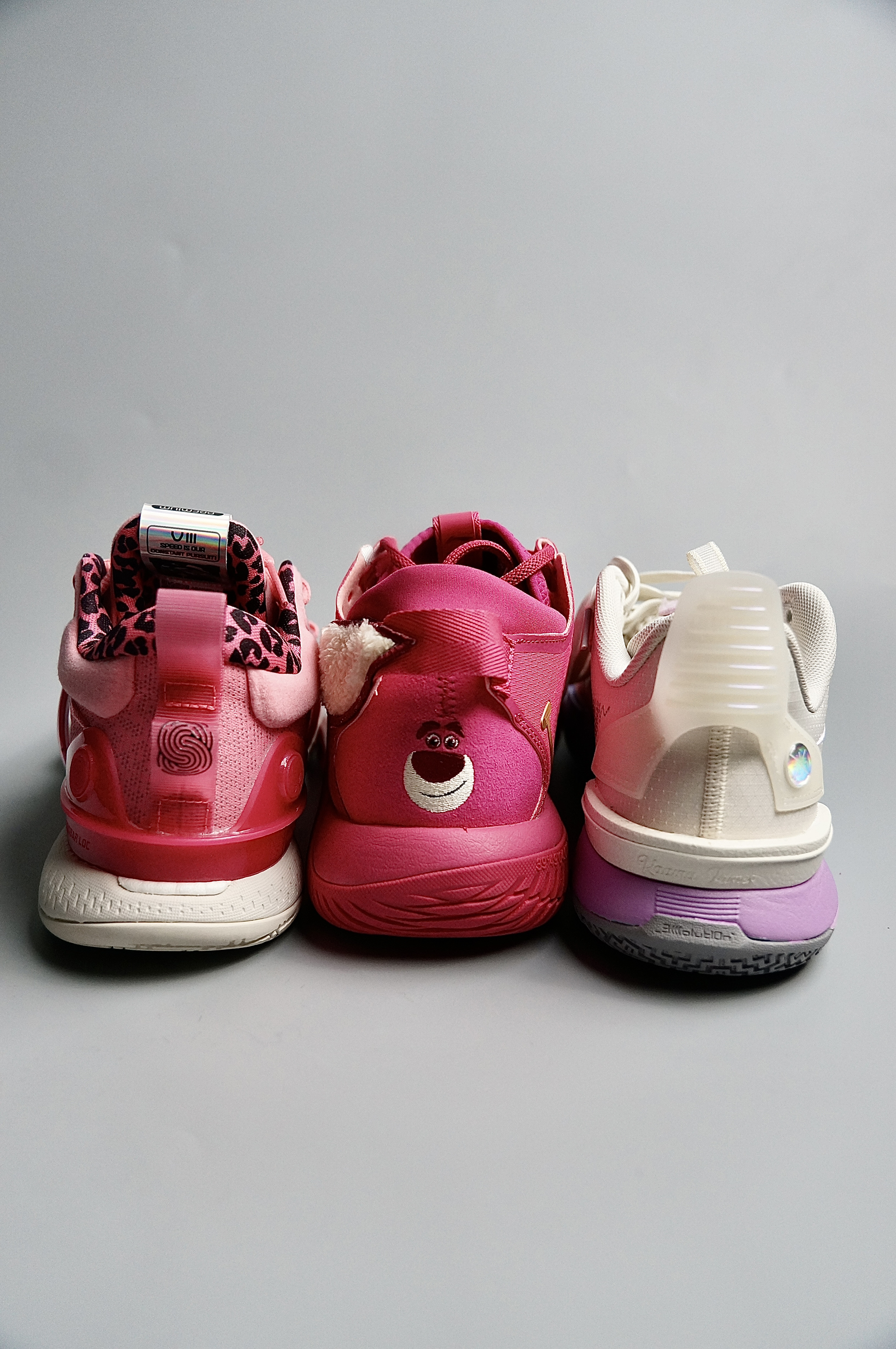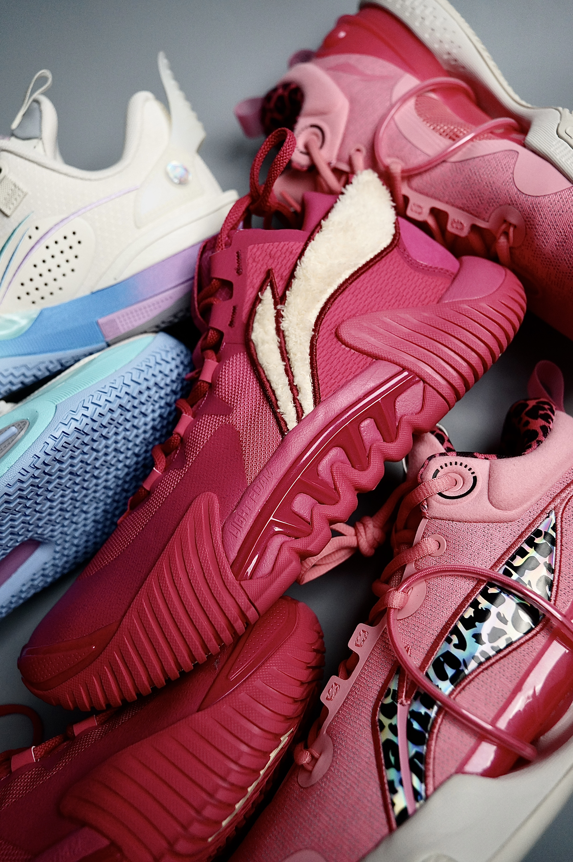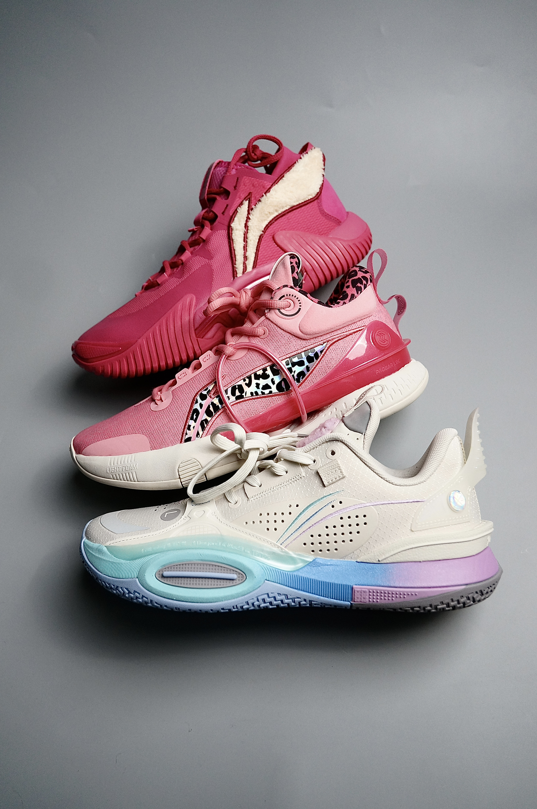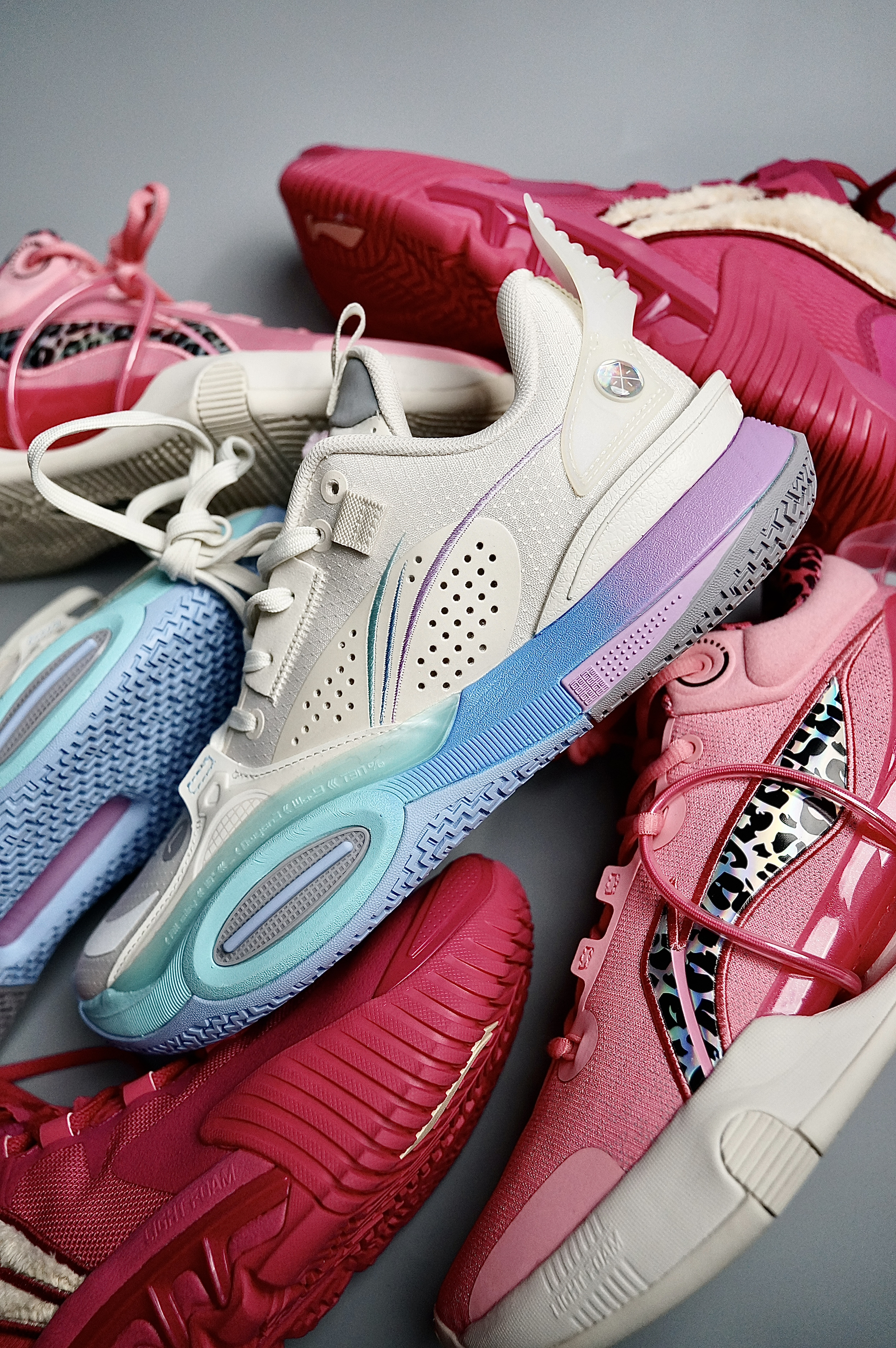 近期特别喜欢一些高颜值配色的实战鞋,都是一眼望去就能有很高的辨识度的鞋款 1.李宁全城10棉花糖:做为最后一糖,颜值上真的是一如既往的高从外观上整体鞋子的线条还是非常顺畅的,流线型设计的很棒,配色上采用了经典的棉花糖配色方案,在中底采用了蓝紫渐变的样式,左脚外侧TPU上还写着全城10和韦德的英文名,右脚则写着韦德三次总冠军的年份正好和鞋盒相互呼应。鞋面处分别有L和R两个标识,鞋面侧边的李宁log...