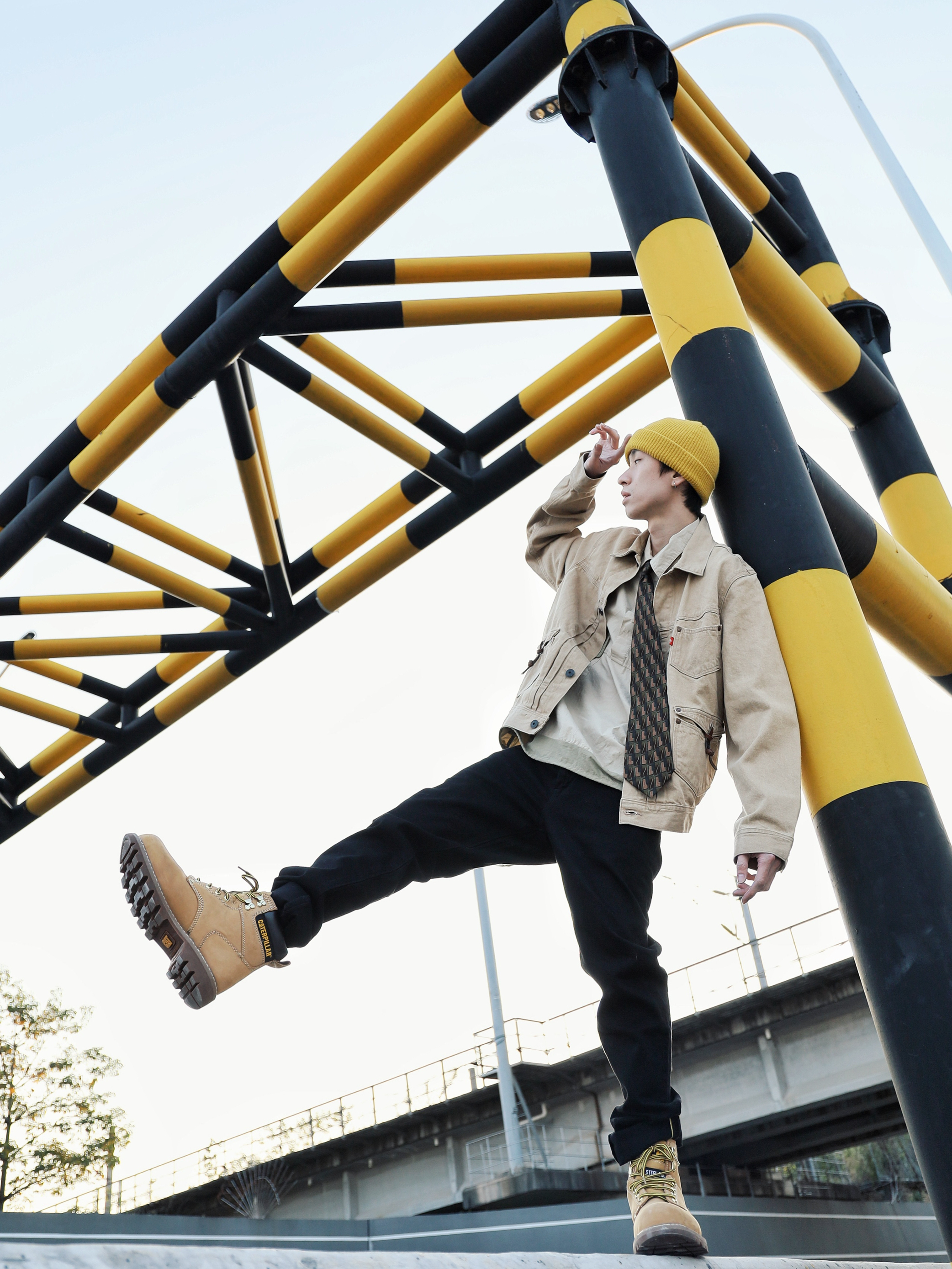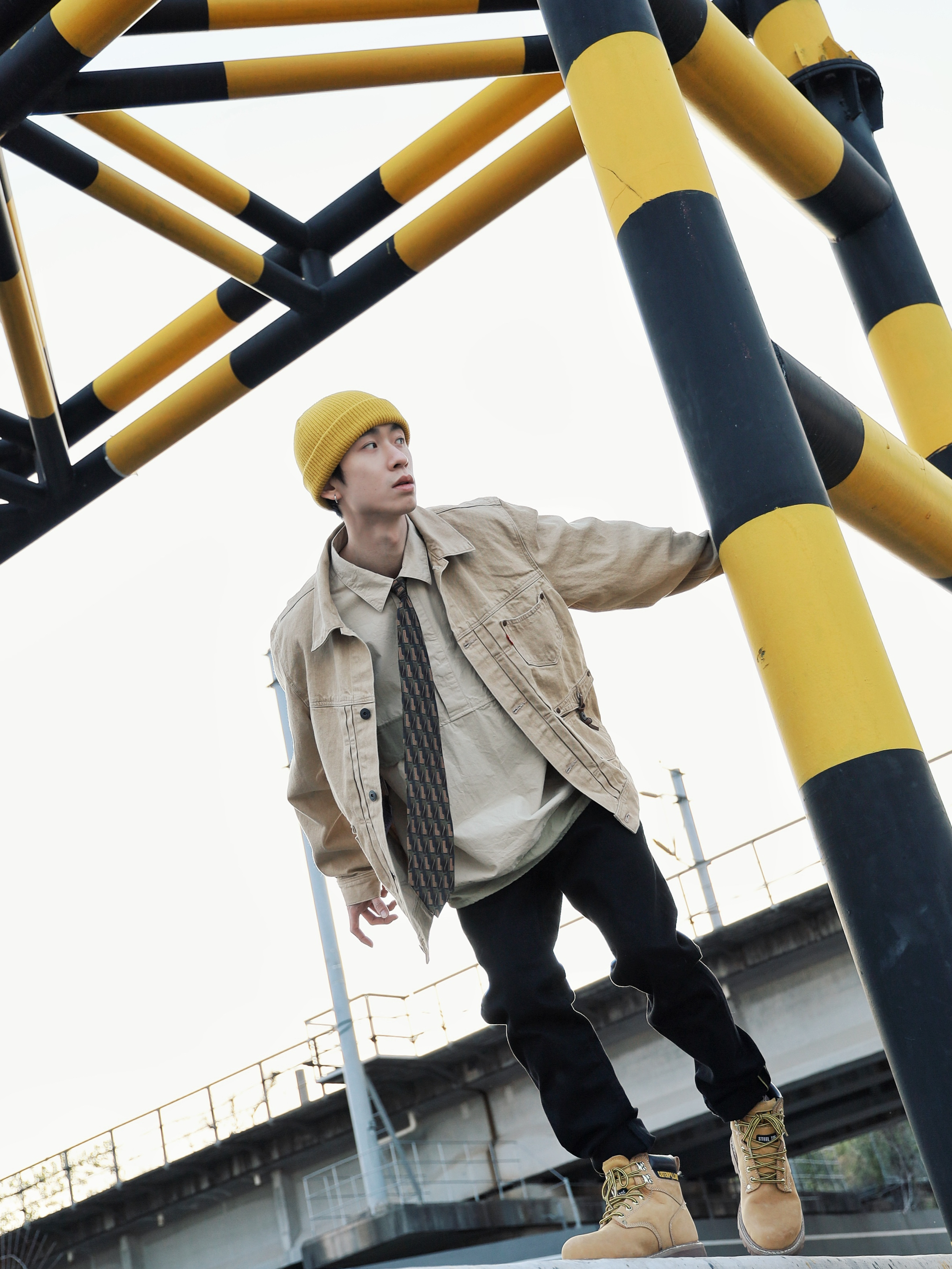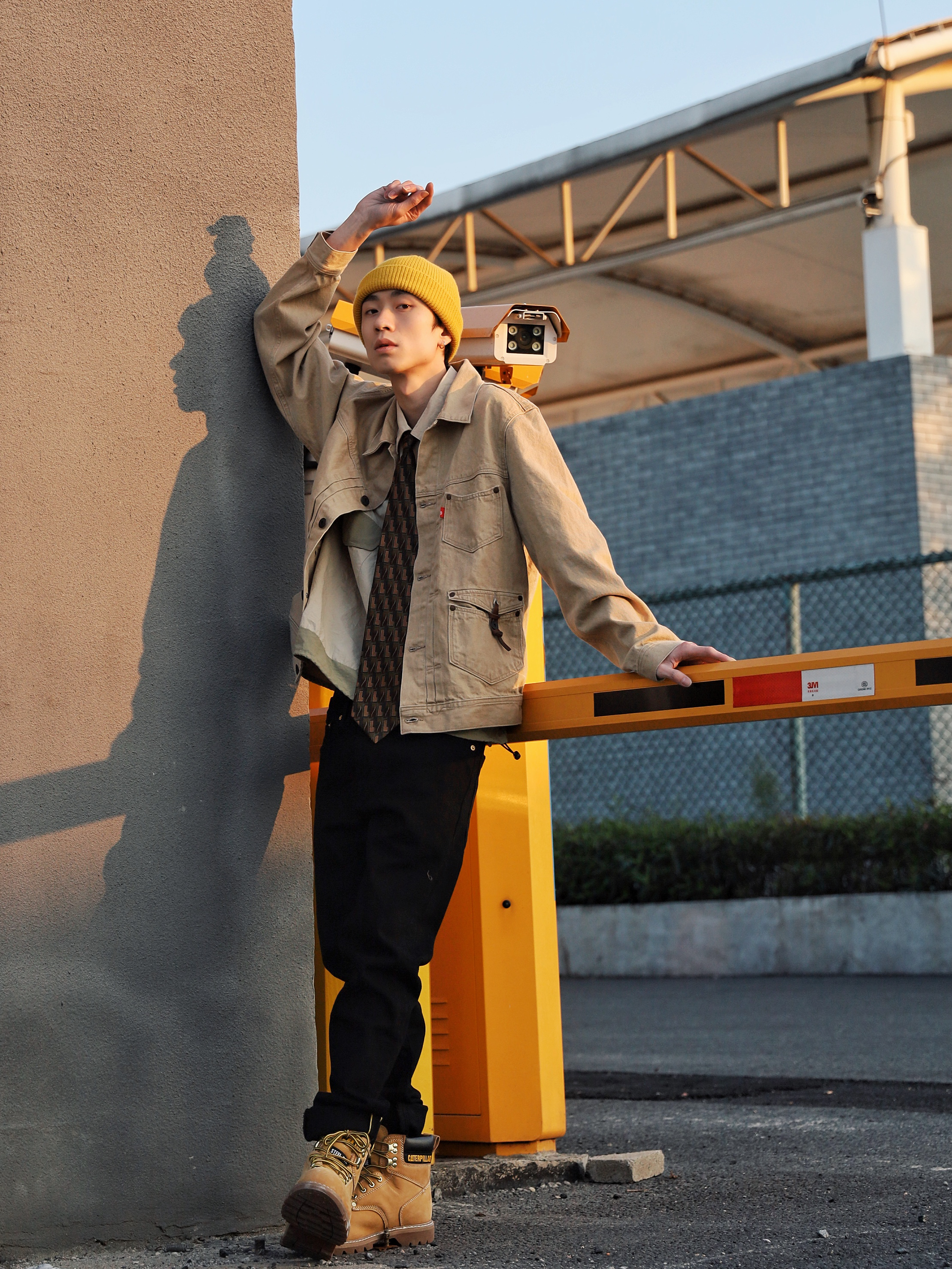 下午太阳不错出来江边晒晒太阳猜猜火车 搭配了一身卡其黄黑色的丹宁穿搭,正好和这个限高栏"撞衫了",就和它玩起来了😋 外套/裤子:Levi's RED 先锋系列 Levi's的牛仔单品就从未让我失望过,卡其色正好就是我最近最爱的颜色,外套这经典的版型融合了一些新的设计,口袋处的纽扣配皮带超有质感,一些故意歪的走线也是符合"歪点正好"的主题🏃🏻 牛仔裤还是一如既往的让人满意,黑金皮...