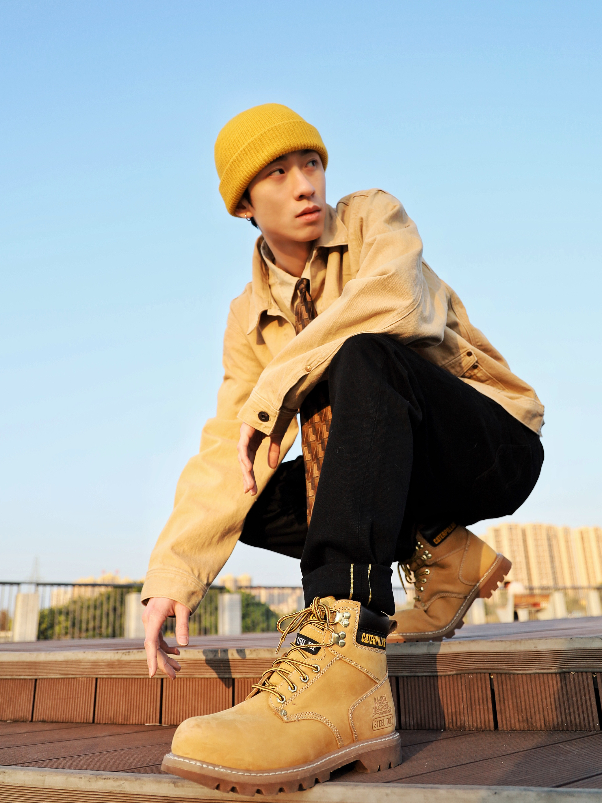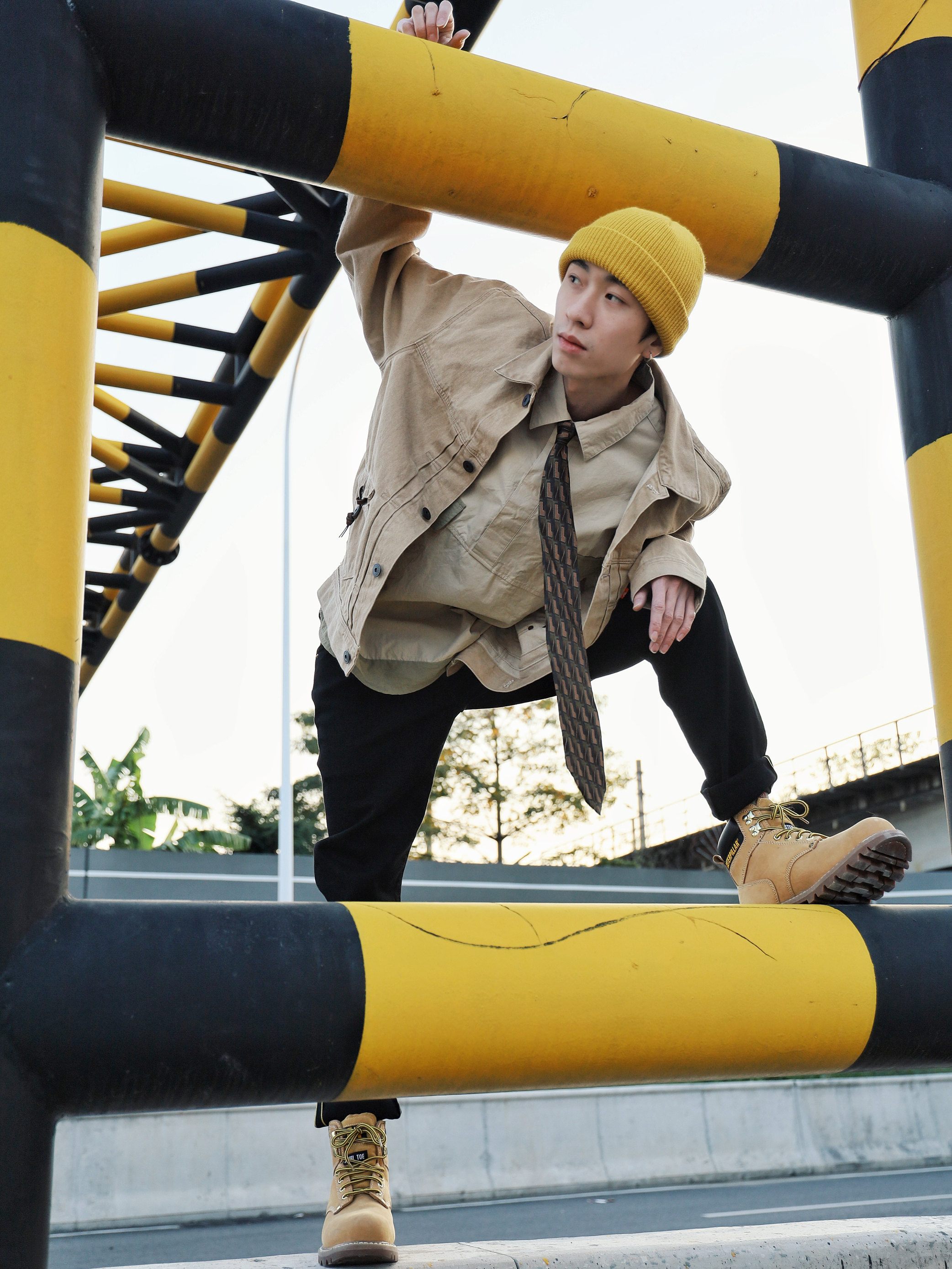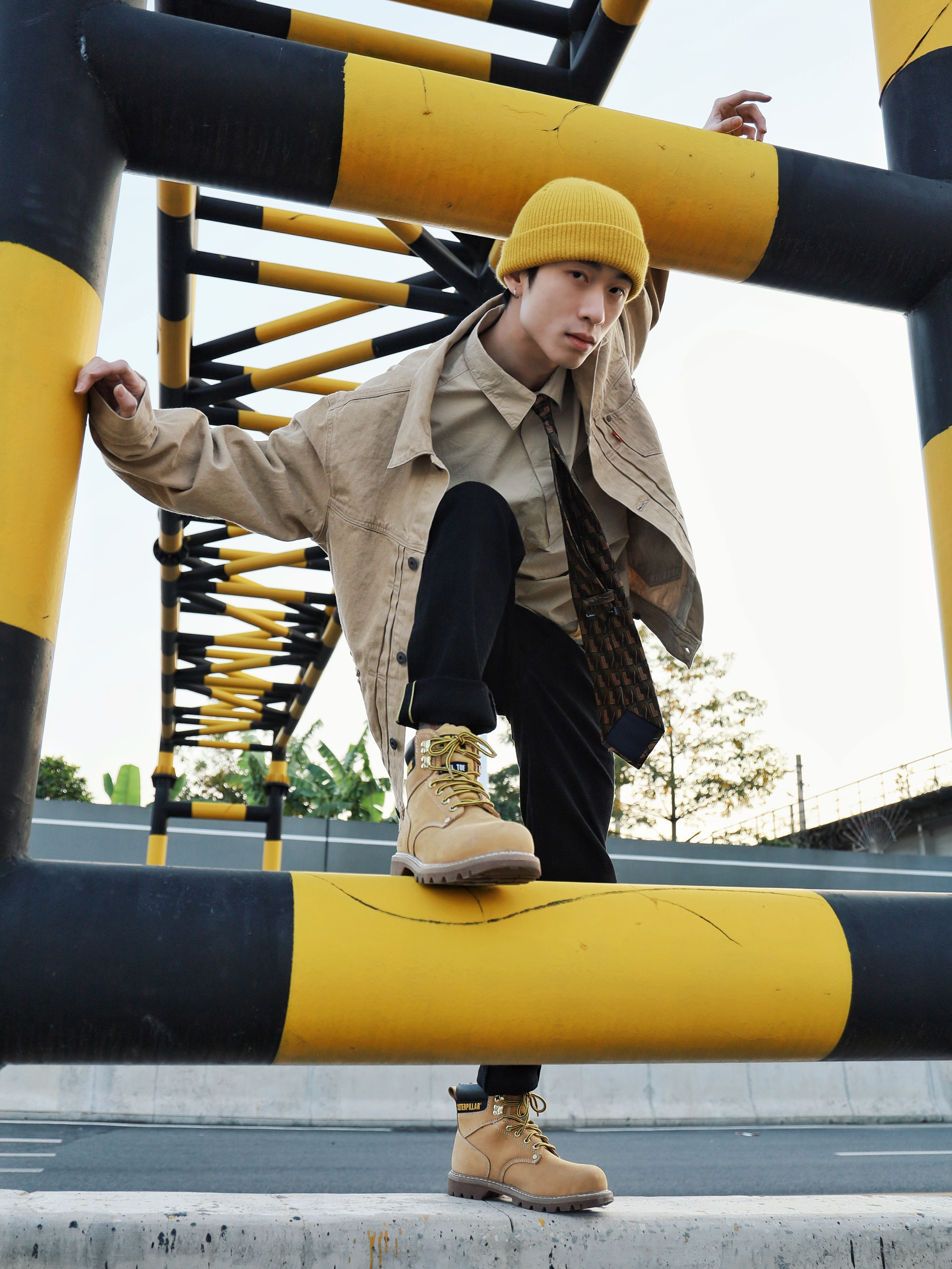 下午太阳不错出来江边晒晒太阳猜猜火车 搭配了一身卡其黄黑色的丹宁穿搭,正好和这个限高栏"撞衫了",就和它玩起来了😋 外套/裤子:Levi's RED 先锋系列 Levi's的牛仔单品就从未让我失望过,卡其色正好就是我最近最爱的颜色,外套这经典的版型融合了一些新的设计,口袋处的纽扣配皮带超有质感,一些故意歪的走线也是符合"歪点正好"的主题🏃🏻 牛仔裤还是一如既往的让人满意,黑金皮...