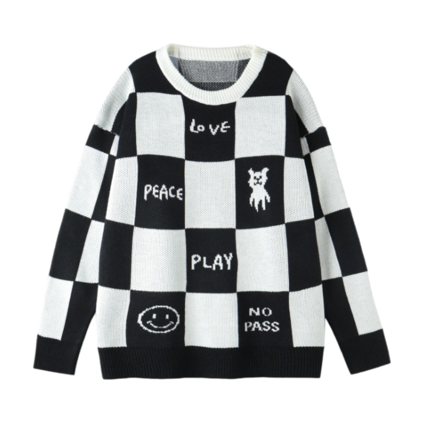 本篇笔记关联了NOPASS 小众棋盘格撞色提花套头圆领毛衣 男女同款 黑白等商品,为用户提供真实的使用体验和购买参考。