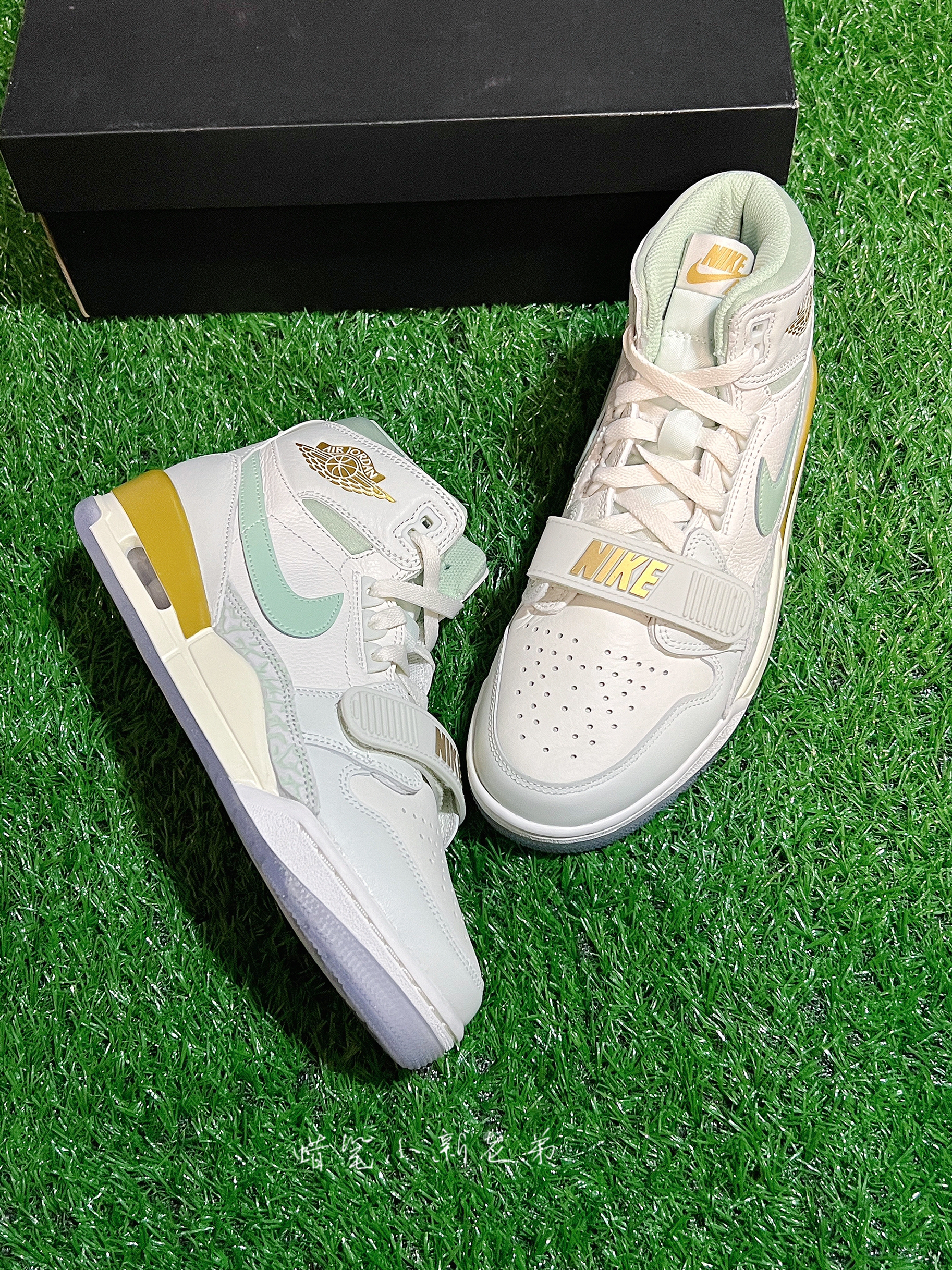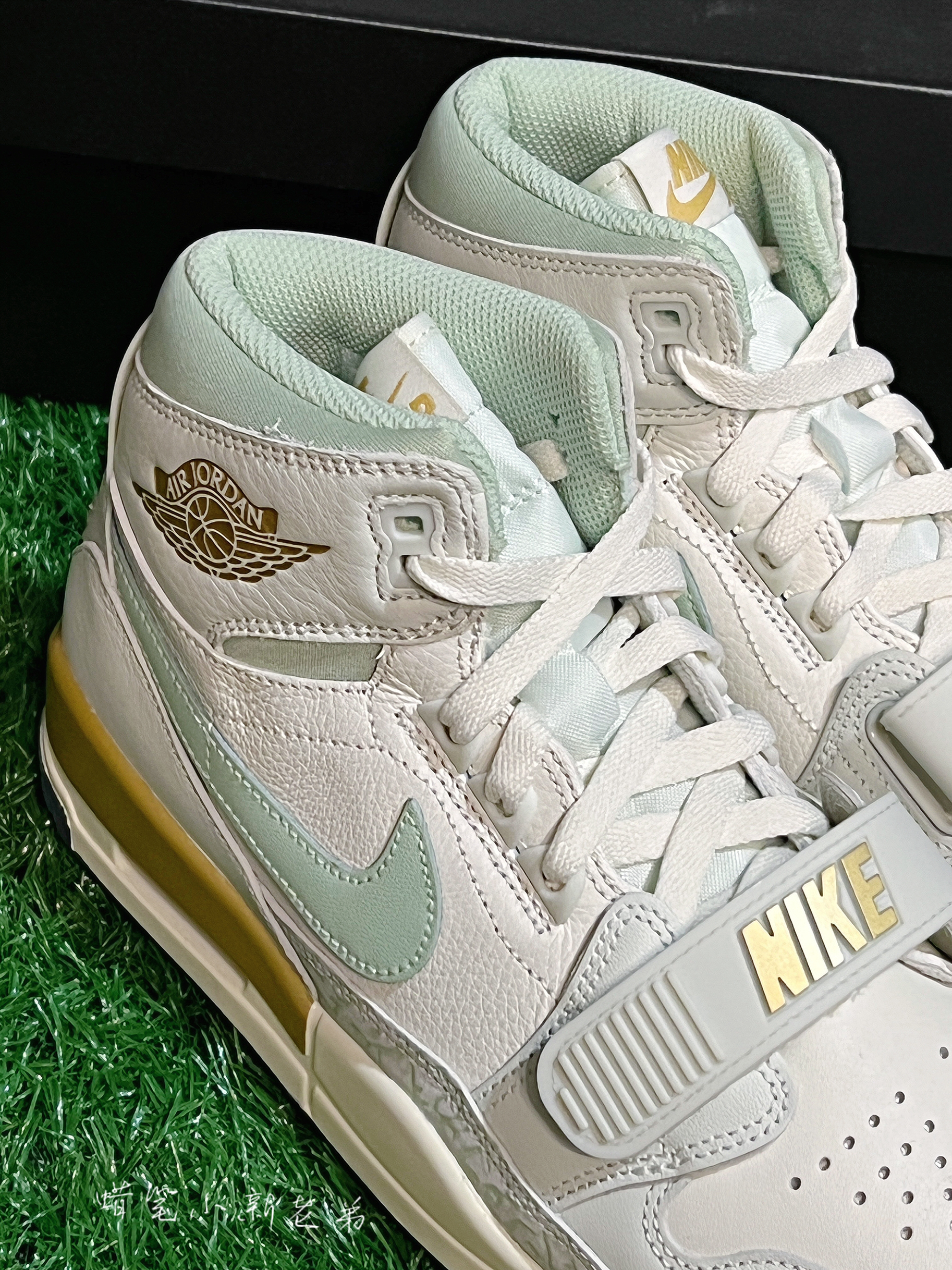 Air Jordan Legacy 312 "Year of the Tiger" 高帮复古篮球鞋薄荷绿虎年 鞋子整体采用了米白色➕浅绿色组成,魔术贴处和鞋舌都有着金色Nike字印,后跟金色飞人Logo,鞋身采用了皮革材质质感还是非常舒适的,透明水晶鞋底也是非常有特别,312是一个特别耐看的鞋型,适合秋冬季节穿,唯一的缺陷就是脚感比较一般