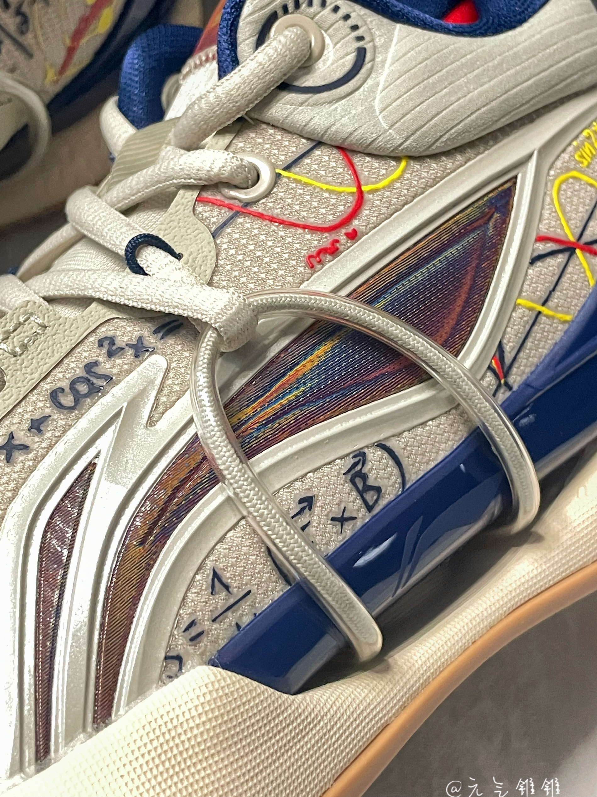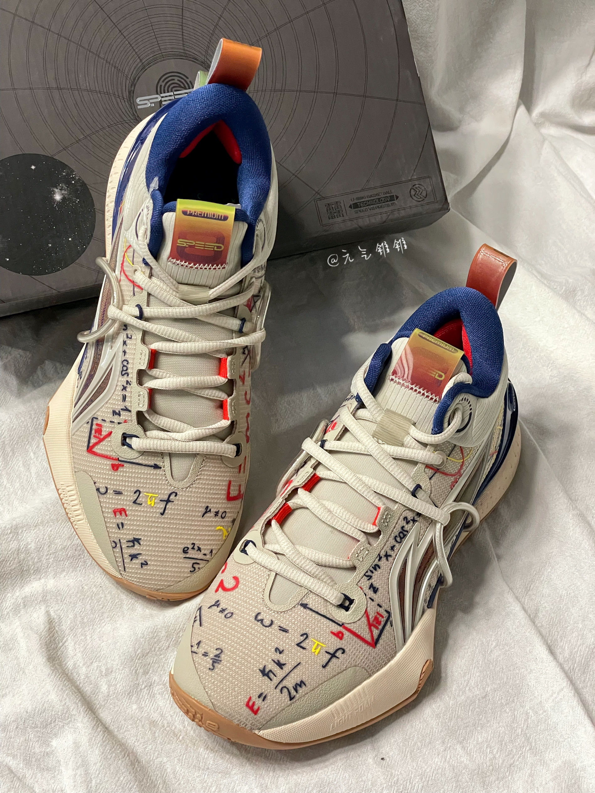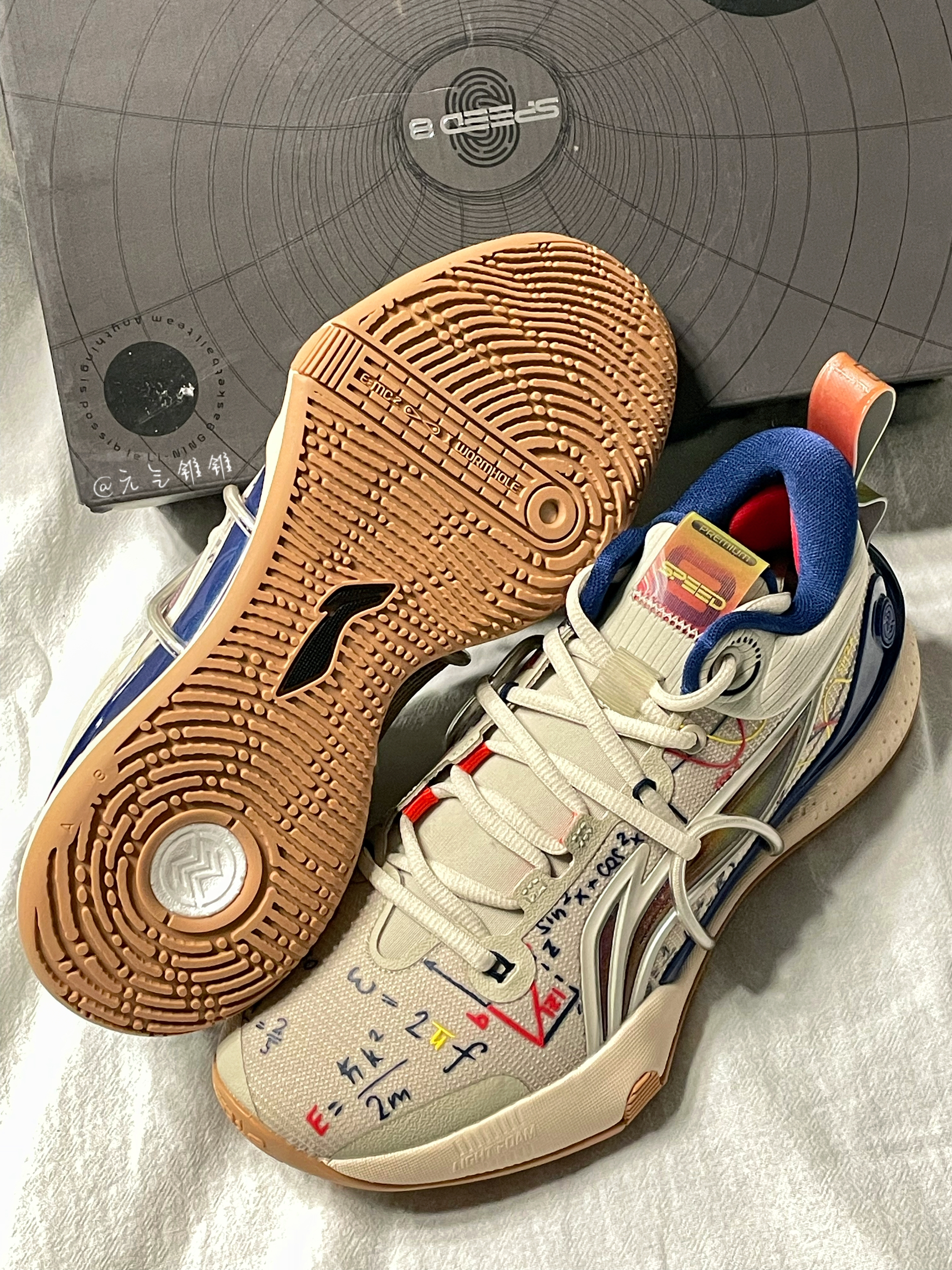 LiNing李宁 闪击8 Premium 䨻科技 减震耐磨篮球鞋 燕麦灰 鞋身采用燕麦灰为主色,搭配深蓝色点缀,配色很清新,鞋面带有多色的数字图案印花,非常别致的设计,鞋面采用透气的织物面料,柔软又舒适,鞋身层次感十足,外侧李宁logo用了红蓝俩色搭配,很酷炫的感觉,后掌带有李宁䨻科技,轻弹舒适不用多说了,全掌搭载LIGHT FOAM缓震,优异的缓震和回弹性助力更强,橡胶多纹路大底,防滑又耐磨...