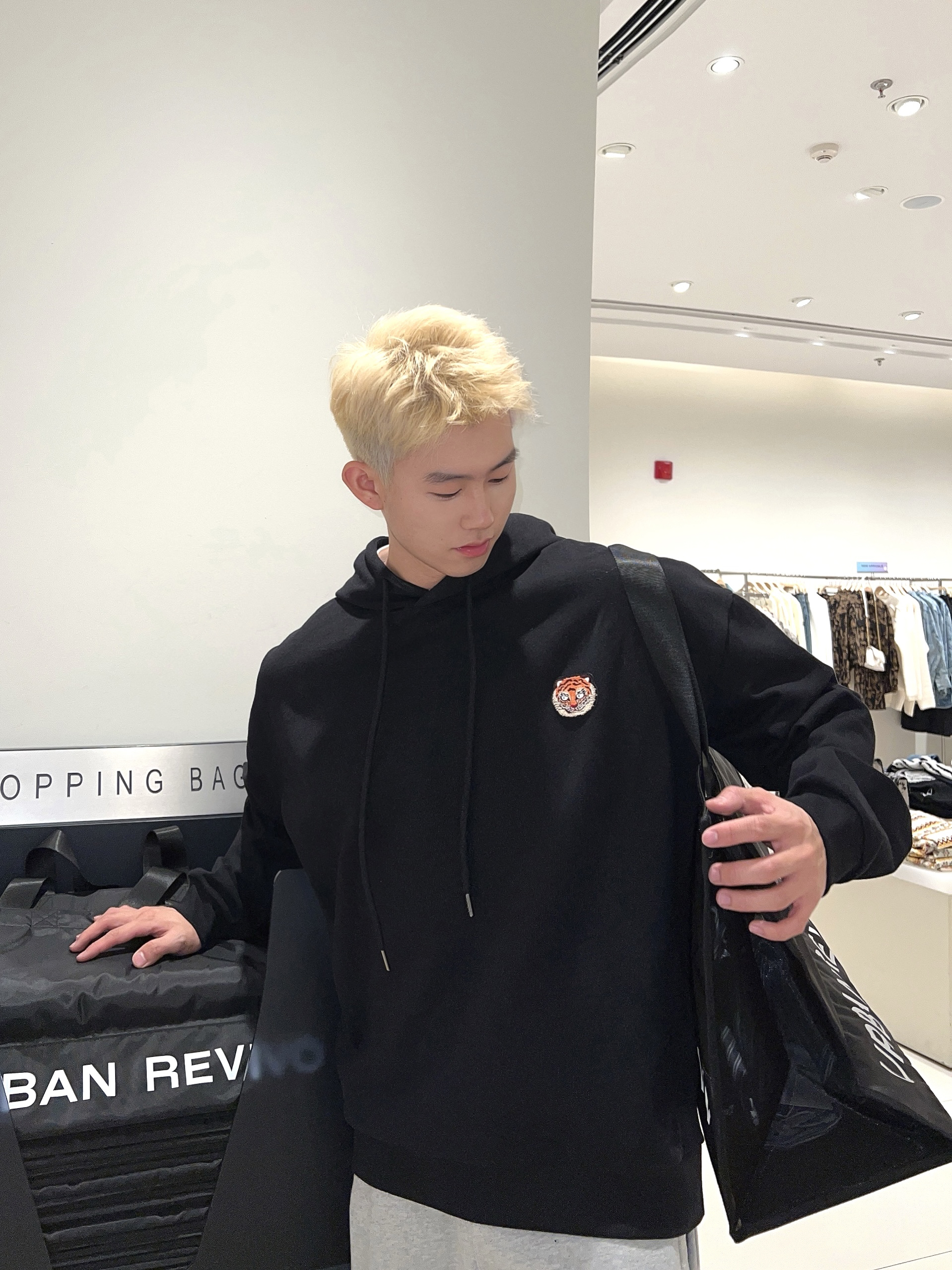 😊今天小王分享一套黑白灰穿搭,简单又充满运动男友风的穿搭来啦~ 男生黑白灰穿搭再合适不过啦、简单又干净. 黑白灰大多数男孩子都很爱、今天和朋友逛街正好来UR逛逛、还是挺好逛的、选了俩件挺好看的衣服~ 上衣选的是有小老虎刺绣的卫衣、里面搭配一件白t.叠穿有显层次又有少年感活力的氛围感~再搭配一条灰裤子、体育生质感这不就来啦. 😎整体穿搭的话以三色搭配 简约又高级~