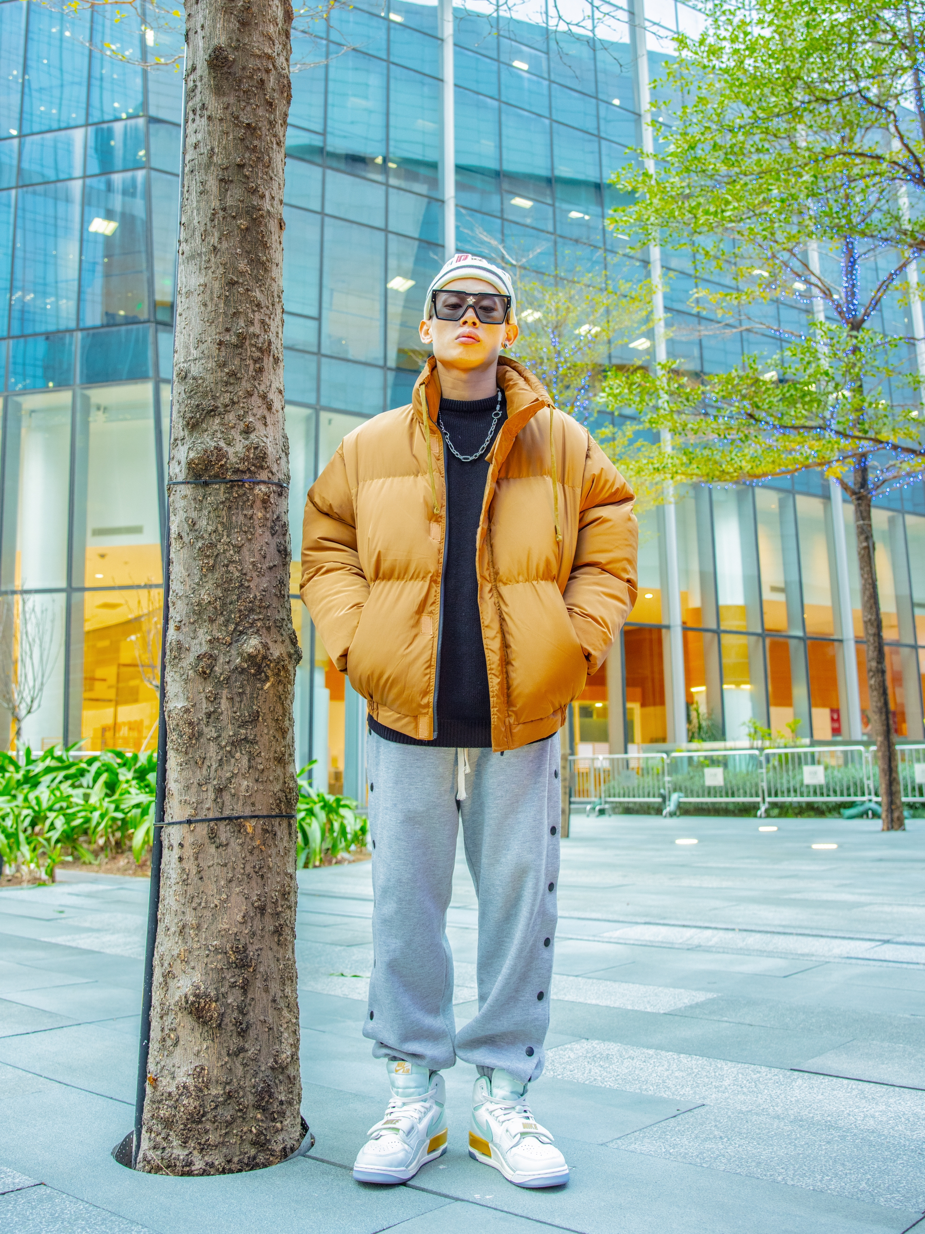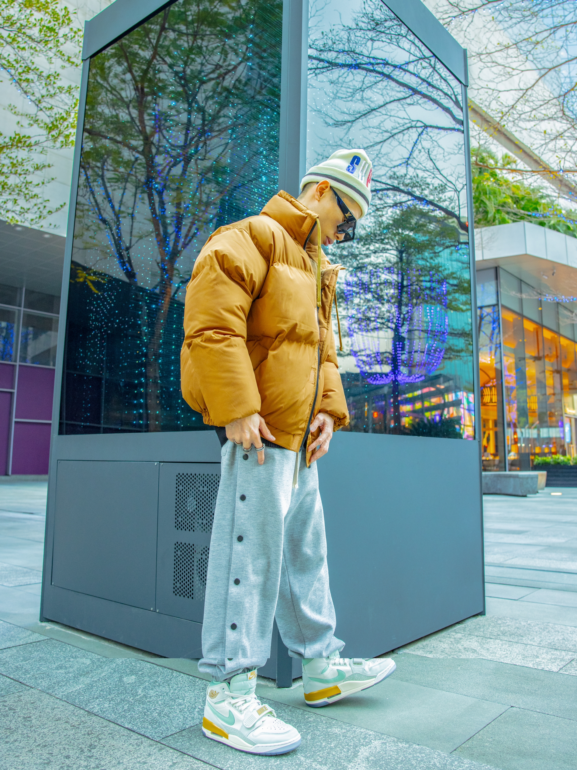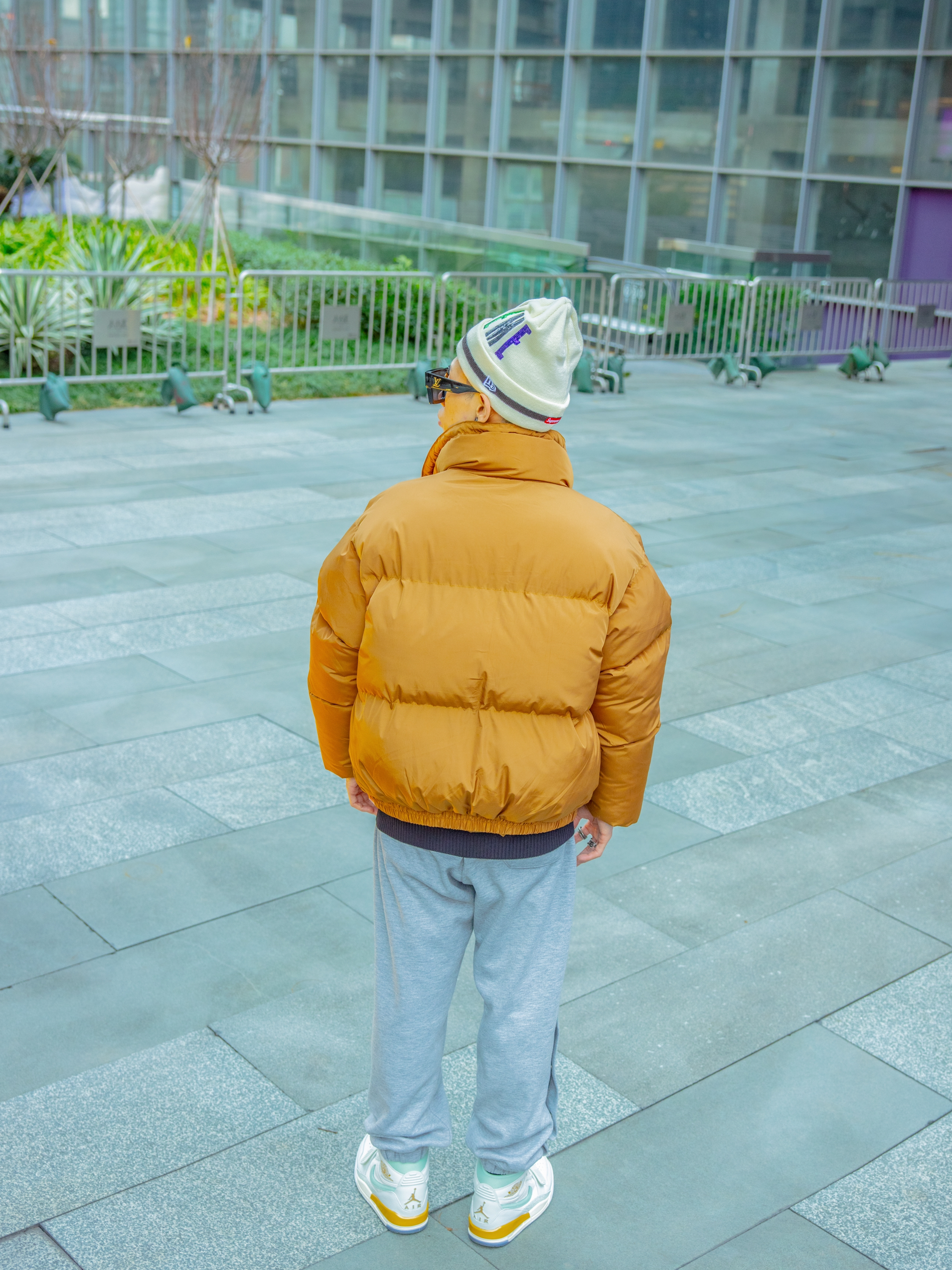 卡其色面包服够特别 卡其也是这个秋冬流行色之一,内搭黑色打底衬托还不错~🍞 下装选择灰色排扣裤还挺显精神 灰色也有运动感~ AJ 312薄荷绿白色为主 把整个色系向浅色转移 颇有春风迎面画面~🧩👀 最后戴上SUP闪片针织帽增添不少啊嘻哈和美式街头风~🌟 🧥:M5IS 🧢:SUPREME 👟:AJ LEGACY 312薄荷绿 👖:M5IS