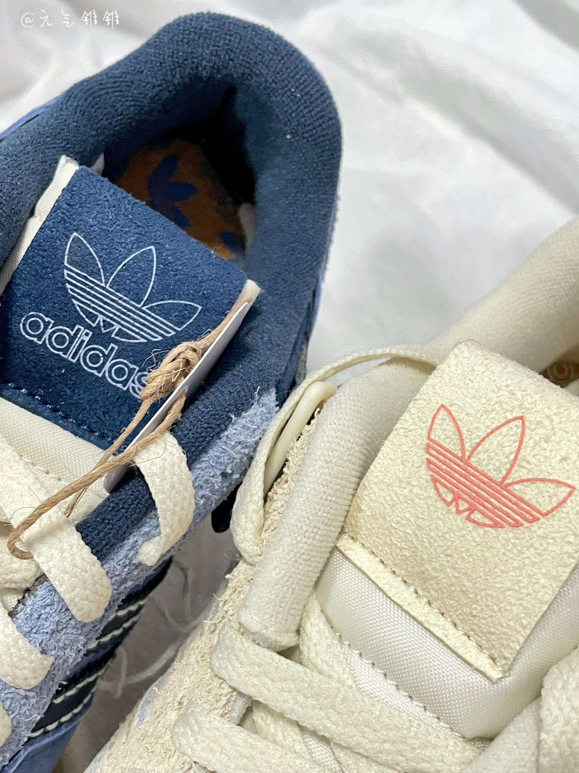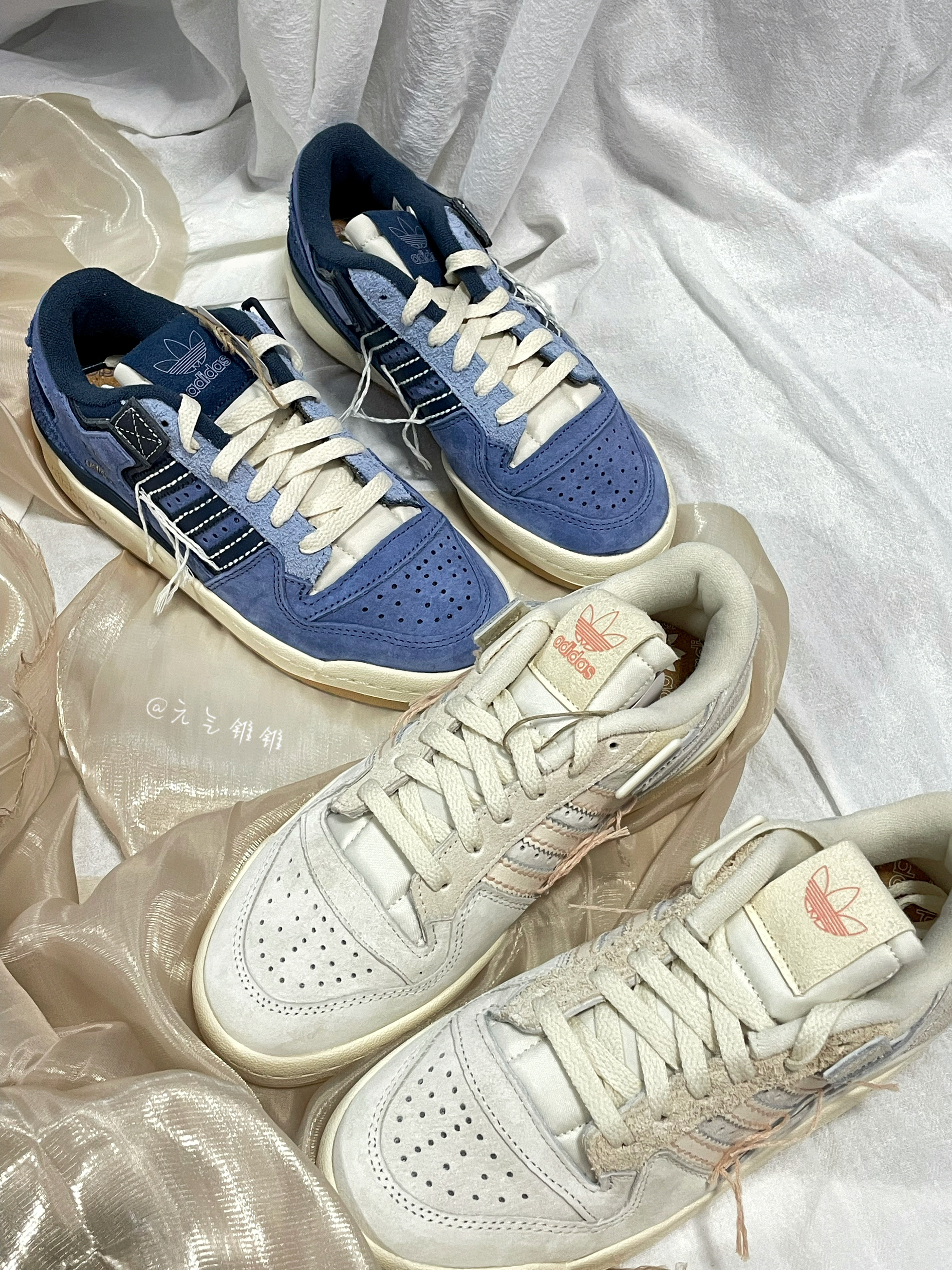 1⃣️adidas originals Forum 84 Low 牛仔蓝 线头 2⃣️ adidas originals Forum 84 Low 米白 线头 鞋身麂皮和翻毛皮搭配,质感舒适柔软,鞋款为米白色和牛仔蓝,鞋外侧三道杠、鞋舌带有三叶草经典logo,外侧还带有一个金色三叶草logo,另外还有个独特小设计,三道杠标志还带有线条点缀,清新还有点复古的感觉,都带有做旧感,非常不错的俩款日常...