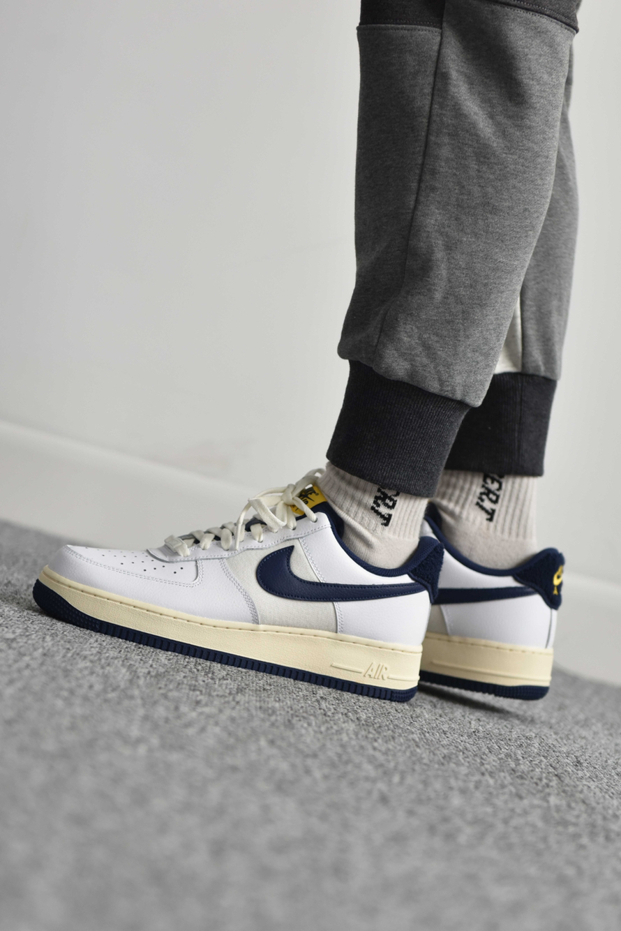 这款海军蓝配色的空军,质感真的很不错,材质用的都很足,鞋子稍微有点重,鞋底也变软了好多,好搭配,这个配色还非常值得入手的,穿搭无敌,搭配束脚,阔腿裤都可以。