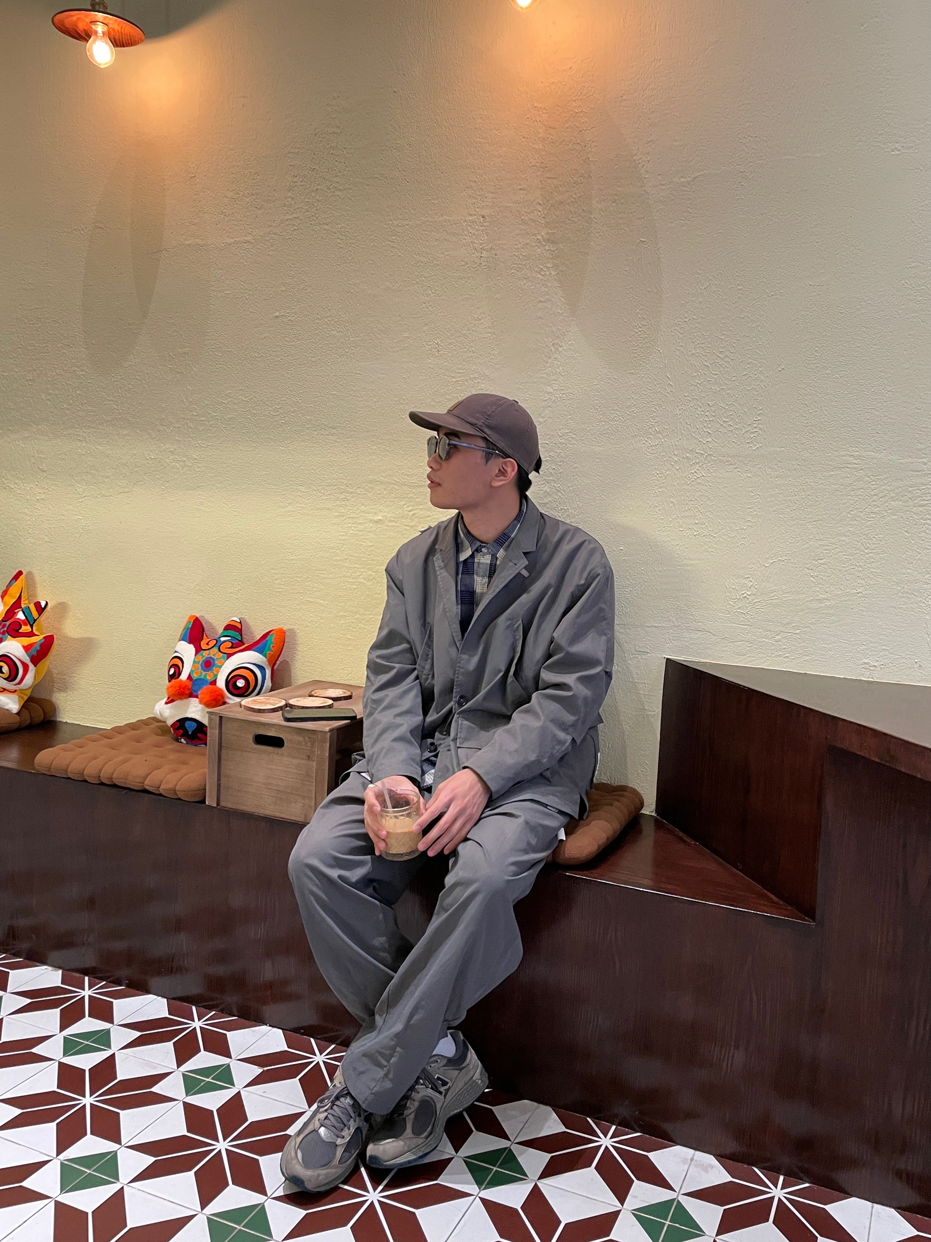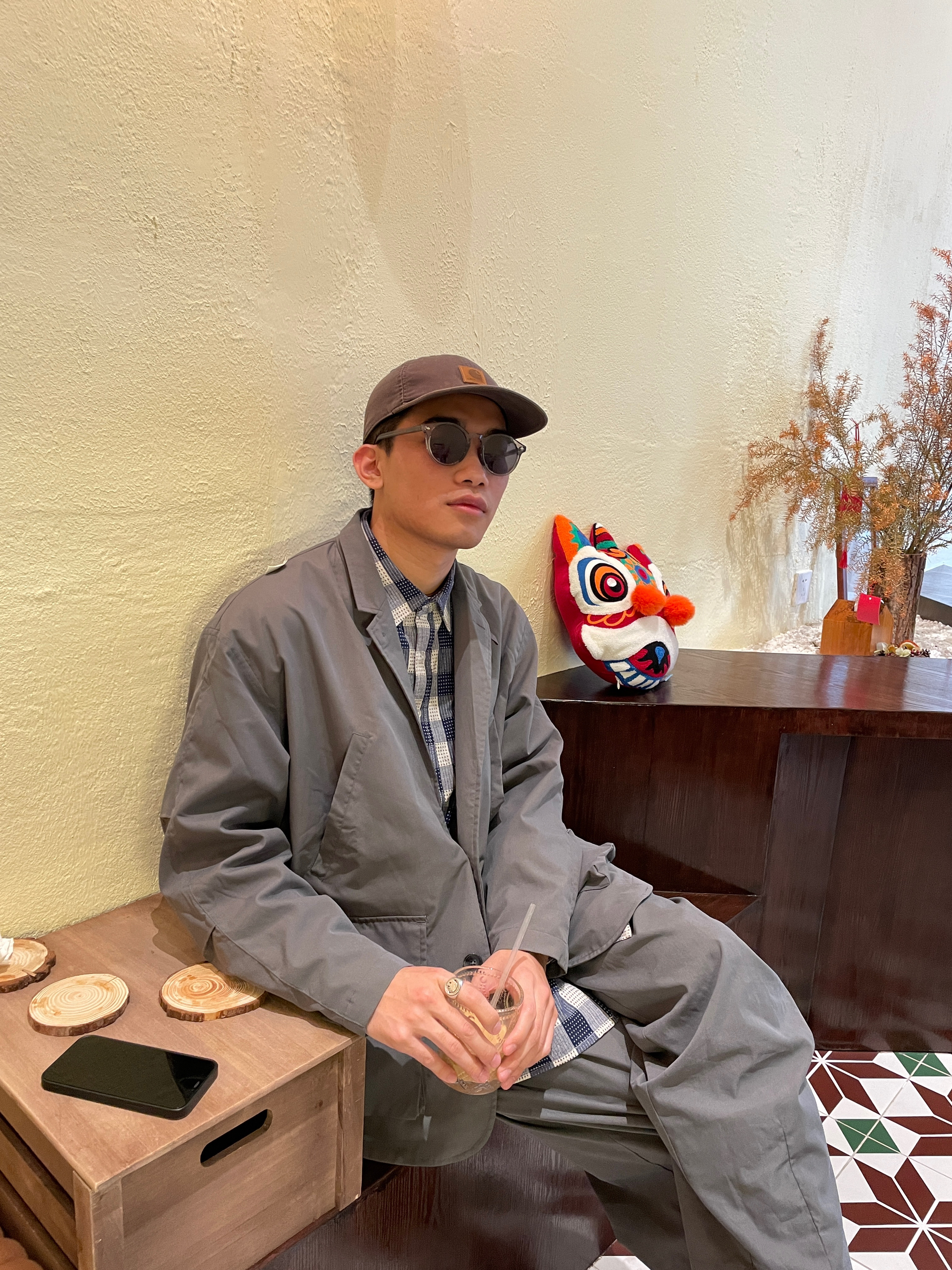 休閒的西装 適合日常工作後的余慶節目 而這种寬鬆感的西服套装 既有懒庸感也不失正规 👕:REAIMNESS 👖:REAIMNESS 👓:moodswag旗舰店