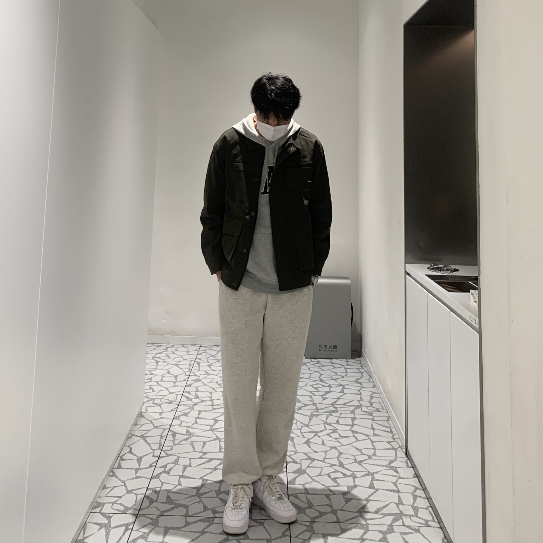 外套:gwit九尾 裤子:1747 鞋子:af1 整体好看又不单调。