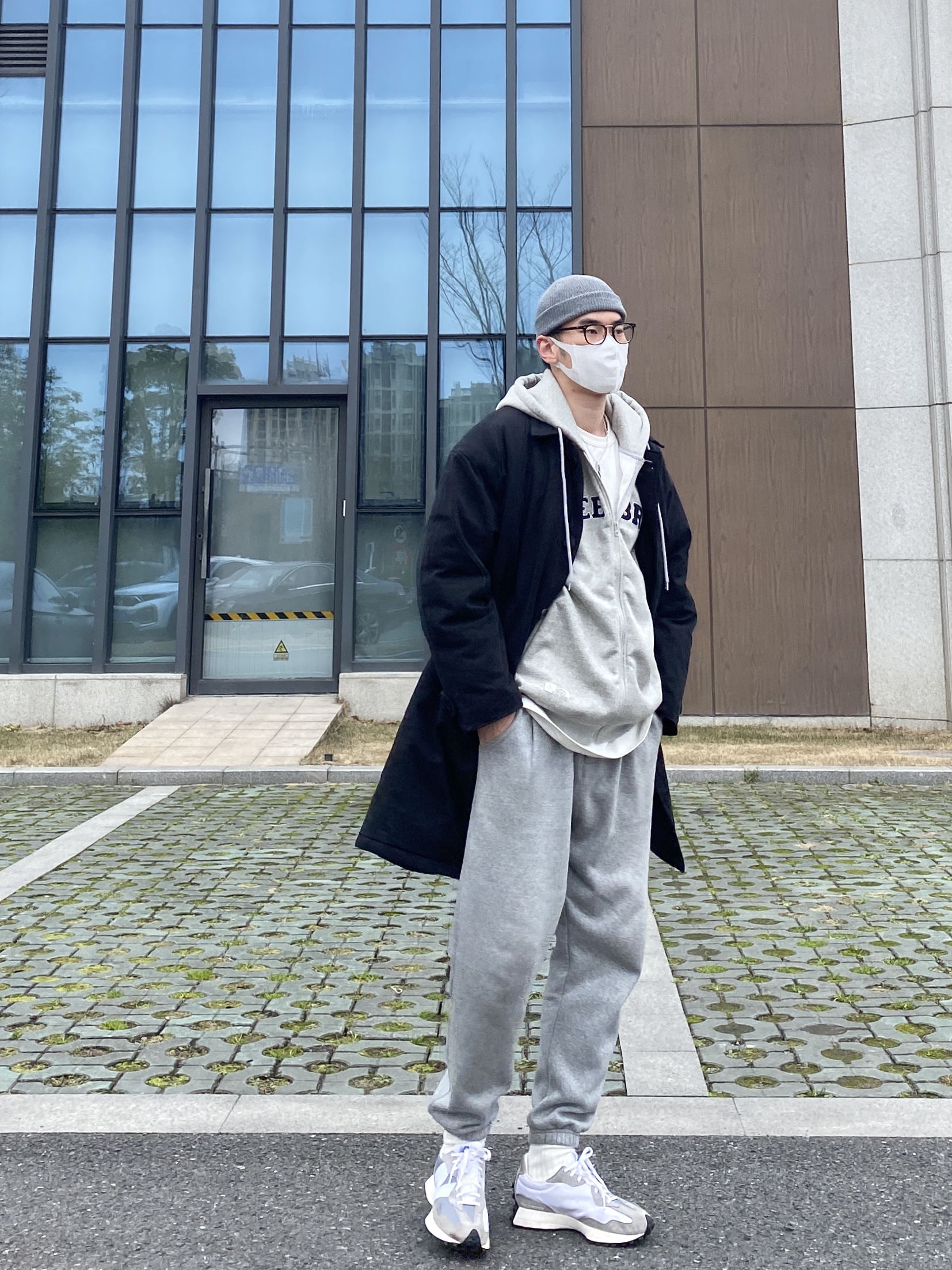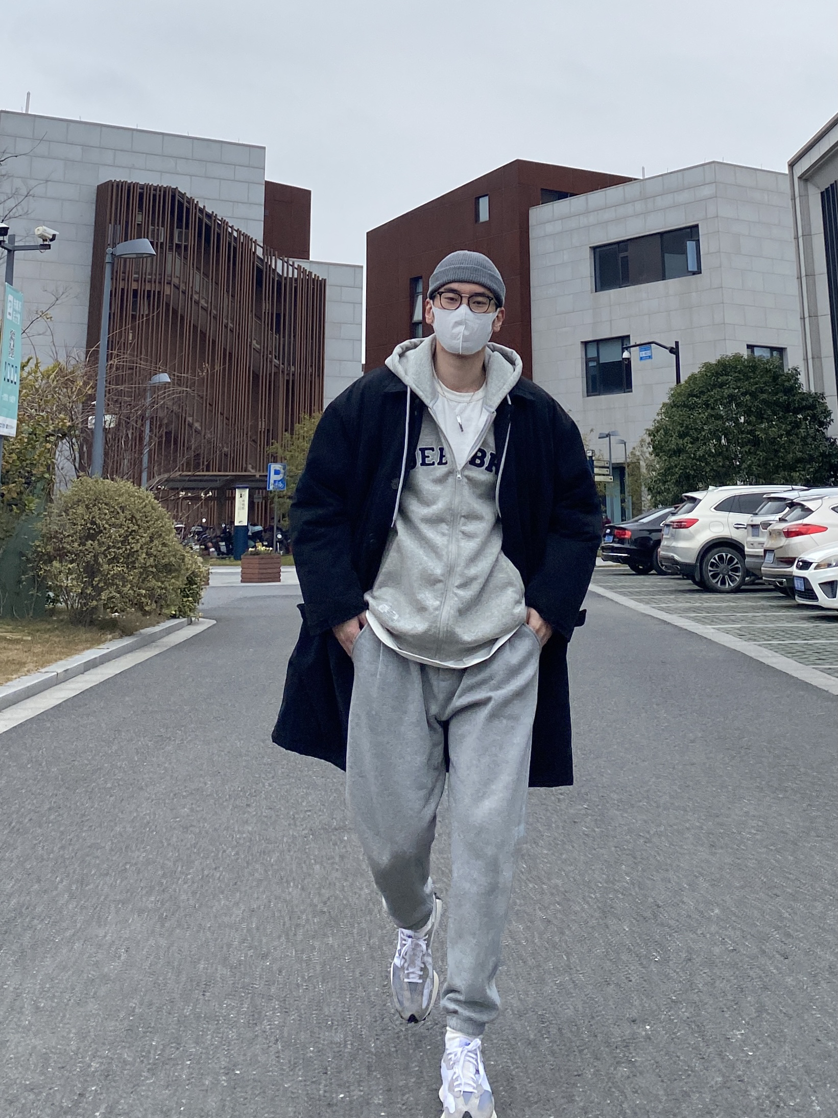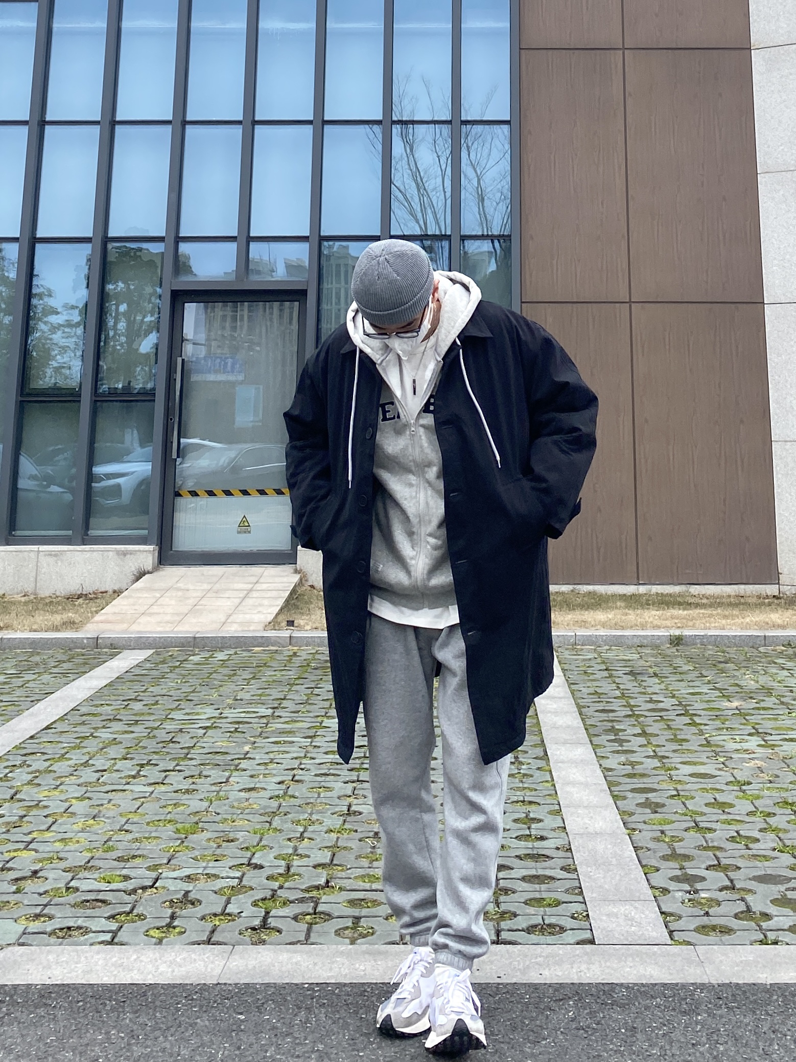 今天这套先用白色圆领T恤打底,内搭穿一件字母印花连帽拉链卫衣,裤子选择秋冬必备的灰色直筒束脚卫裤,鞋子上脚百搭又增高的nb327元祖灰,接着套上黑色宽松阔版风衣棉服,最后戴一顶灰色线帽呼应下内搭和裤子的颜色,OK,出门看看搭配效果吧! - 今日穿搭 衣服裤子都来自:NICE LILI(中间有空格) 鞋子:NB327元祖灰