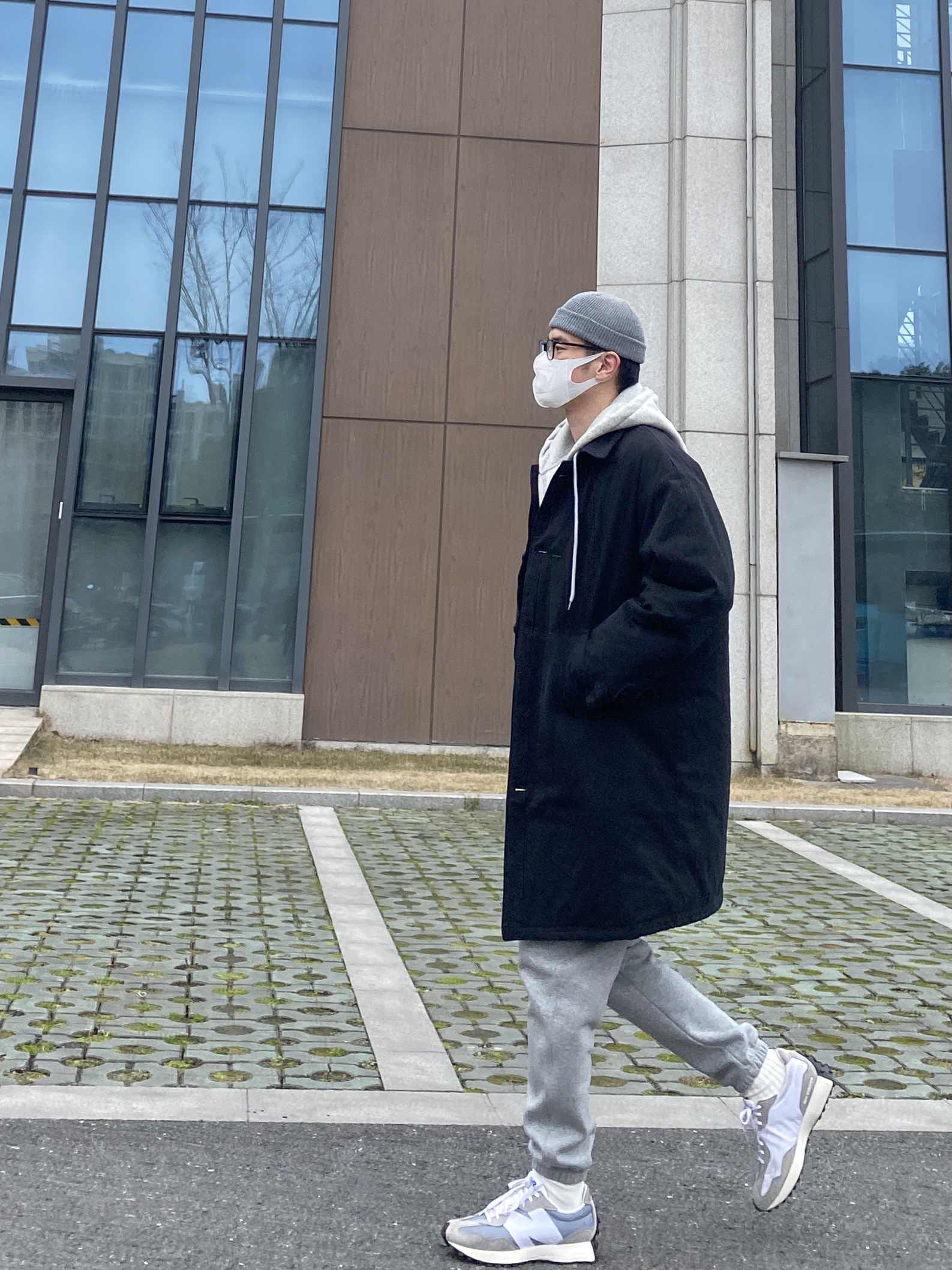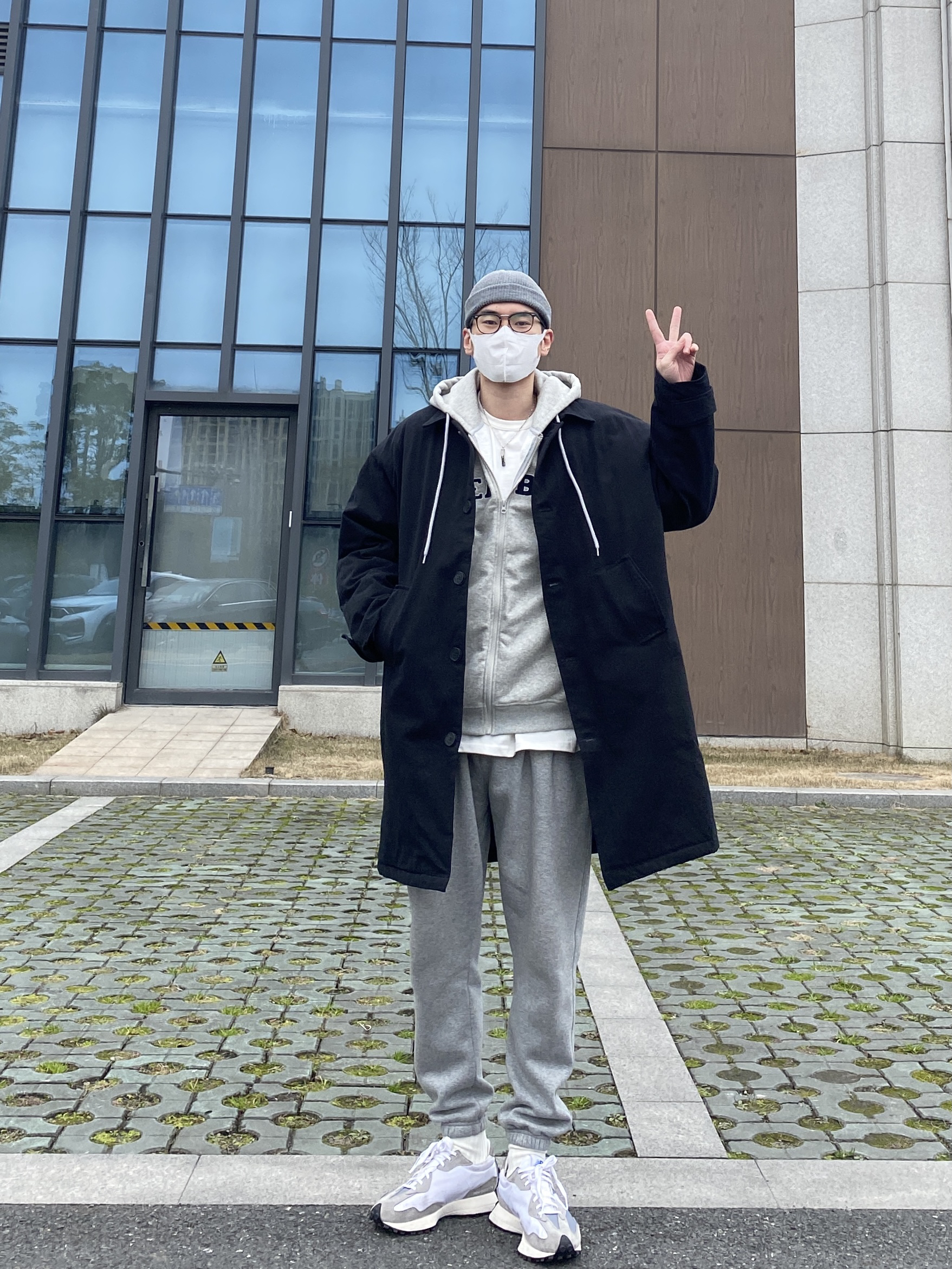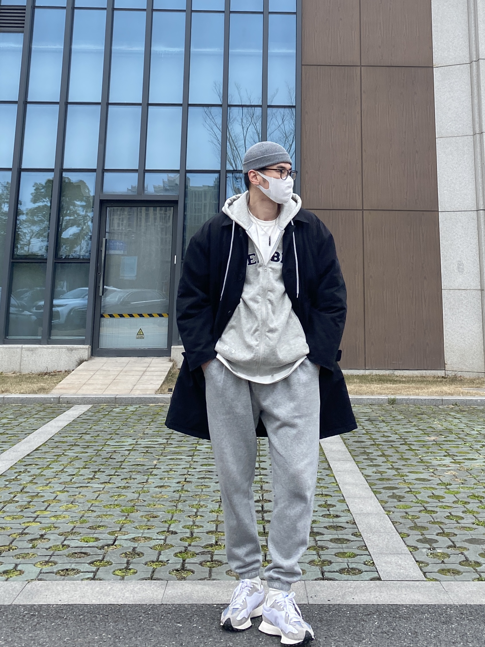 今天这套先用白色圆领T恤打底,内搭穿一件字母印花连帽拉链卫衣,裤子选择秋冬必备的灰色直筒束脚卫裤,鞋子上脚百搭又增高的nb327元祖灰,接着套上黑色宽松阔版风衣棉服,最后戴一顶灰色线帽呼应下内搭和裤子的颜色,OK,出门看看搭配效果吧! - 今日穿搭 衣服裤子都来自:NICE LILI(中间有空格) 鞋子:NB327元祖灰
