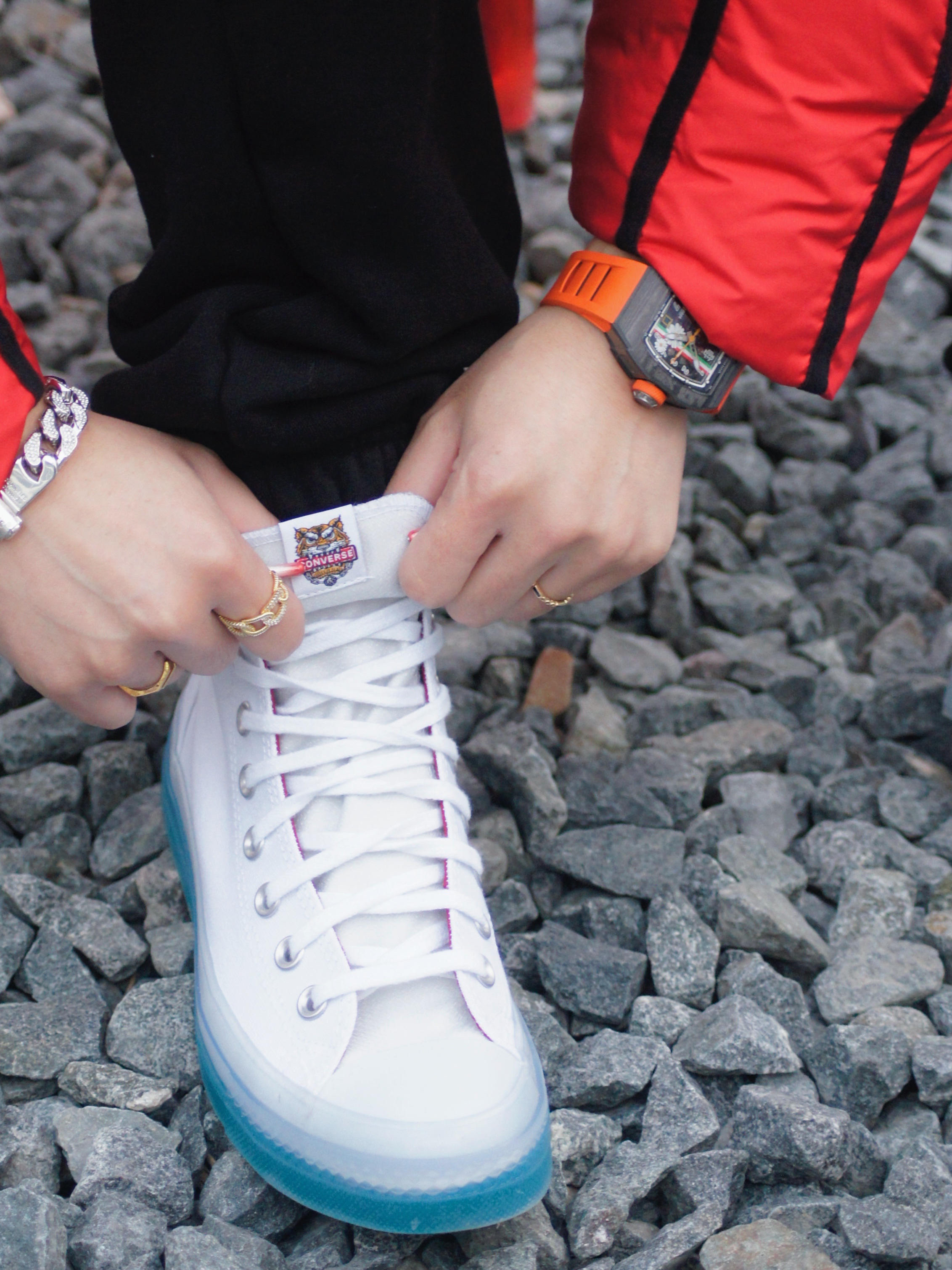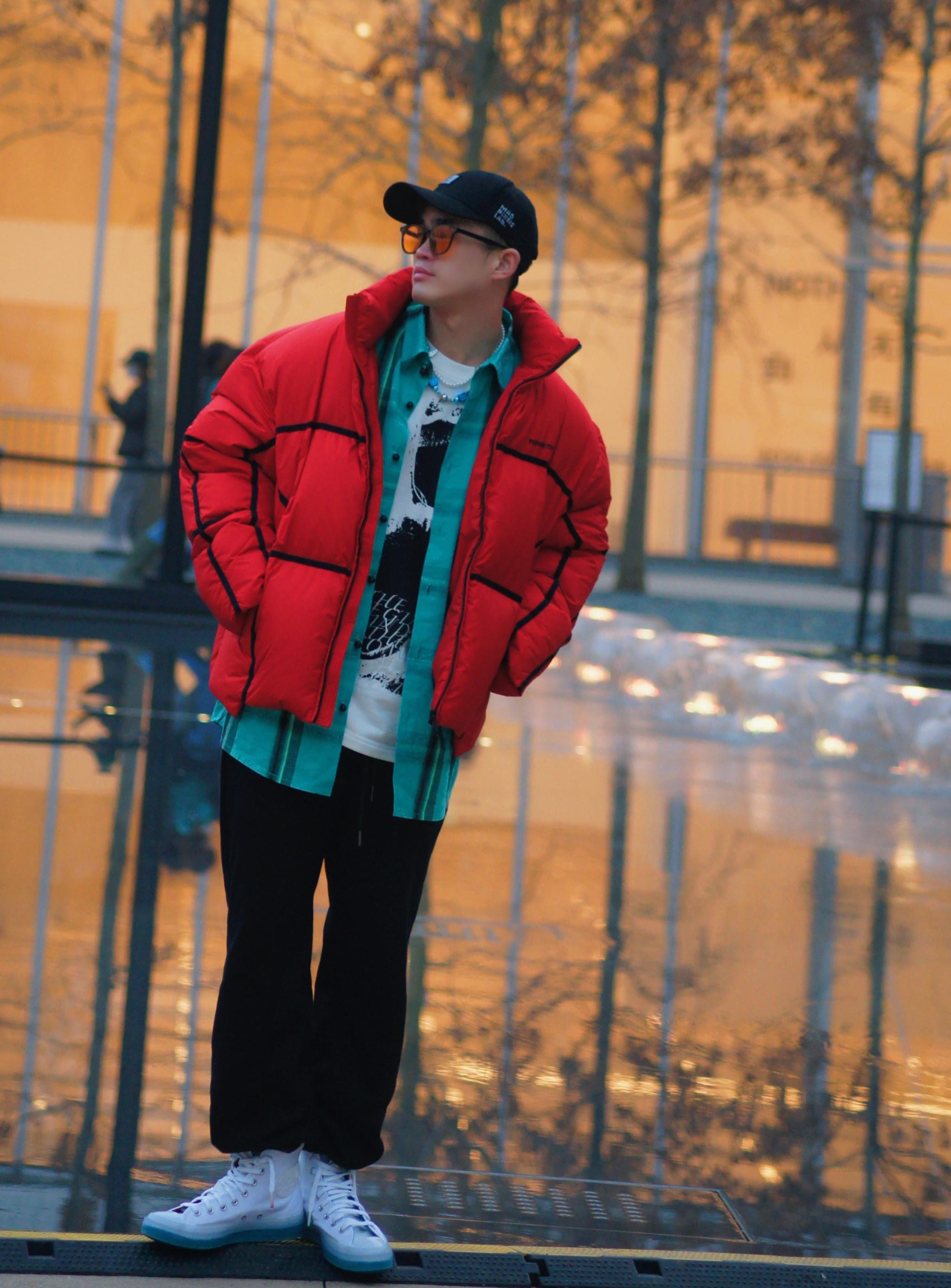 红蓝撞色给我🔒死🔵❤️! 男生穿也超好看!过年这么穿必是焦点✨ 这件立领式红色羽绒服真的时髦又保暖 黑色的线条设计使得这身不会太俗气 内搭了件亮色的湖蓝色衬衫 长款 不扣 随意敞开着 整一个就是好看住了! 新年穿新衣,虎年配虎鞋 👟鞋子底色跟衬衫做了个呼应 帽子墨镜必须整😎酷guy出街✌️ 🧥❤️Inxx 👟Converse(173128C) ⌚️🧡Davis Elvin ROMA DR05-...