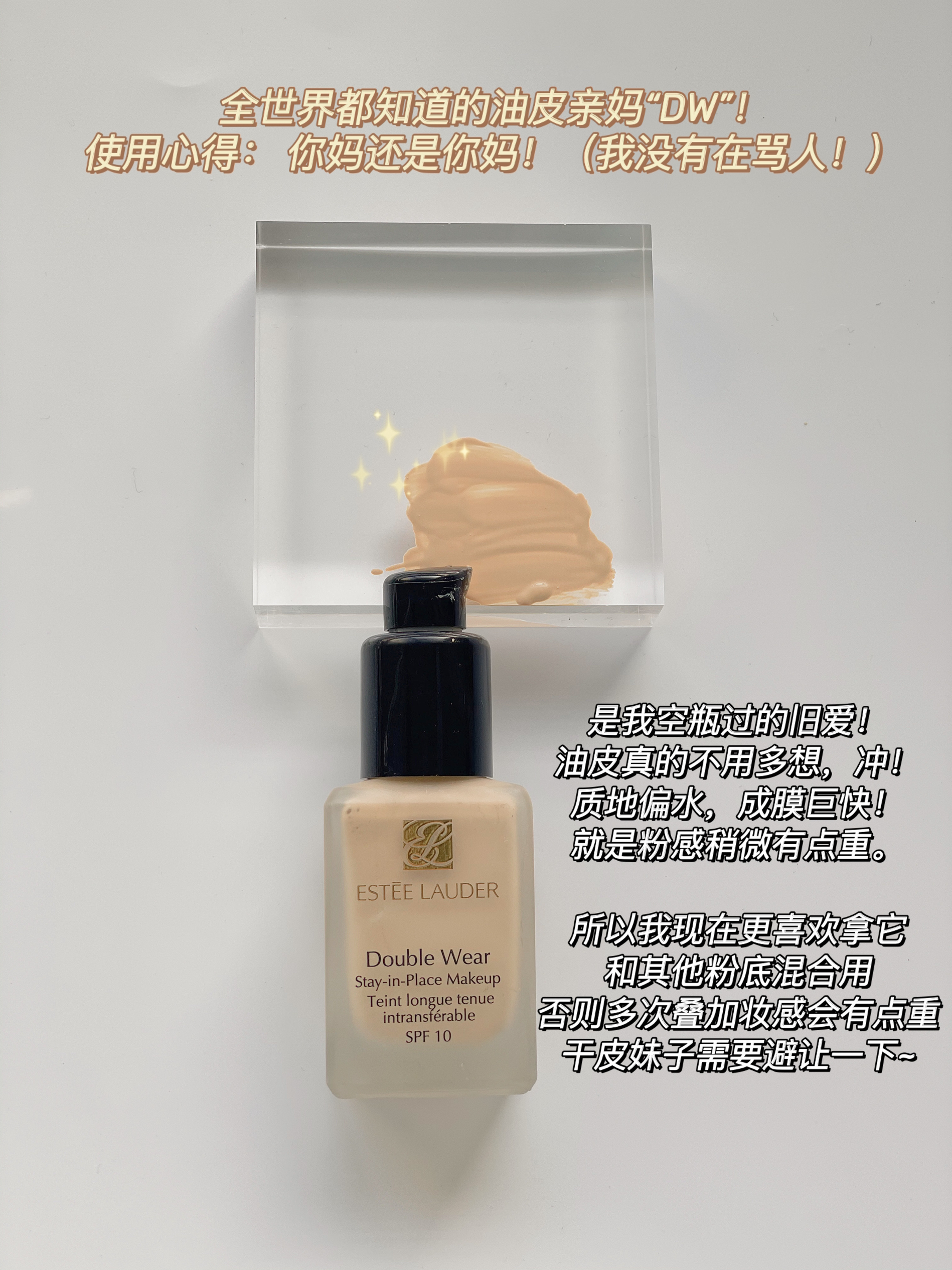 本篇笔记关联了【油皮亲妈】Estee lauder/雅诗兰黛 1.0DW持妆粉底液 遮瑕控油服帖防晒 1W1-17号 暖调偏白肤色、娇韵诗 99持久无瑕粉底液 #100C lily等商品,为用户提供真实的使用体验和购买参考。