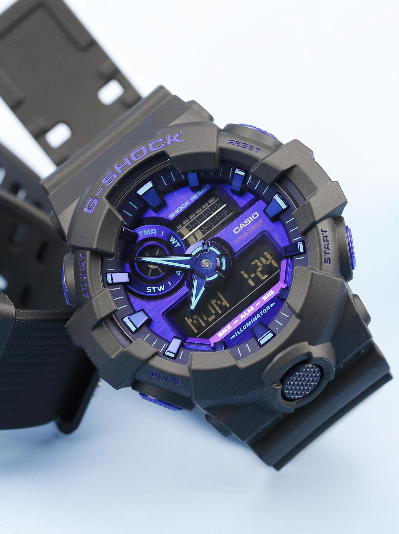 说是“赛博制霸”系列,可能大多“卡粉”还没啥印象,它主打的是“城市霓虹”🉐️街头朋克风,表盘相对来说还是都比较炫酷的,属于那种男女都能佩戴的中性款~ —— 主要由四款型号组成: 🔘GA-900VB-1APR 🔘AWG-M100SVB-1APR 🔘GA-700VB-1APR 🔘GA-2100VB-1APR —— ⚠️唯一遗憾的是:颜值虽高,却都没有自动抬手灯🤦♀️