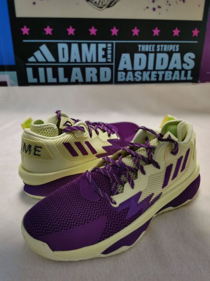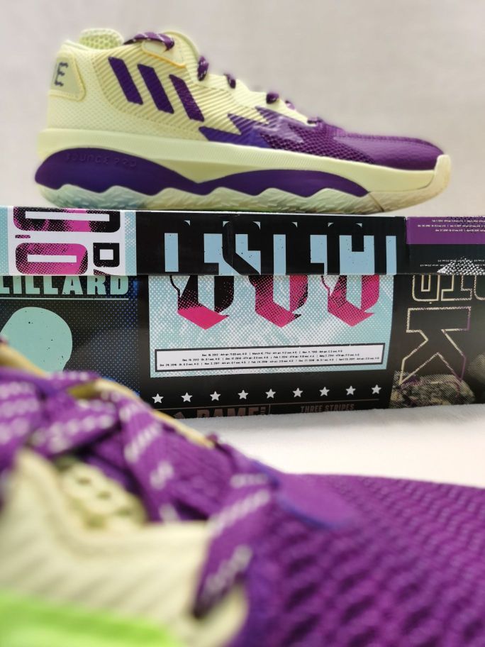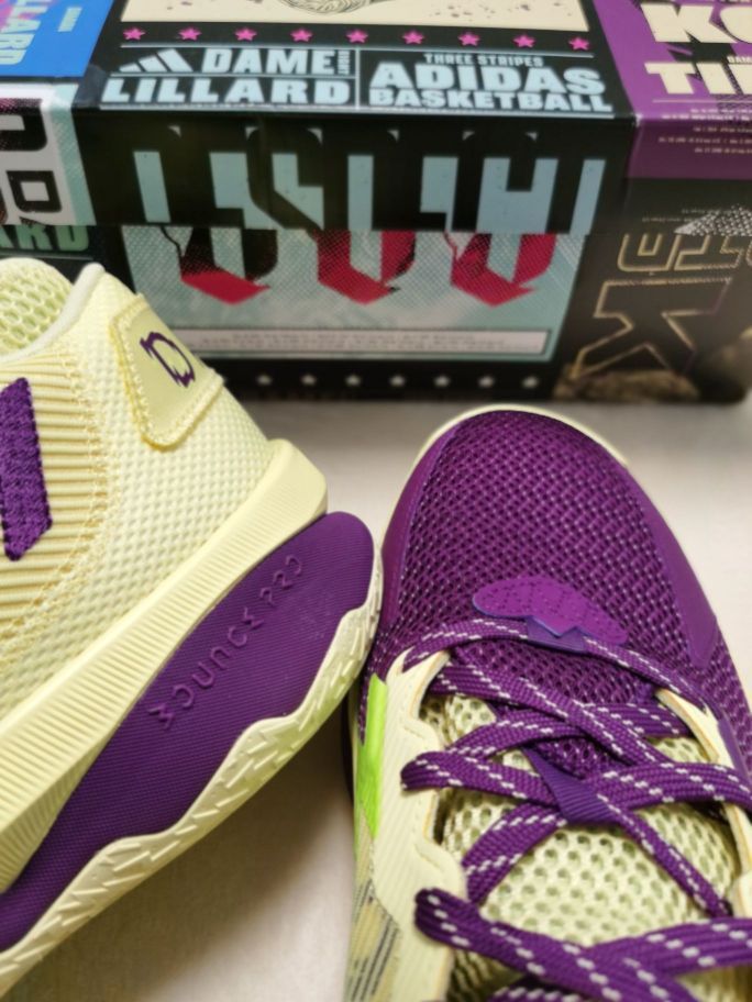 本篇笔记关联了adidas Dame 8 利拉德 签名版 实战训练 缓震 防滑耐磨 篮球鞋 黄色/紫色等商品,为用户提供真实的使用体验和购买参考。