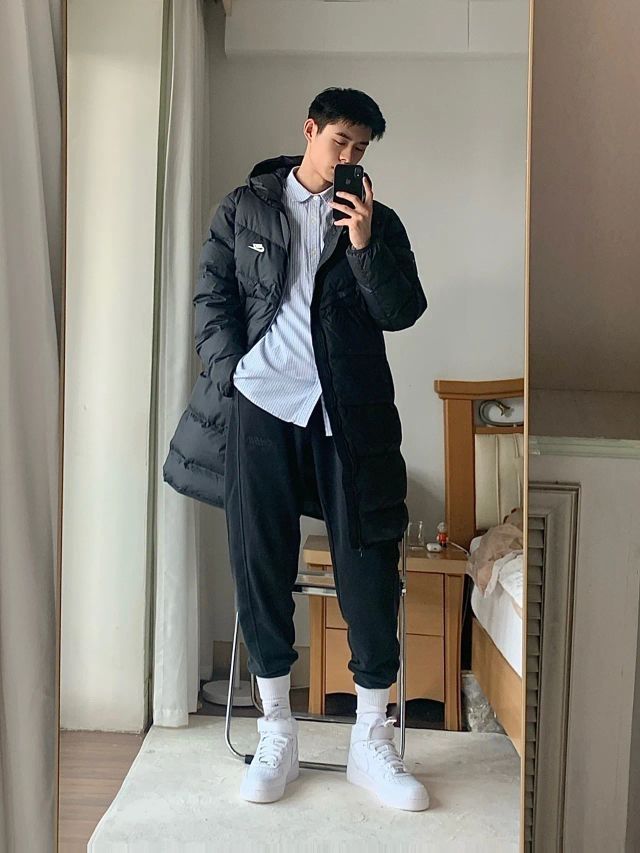 男生冬季穿搭单品分享! 人手必备的基础黑色长款羽绒服一件➕白色或浅色内搭➕小白鞋➕白袜子! 很多男生的标配了! 出门这么穿怎么都好看! 很有男友范! 空军一号真的太耐看了! 我身边朋友几乎人手一双都看不腻! 中帮小白鞋秋冬不能少吧! 不说了不说了! 🐛🐛🐛 鞋子:Nike Air Force 1 Mid(CW2289) 衣服:Nike(DD6789) #男生穿搭 #一秒入冬穿什么 #百搭单品...