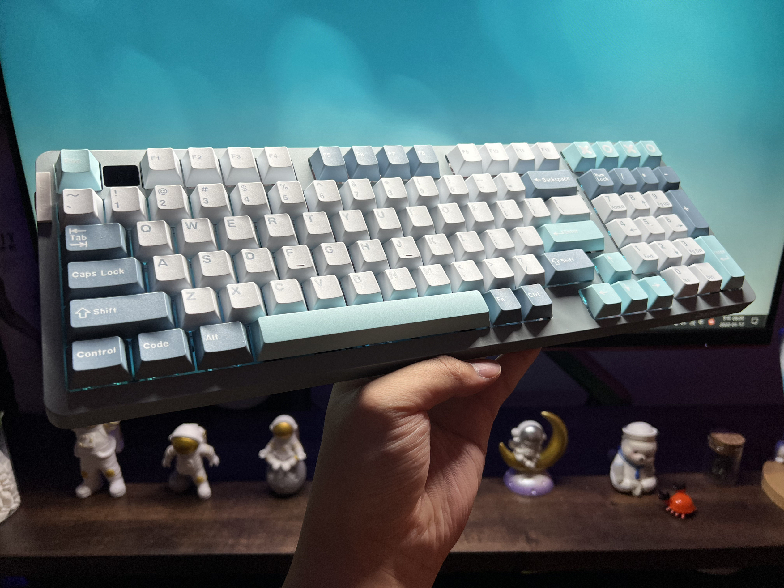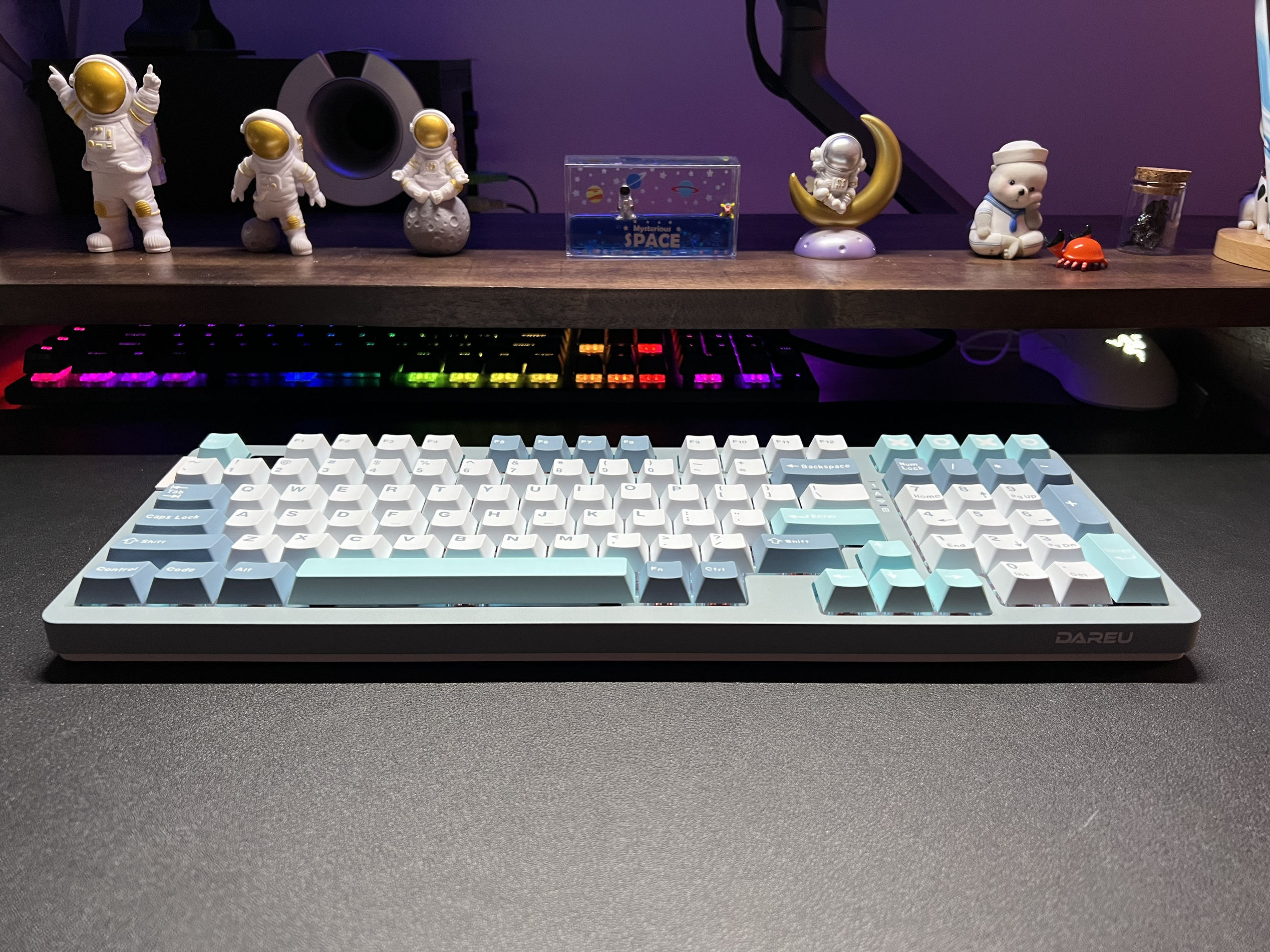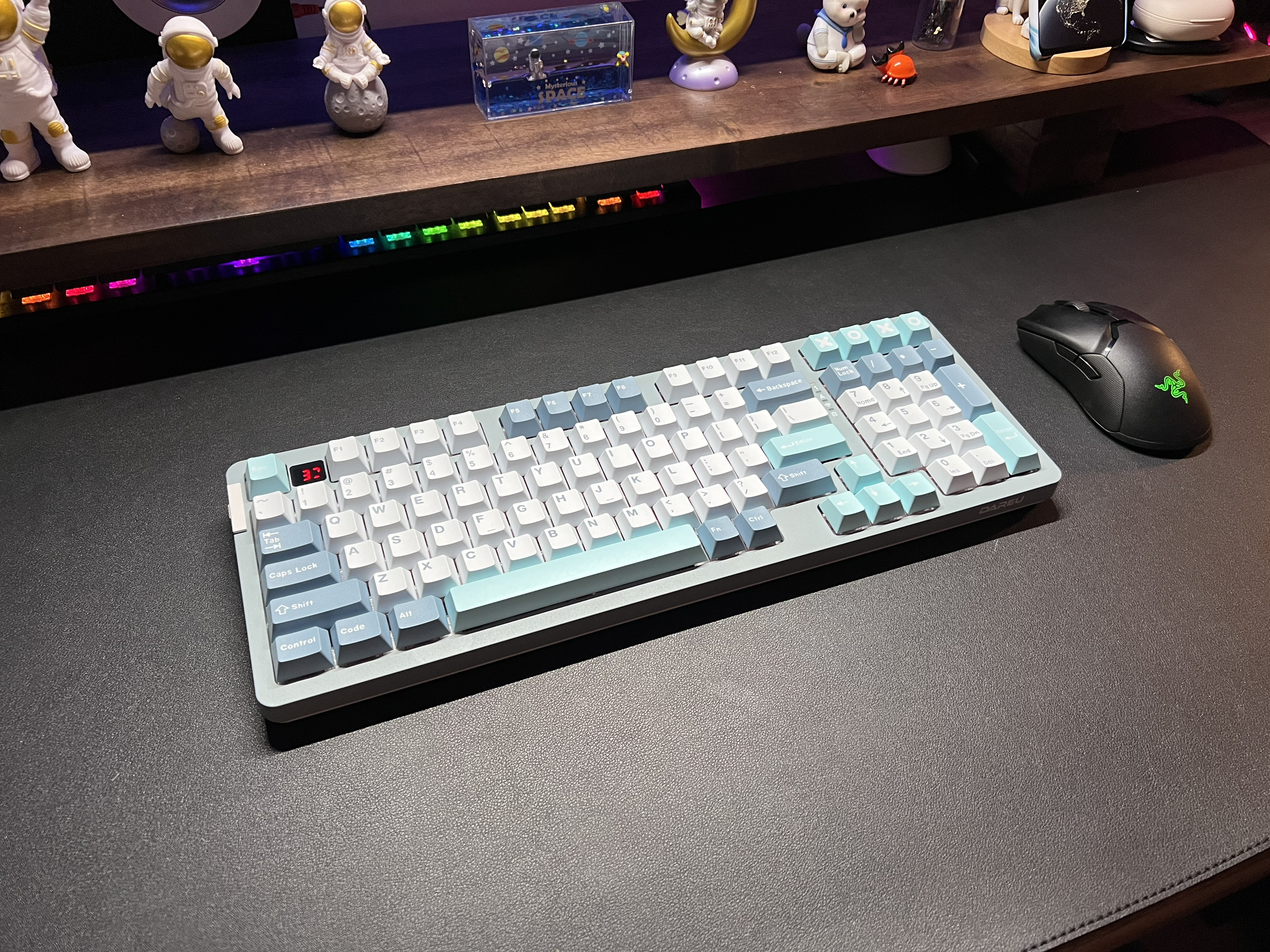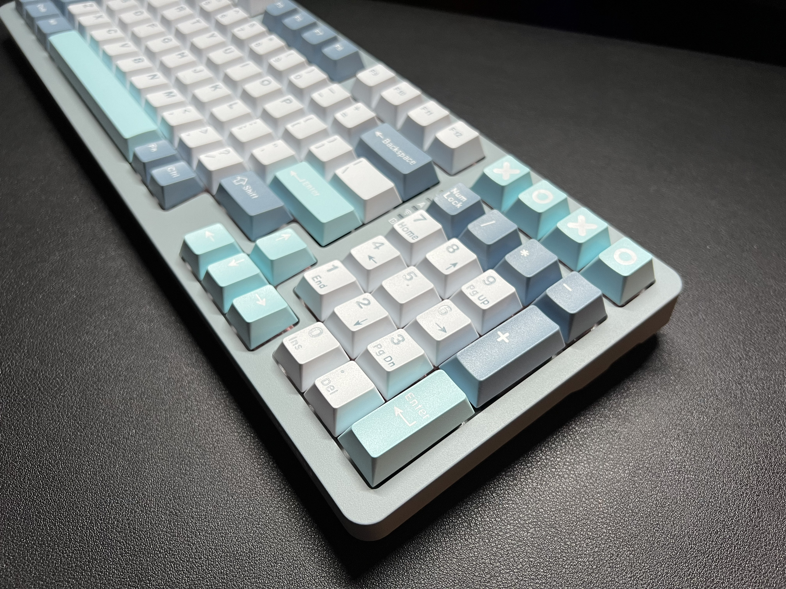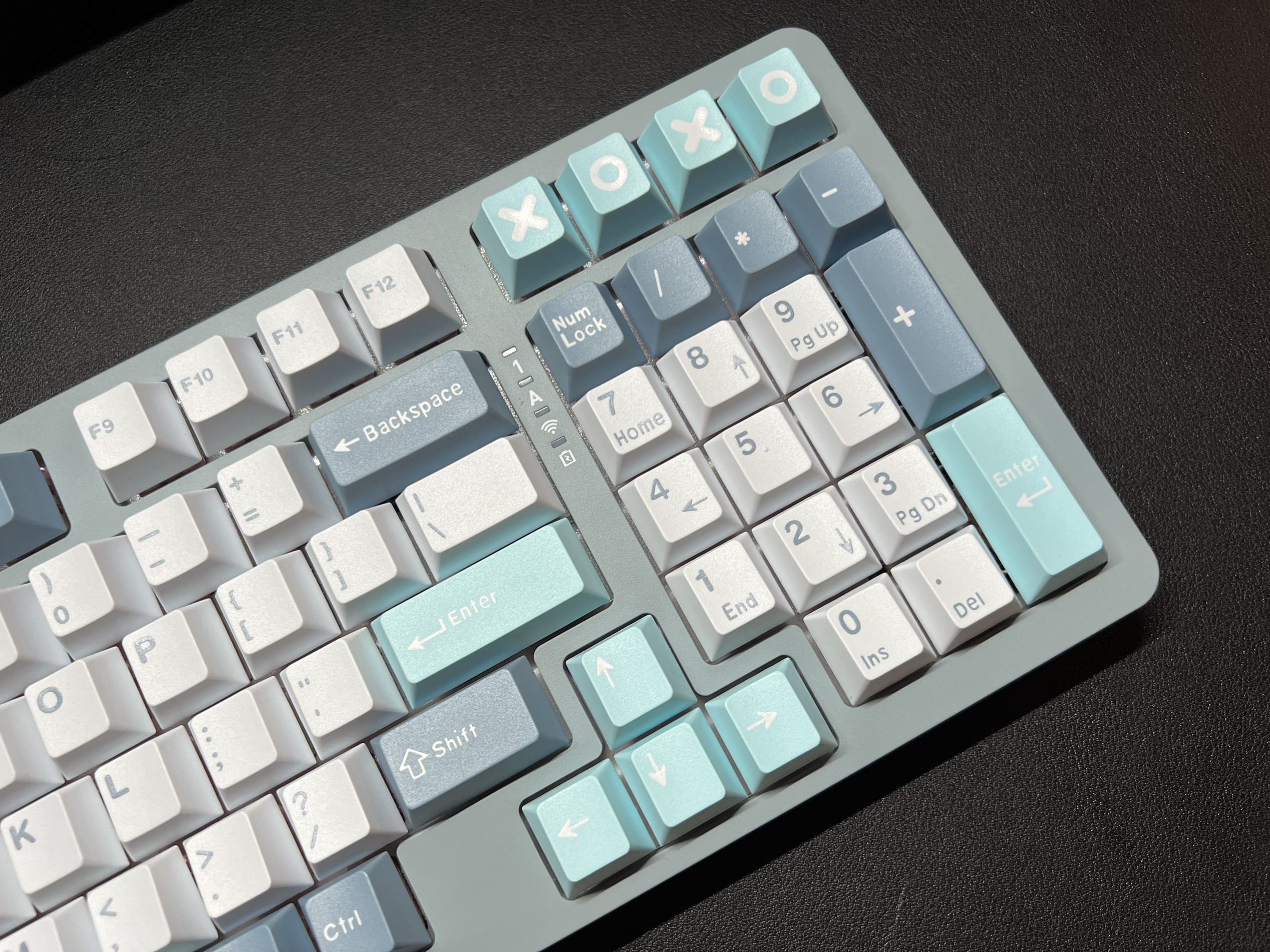 达尔优A98工业灰到手有一段时间,开箱与评测一直看的做。因为它的手感确实好,想多体验一阵。但键盘颜值确实很一般,这个灰壳子还蛮难配键帽。找了好久键帽,都感觉不合适! 硝子这套真的拯救了A98的颜值,整体颜值提升了一个层次!要是纯白色的壳子或许能更好看!