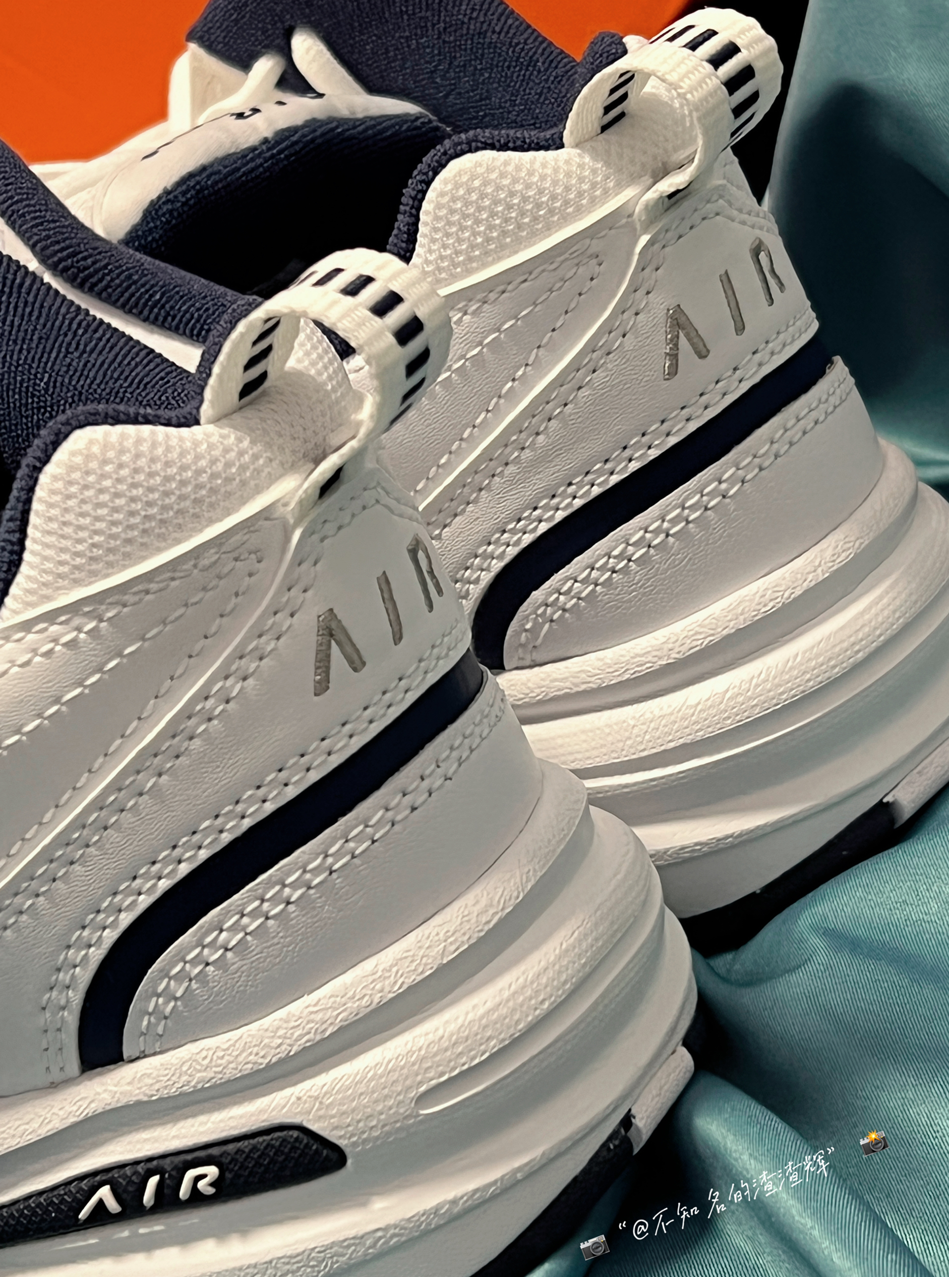 💫:Nike Air Monarch 4 WhiteNavy 缓震透气复古运动老爹鞋 男女同款 蓝白 💫:这双鞋子整体以白色为主,蓝色点缀鞋身,Swoosh采用银蓝色,非常耐看的配色,鞋舌有着蓝色“Air Monarch”刺绣,后跟有着银色“Air”刺绣,鞋面整体采用优质皮革材质,质感十足,缺点就是褶皱,橡胶大底缓震耐磨都很不错 💫:上脚很好看的一款鞋子,增高效果也很好,很适合秋冬季节穿 💫...