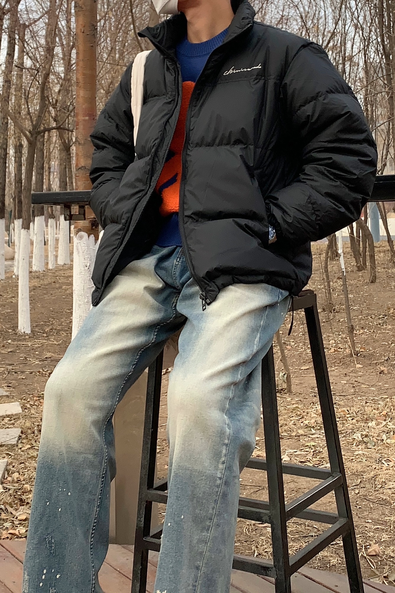 🌟冬季没有一件基础款羽绒服怎么行!Chinism基础款黑色小刺绣羽绒服能够满足你!面料摸起来特别舒服!厚度适中,在保暖的前提下不会显得臃肿! 🧥Chinism黑色刺绣羽绒服 👖水洗直筒牛仔裤 👟闪电倒钩